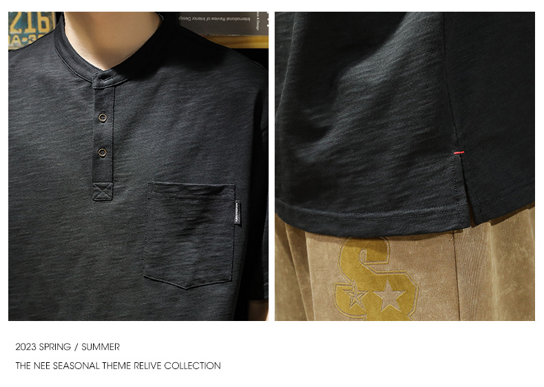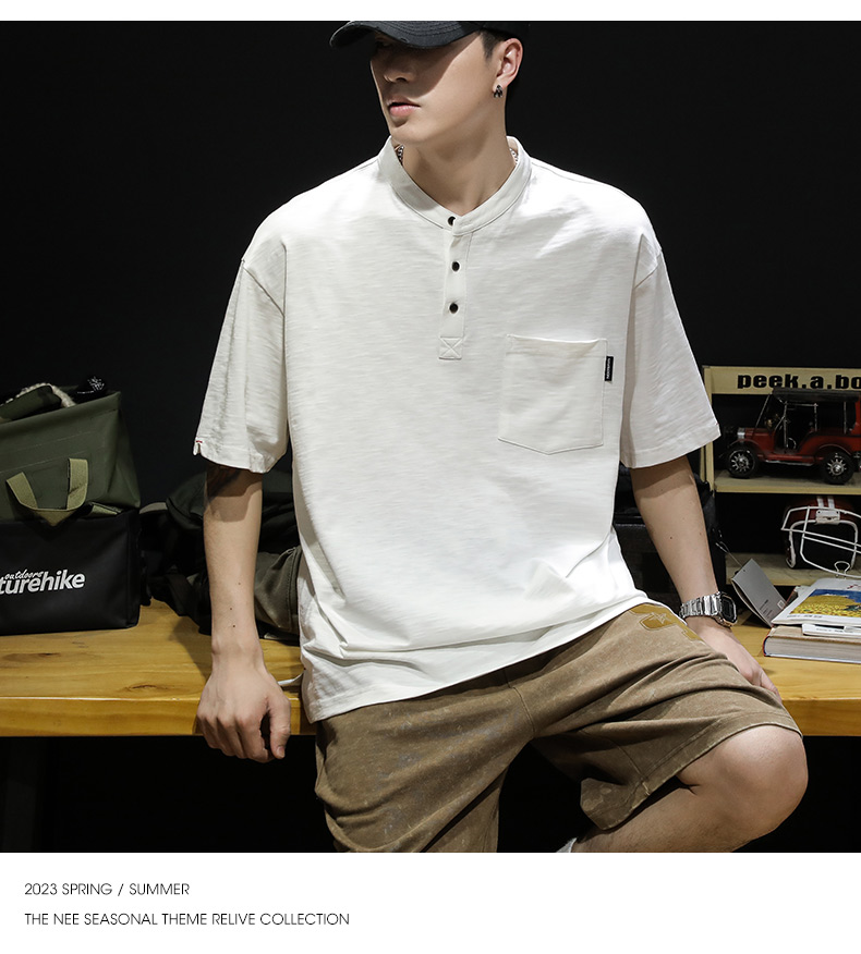 아메리칸 스타일 클래식 레트로 반팔 폴로 셔츠 남자 여름 슬럽 코튼 루즈 헨리 칼라 아미 카키 툴링 티셔츠스토어 가기
