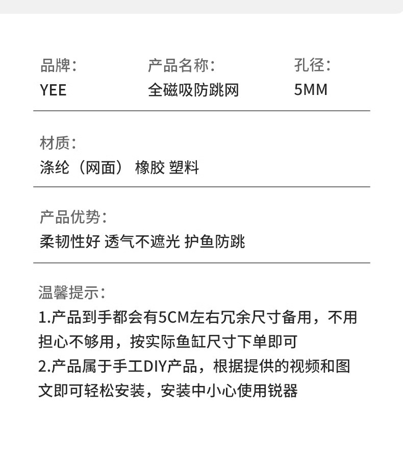 Yee 물고기 탱크 안티 점프 그물 자기 커버 그물 천둥 용 물고기 안티 점프 탱크 거북이 안티 탈출 스트림 탱크 안티 점프 그물 스텔스스토어 가기