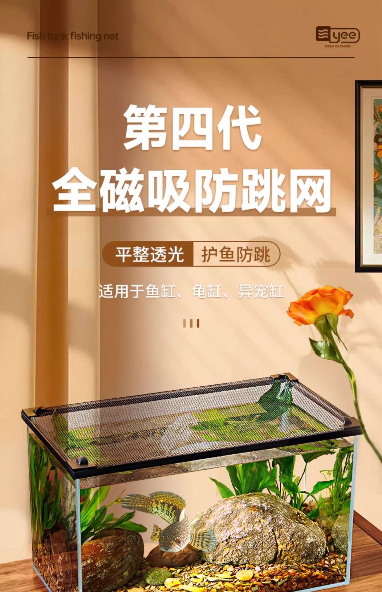 Yee 물고기 탱크 안티 점프 그물 자기 커버 그물 천둥 용 물고기 안티 점프 탱크 거북이 안티 탈출 스트림 탱크 안티 점프 그물 스텔스