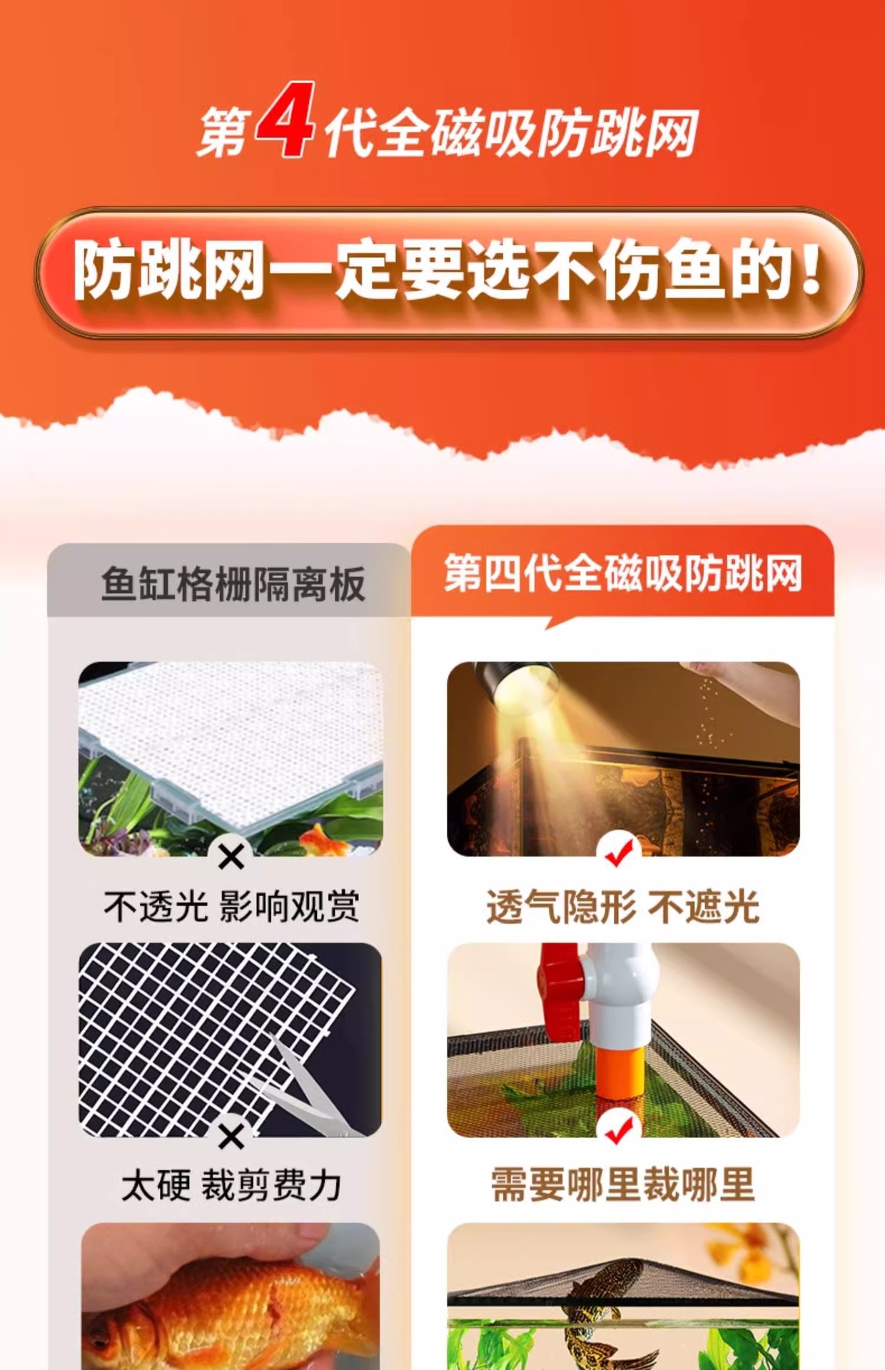 • 물고기 탱크 자기 안티 점프 그물 50*30cm