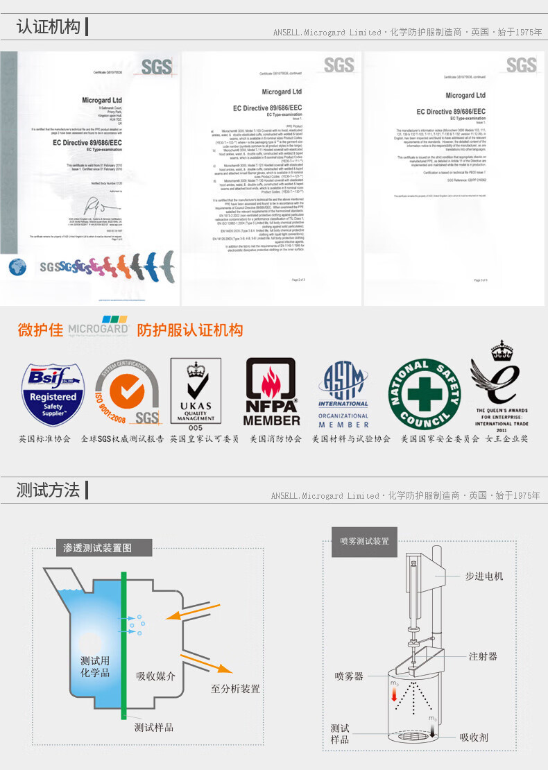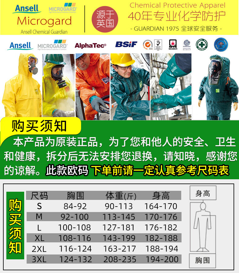 Ansier 마이크로 보호 3000 캡 산 및 알칼리 내성 화학 보호 의류 화학 실험 항 유기 솔루션