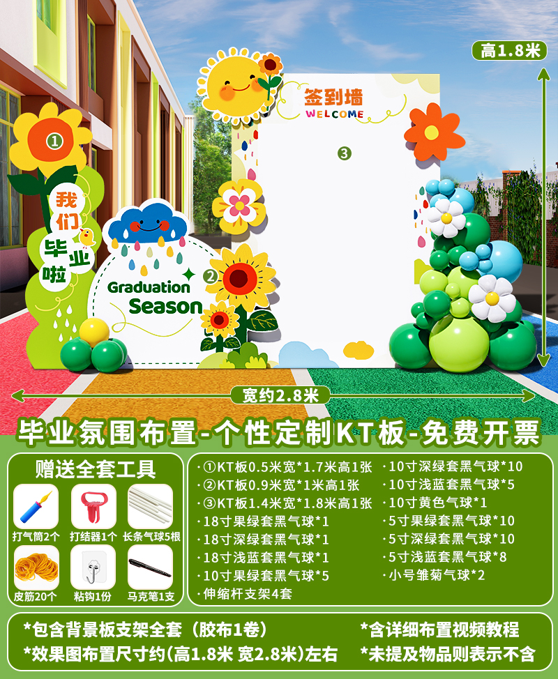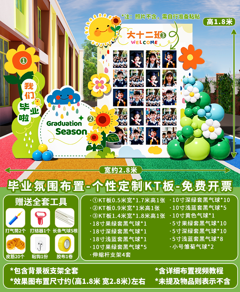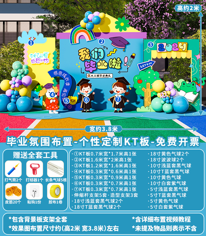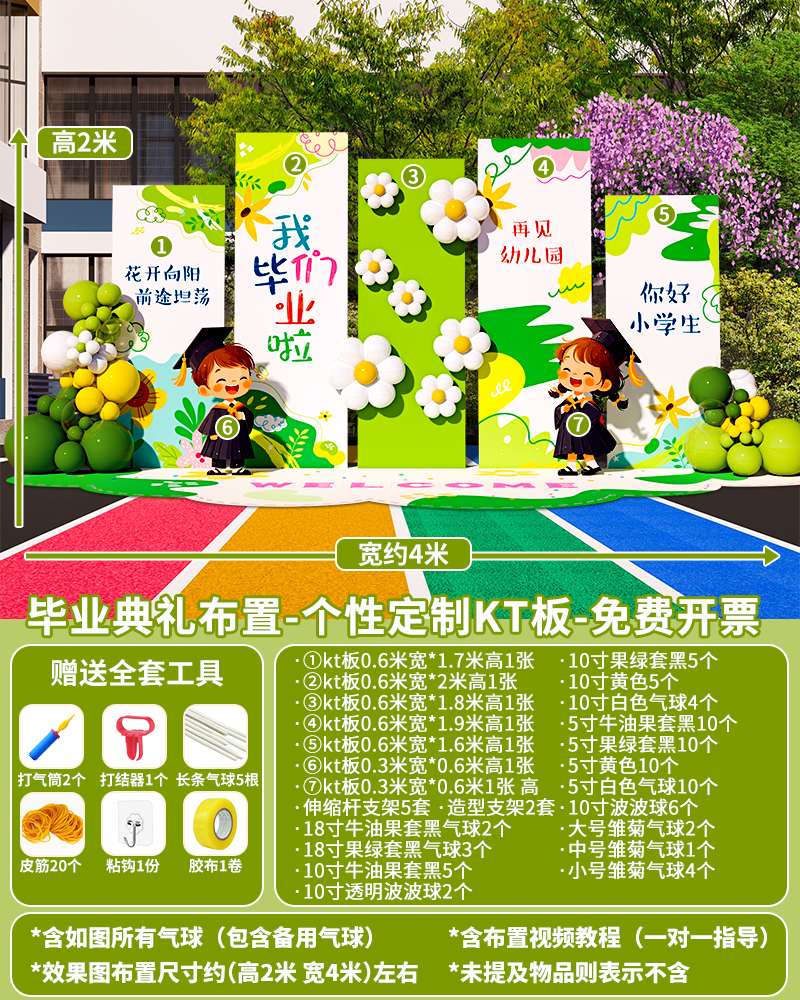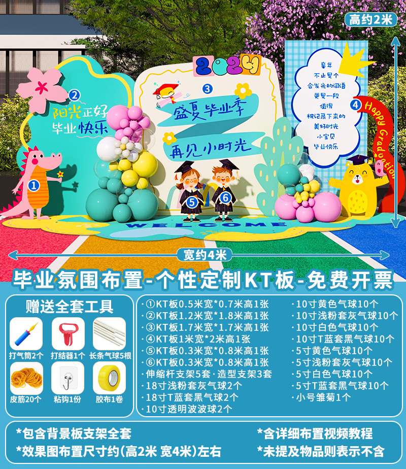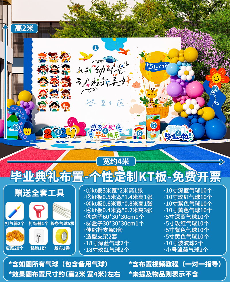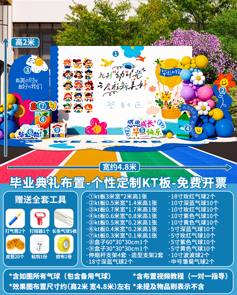 • 행복한 졸업⭐] 2024 새로운 유치원 졸업 J2⭐높이 2m, 폭 5m