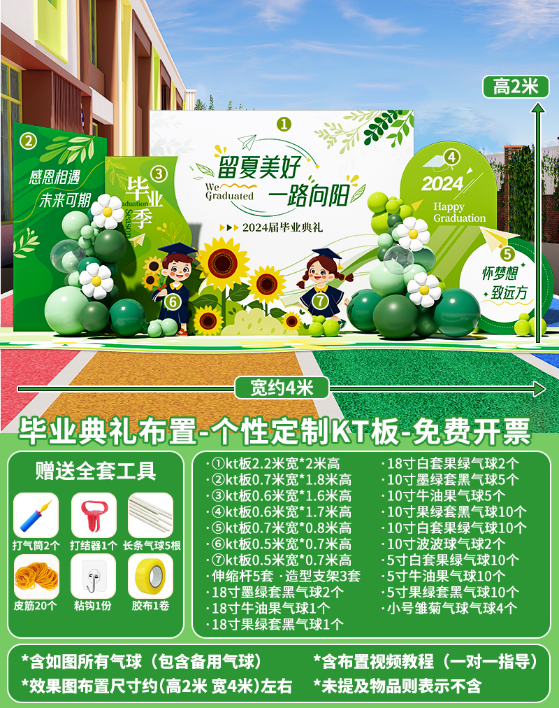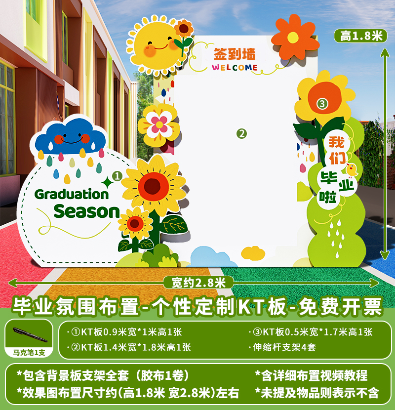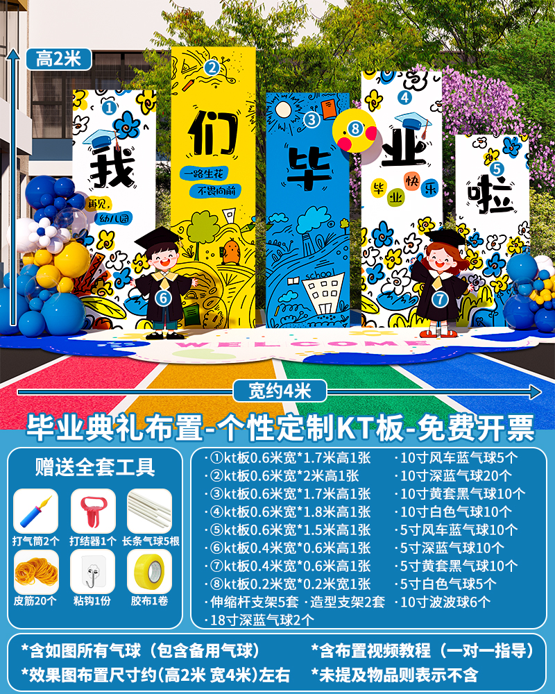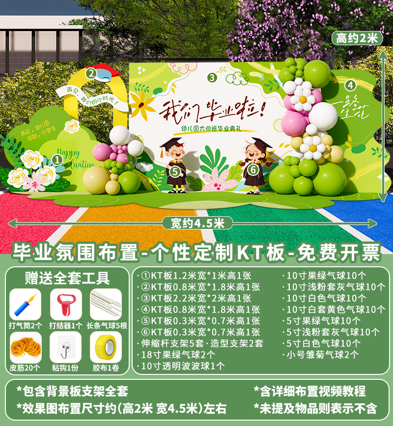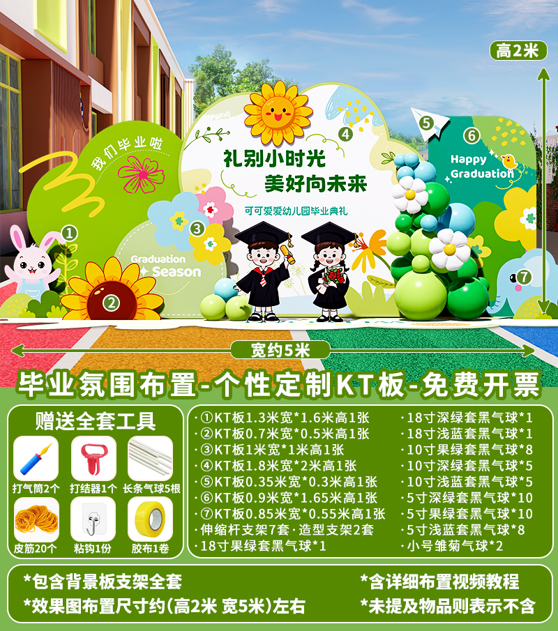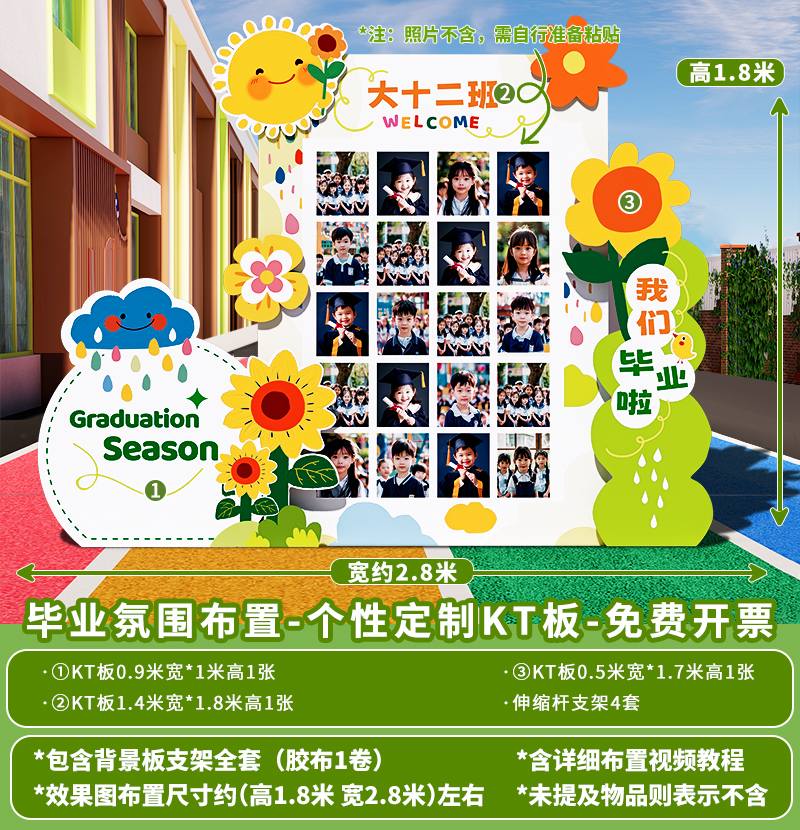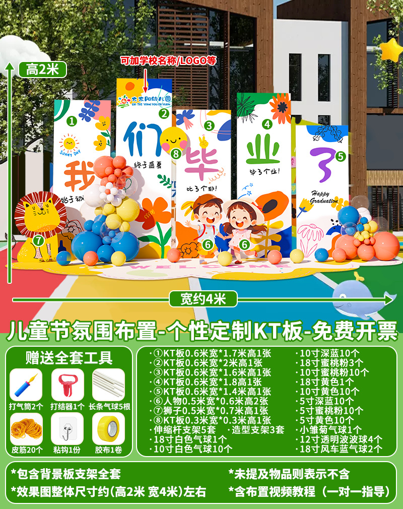 • 행복한 졸업⭐] 2024 새로운 유치원 졸업 J2⭐높이 2m, 폭 5m