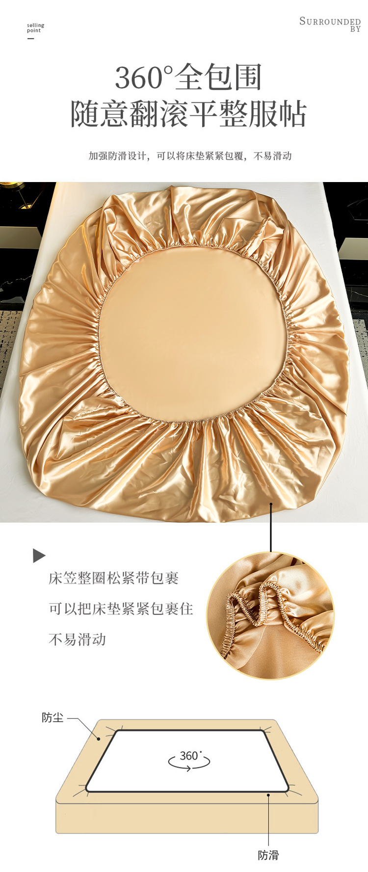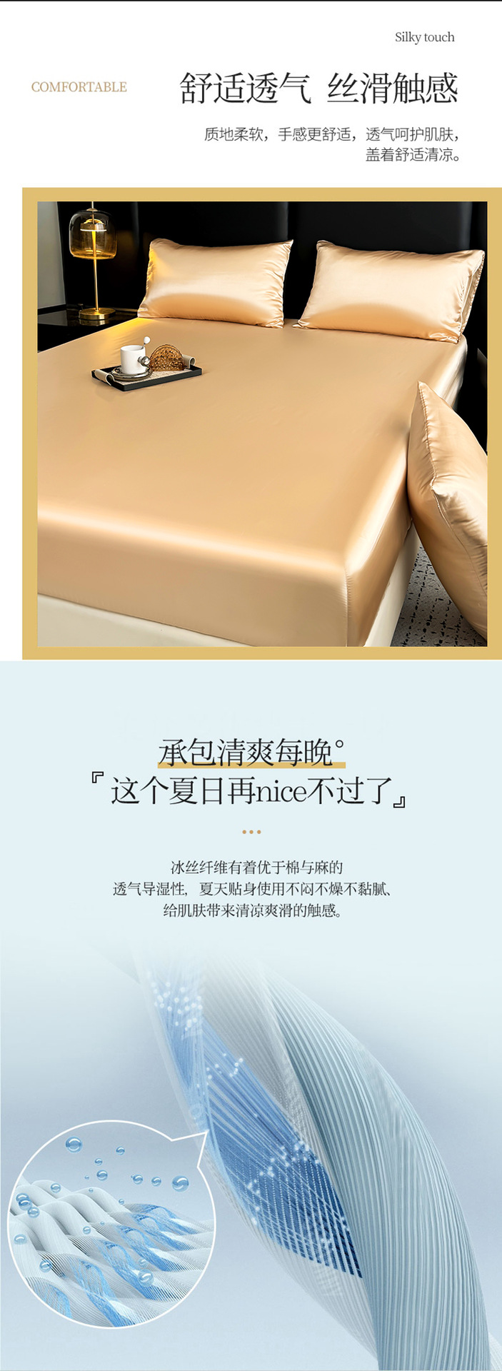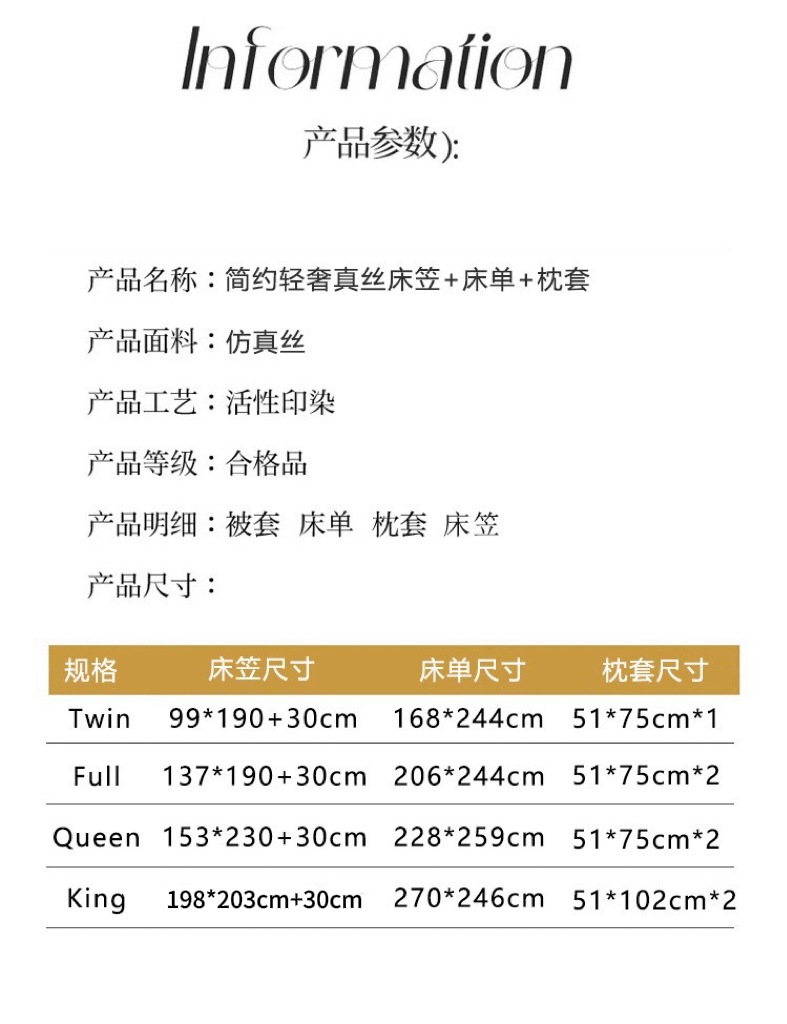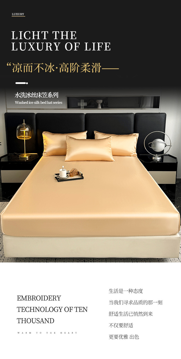 대외 무역용 크로스보더 새틴 침대 시트, 실크 느낌 침대 시트 커버 4종 세트, 세탁 가능한 실크 침대 시트, 라이트 럭셔리 침구스토어 가기