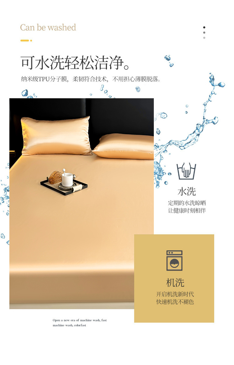 대외 무역용 크로스보더 새틴 침대 시트, 실크 느낌 침대 시트 커버 4종 세트, 세탁 가능한 실크 침대 시트, 라이트 럭셔리 침구