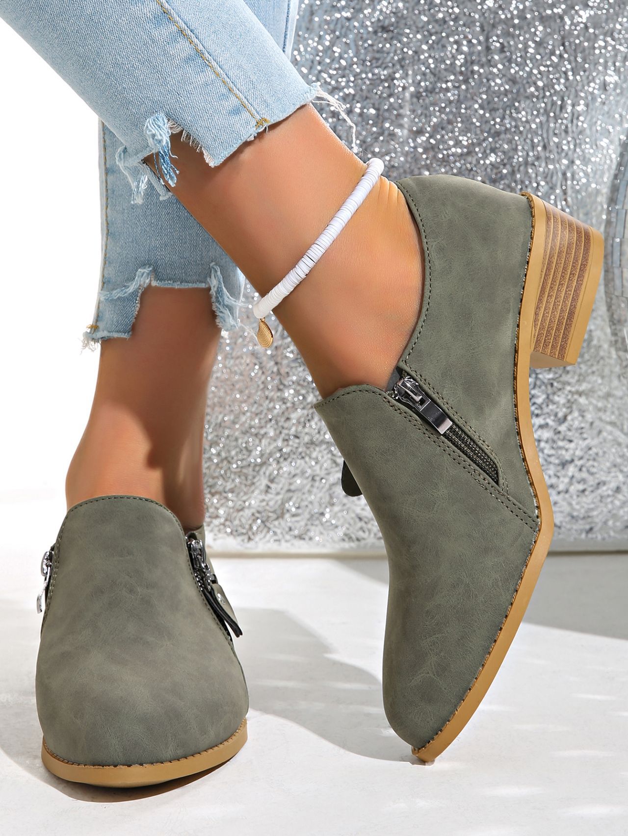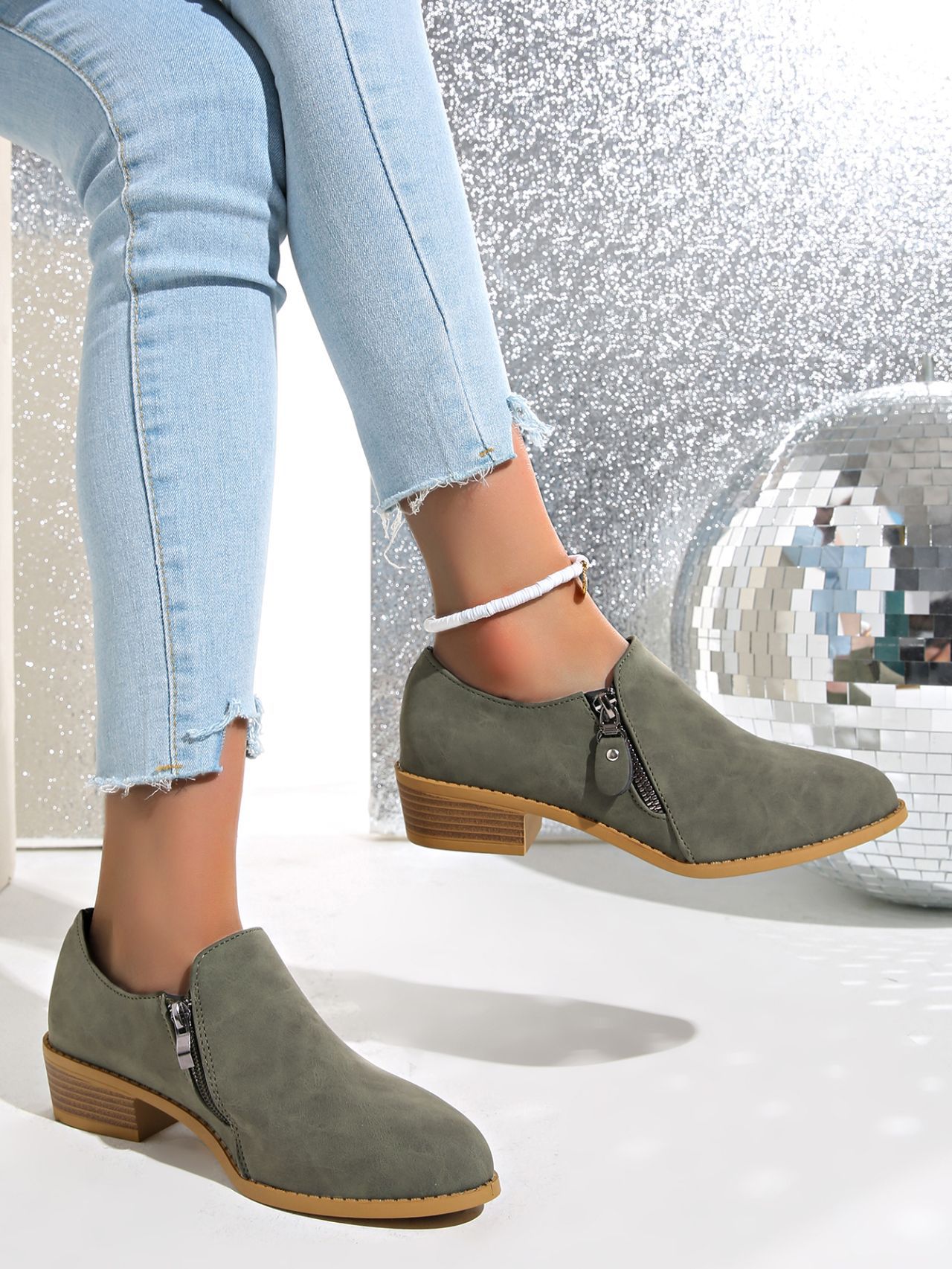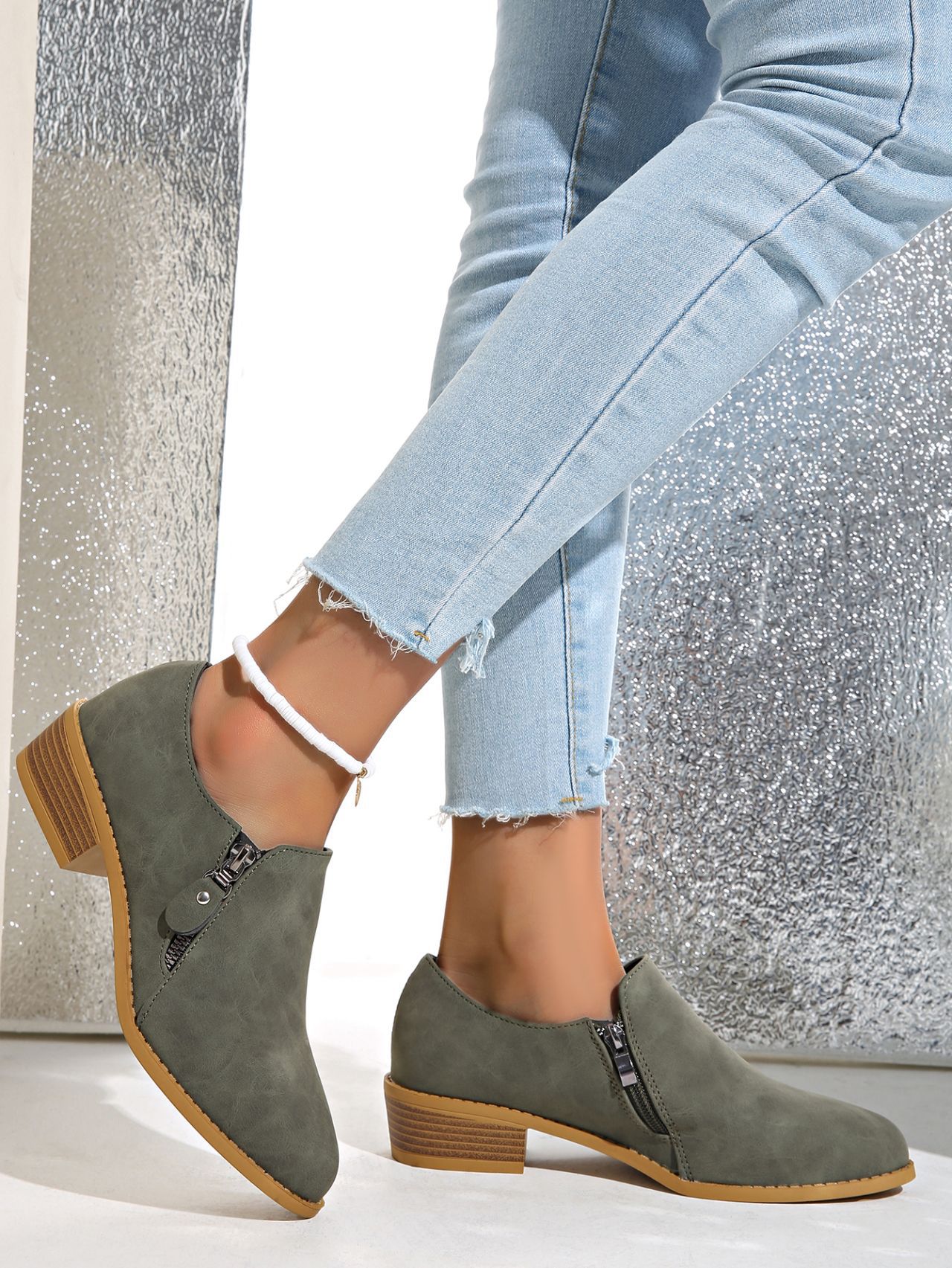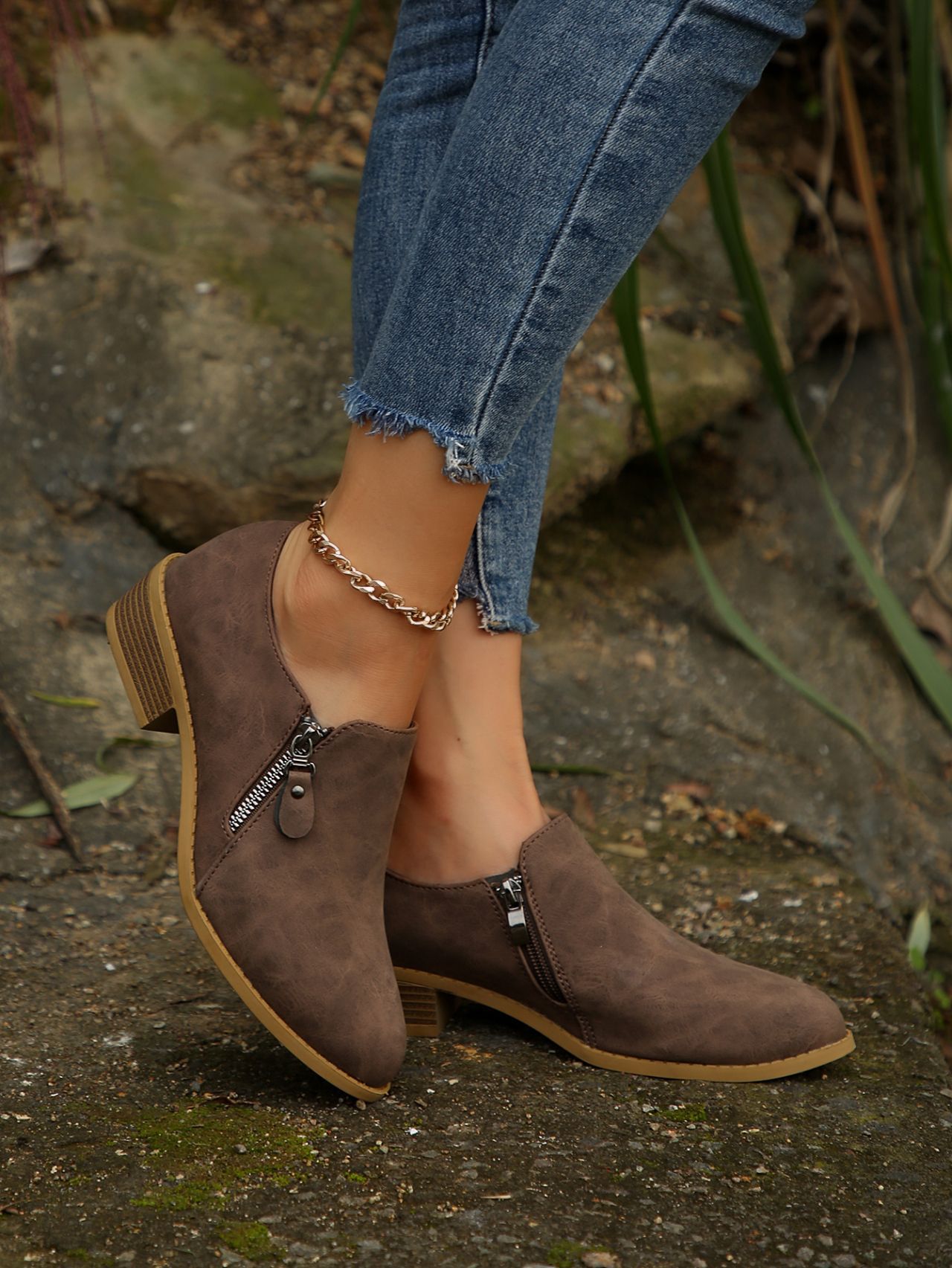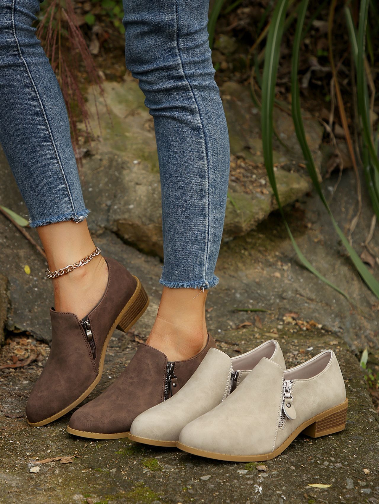 국경 간 대외 무역 플러스 사이즈 두꺼운 뒤꿈치 얇고 벌거 벗은 부츠 여성 영국 스타일의 단색 뾰족한 측면 지퍼 낮은 뒤꿈치 신발 도매
