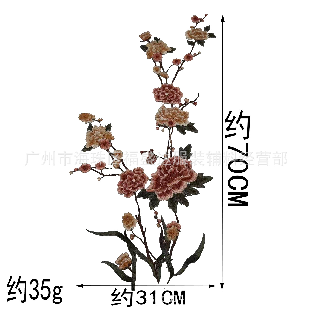 대형 모란 꽃 수용성 자수 아플리케 cheongsam 스커트 어린이 의류 액세서리 폴리 에스테르 실크 자수 꽃 도매스토어 가기
