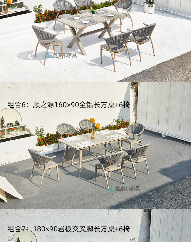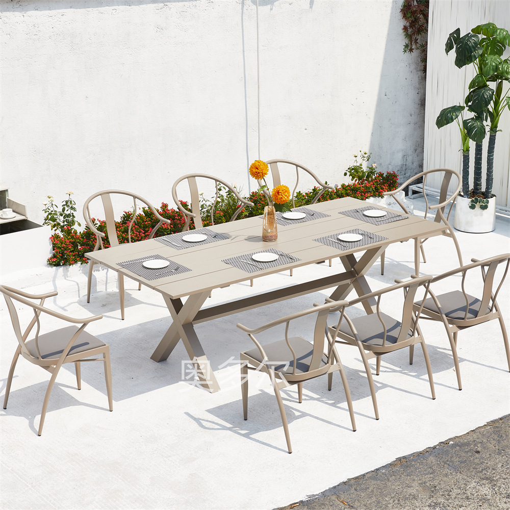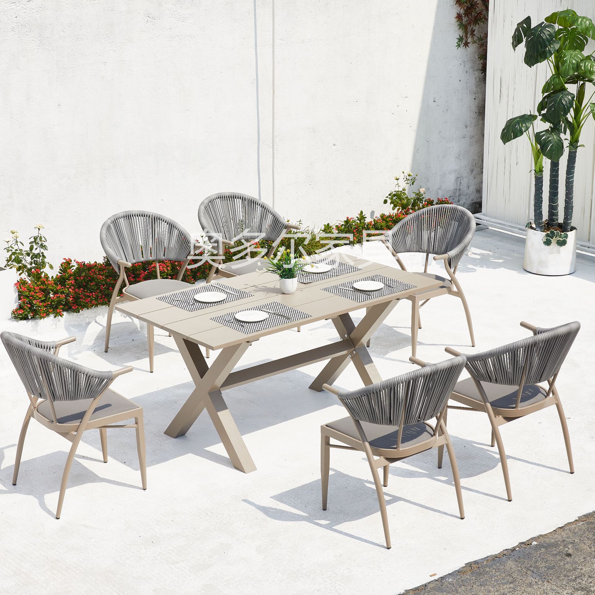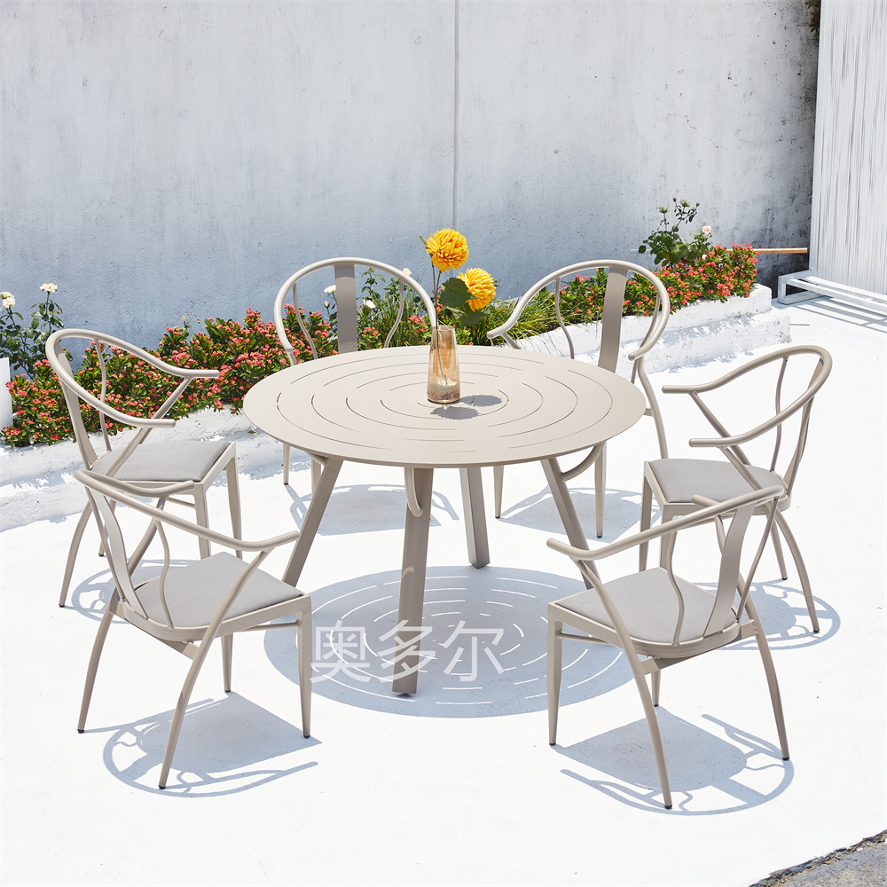 • 6 Yasman 의자 120cm 모든 알루미늄 라운드 테이블