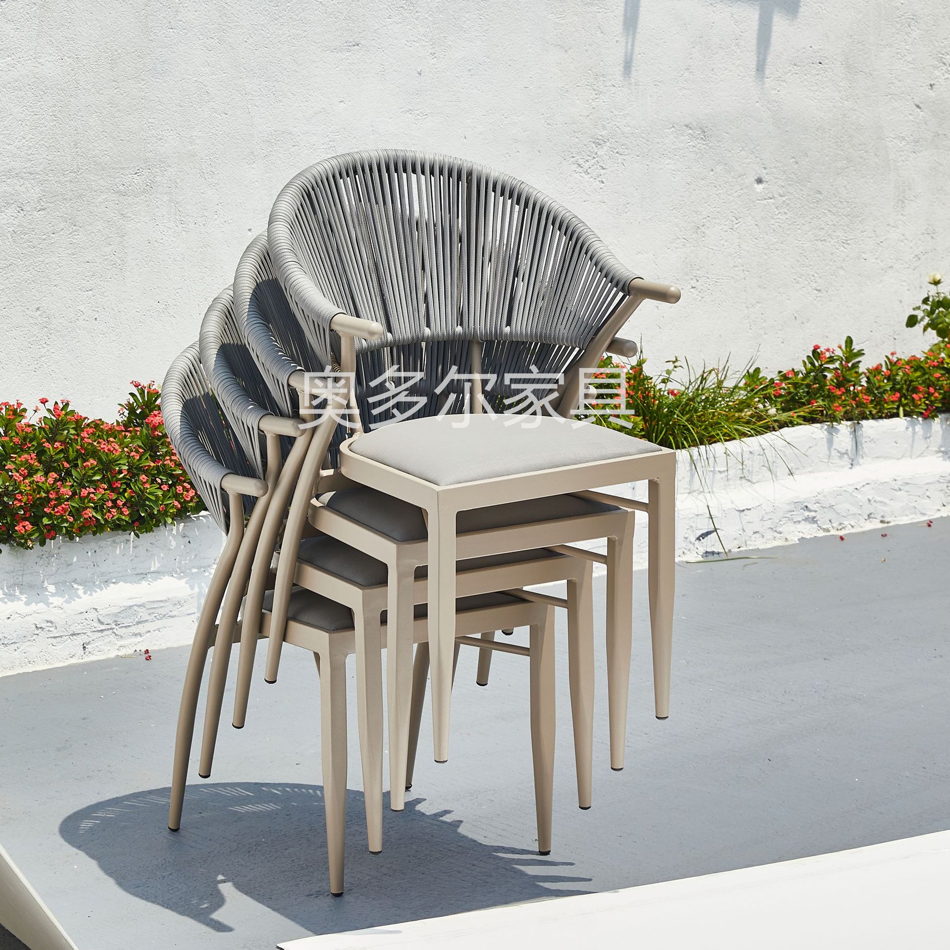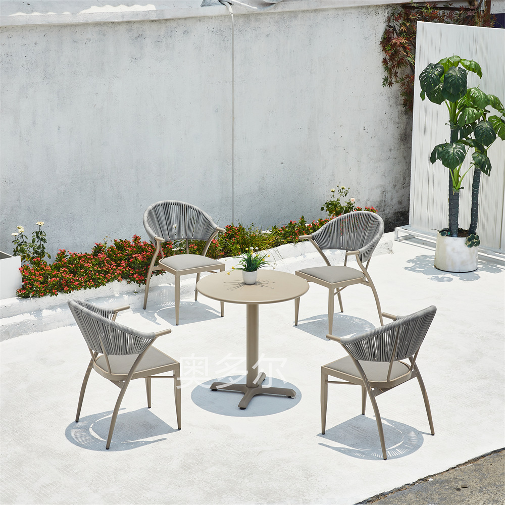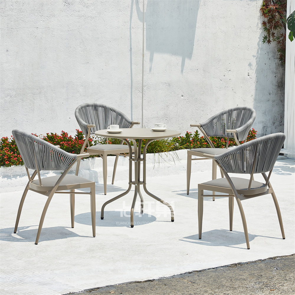 • 4 야스만 등나무 의자 70cm 더블 링 탄소 강철 라운드 테이블