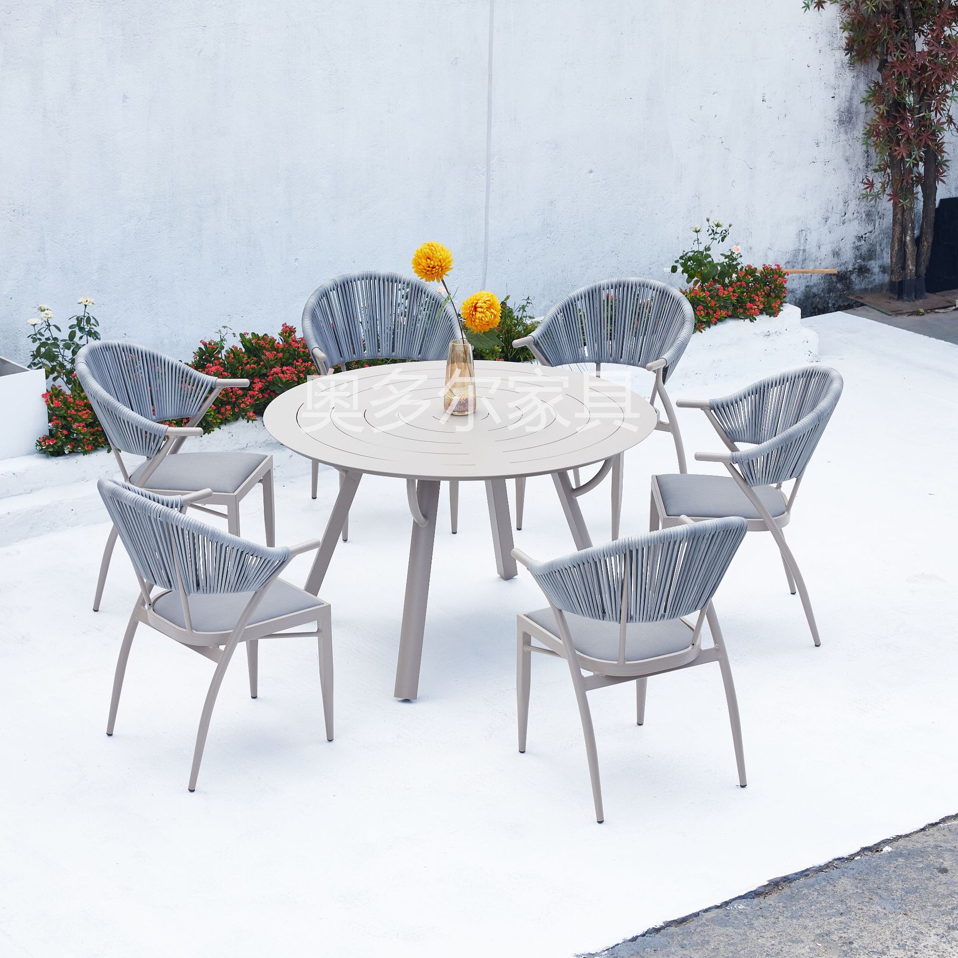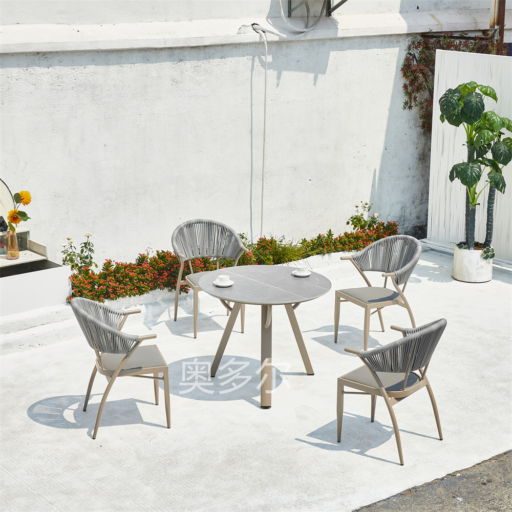 • 6 Yasman 등나무 의자 120cm 모든 알루미늄 라운드 테이블