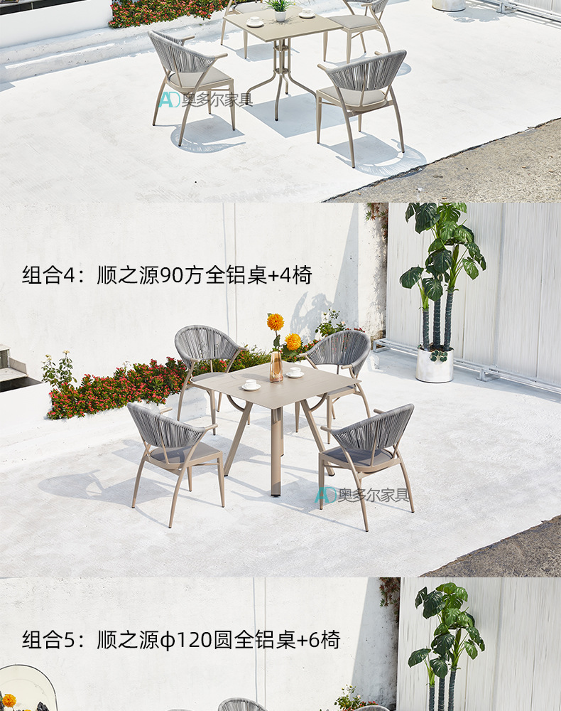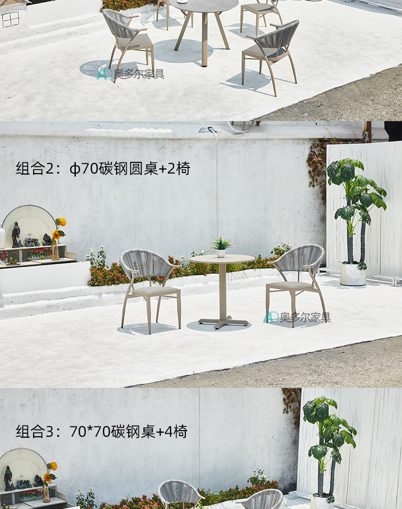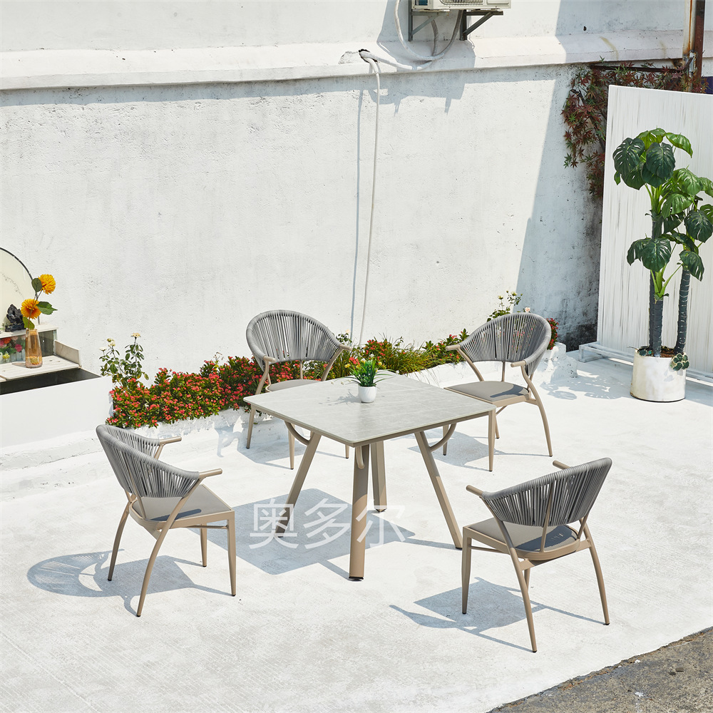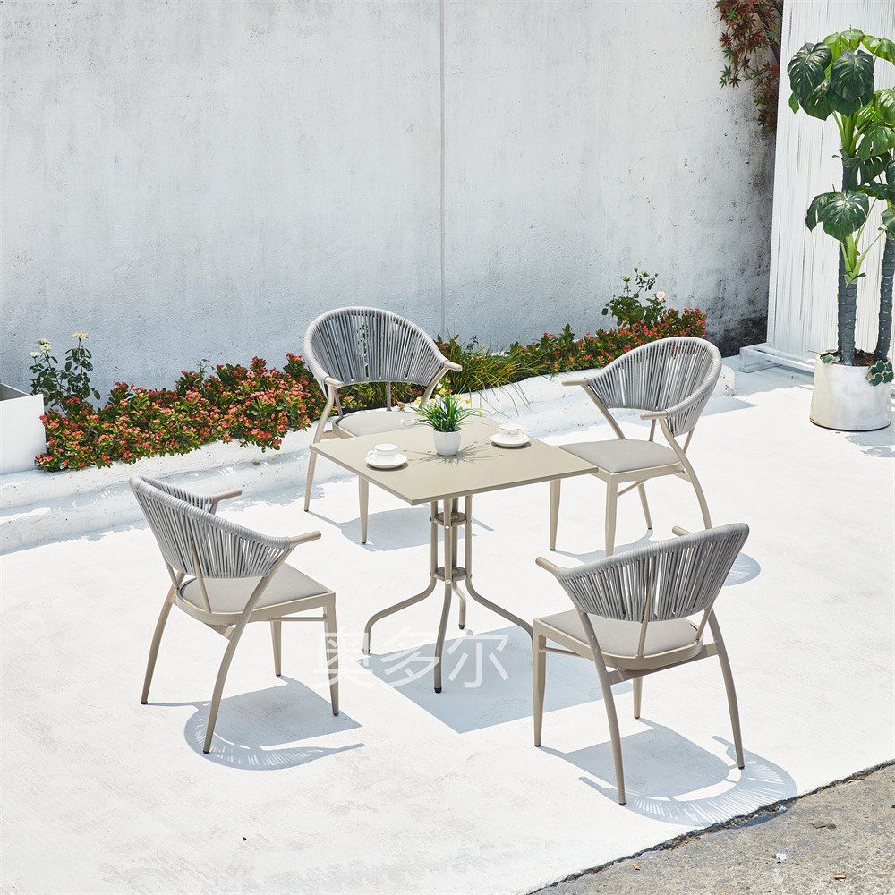 • 4 야스만 등나무 의자 70cm 더블 서클 탄소 강철 사각 테이블