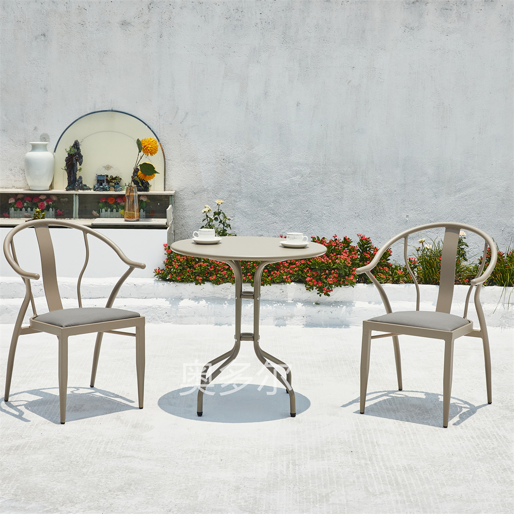 • 2 Yasman 의자 70cm 더블 서클 탄소 강철 라운드 테이블