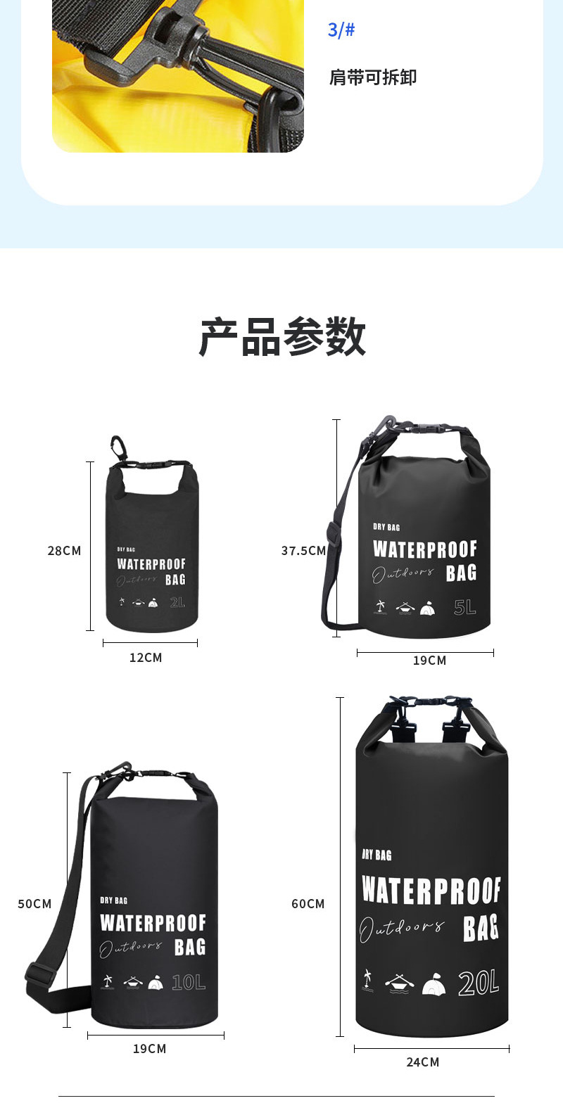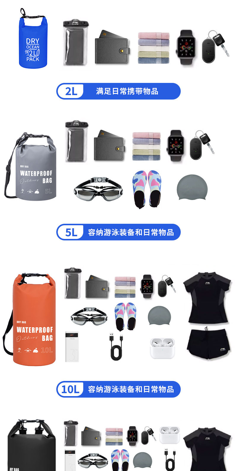 국경 간 야외 스포츠 수영 가방 해변 건조하고 젖은 분리 건조 가방 PVC 방수 배럴 가방 드리프트 추적 용품