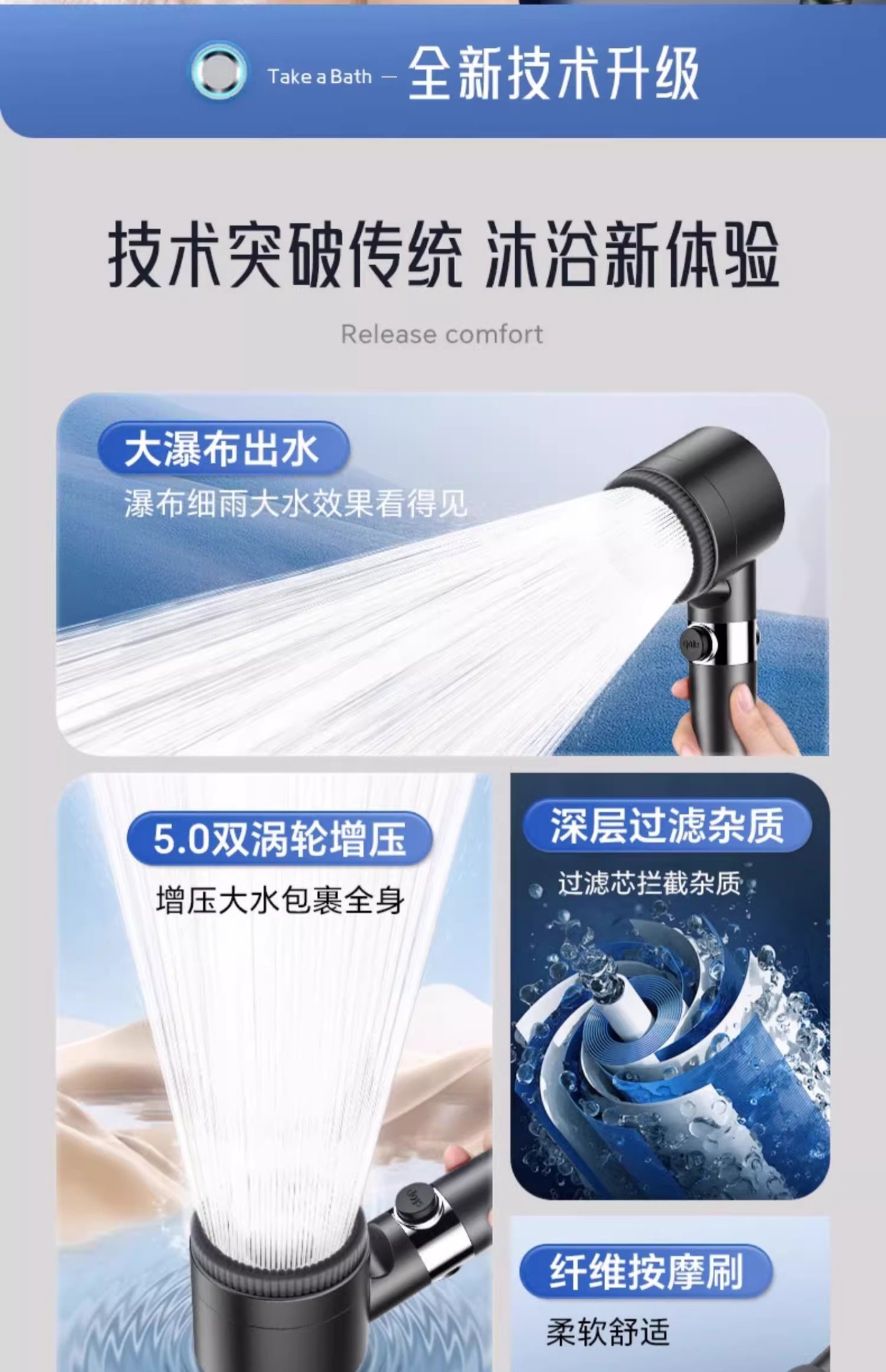 새로운 더블 터보 샤워 헤드 슈퍼 압축 대형 아울렛 욕실 샤워 헤드 비 샤워 헤드 세트스토어 가기