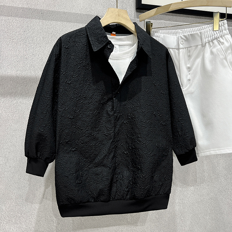 얇은 아이스 실크 주름 반팔 셔츠 남자 2024 년 여름 새 도착 반소매 캐주얼 폴로 칼라 버튼 트렌디