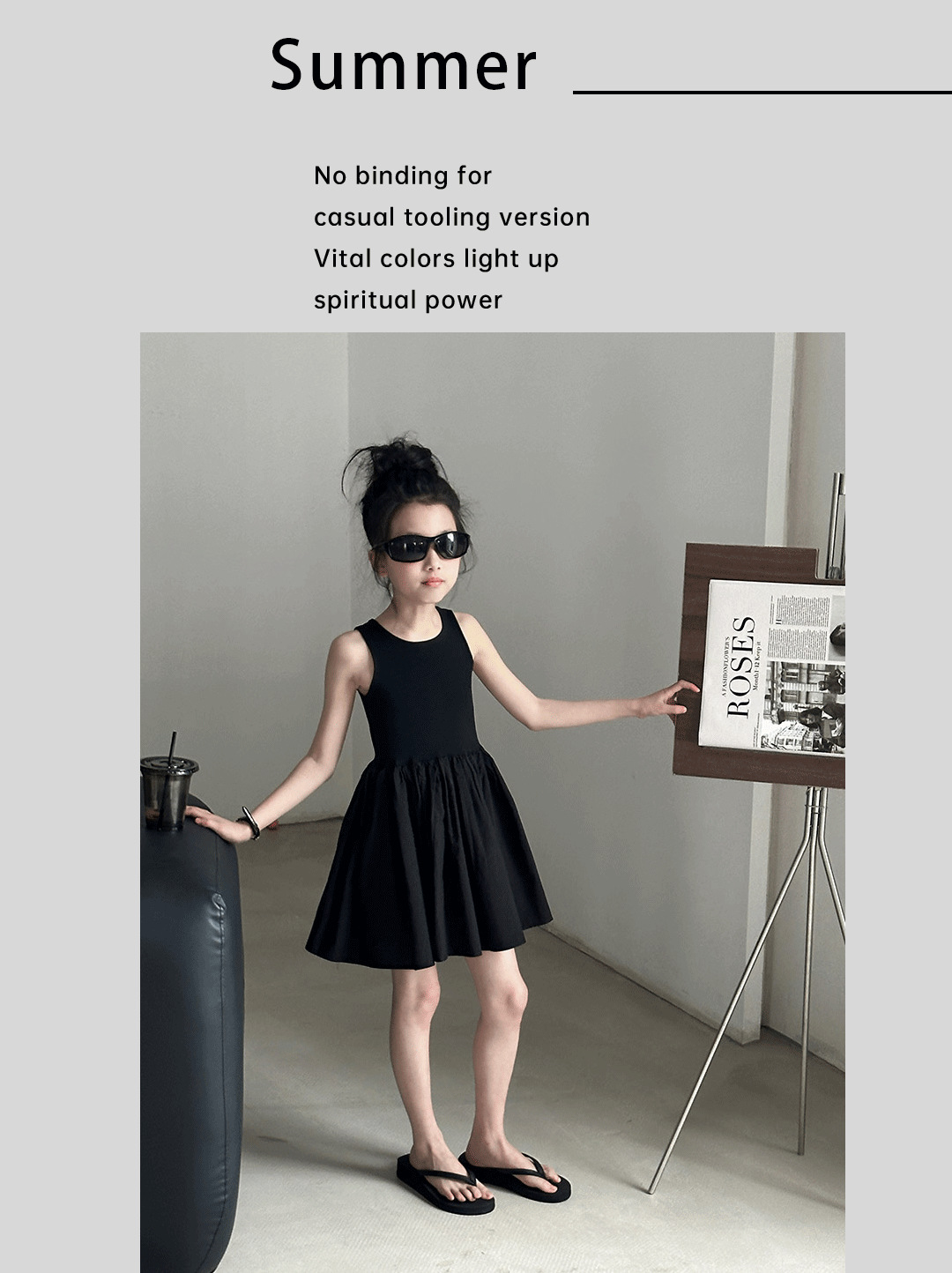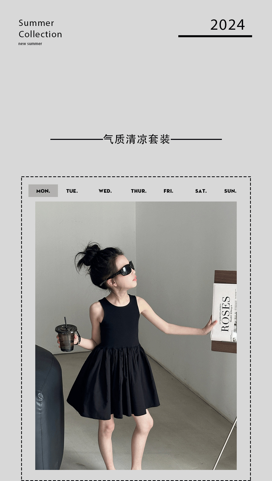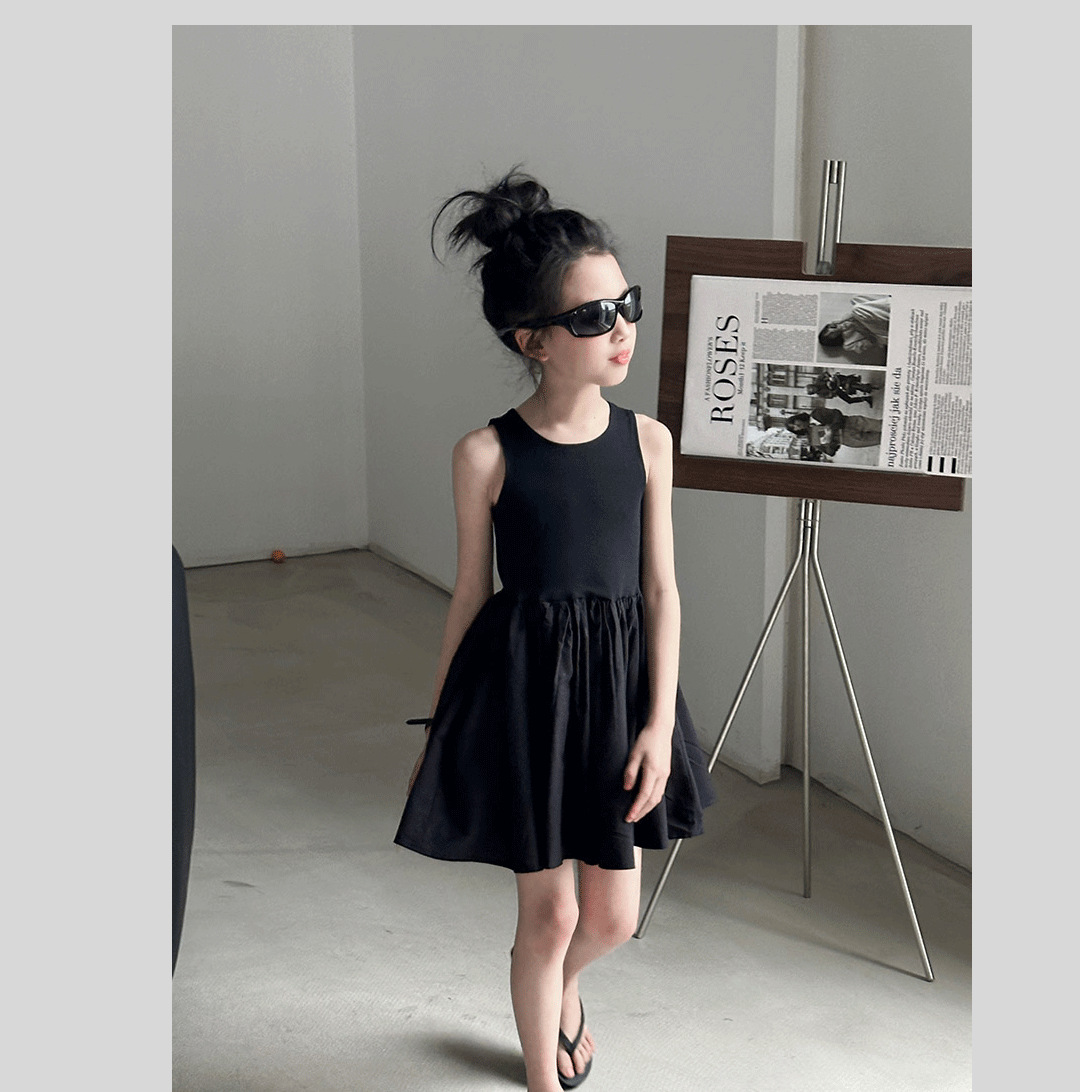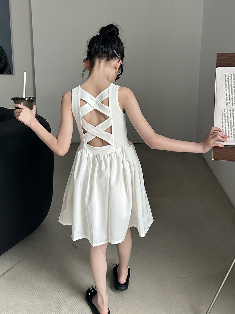 소녀 원피스 여름 2024 새로운 한국 스타일 중대형 키즈 헵번 블랙 스커트 슬립 백 할로우 디자인 트렌디스토어 가기