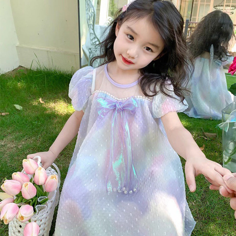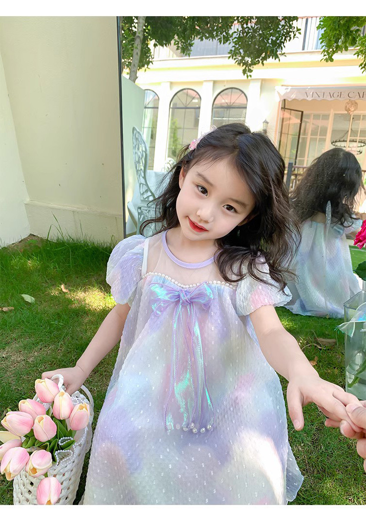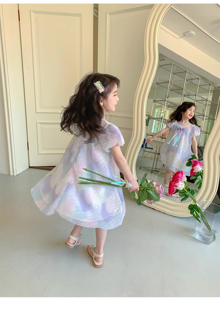 인어 공주 원피스 소녀의 여름 2024 새로운 스타일 서양식 활 어린이 원피스 그물 레드 하이 엔드 원피스스토어 가기