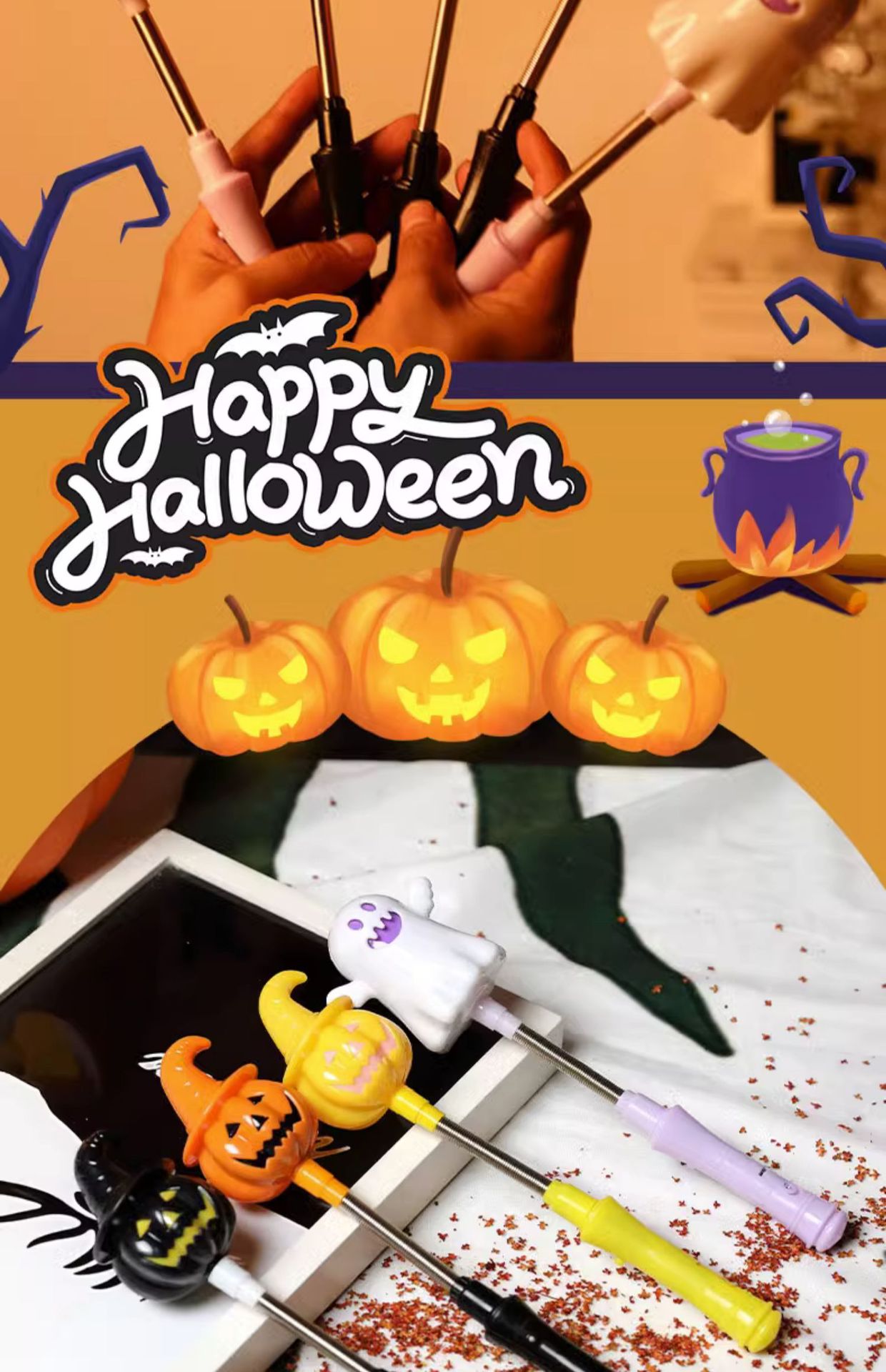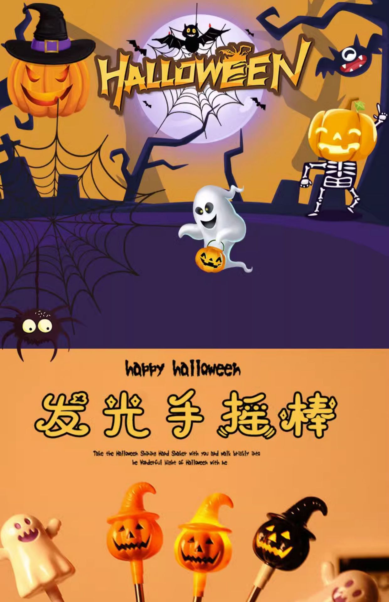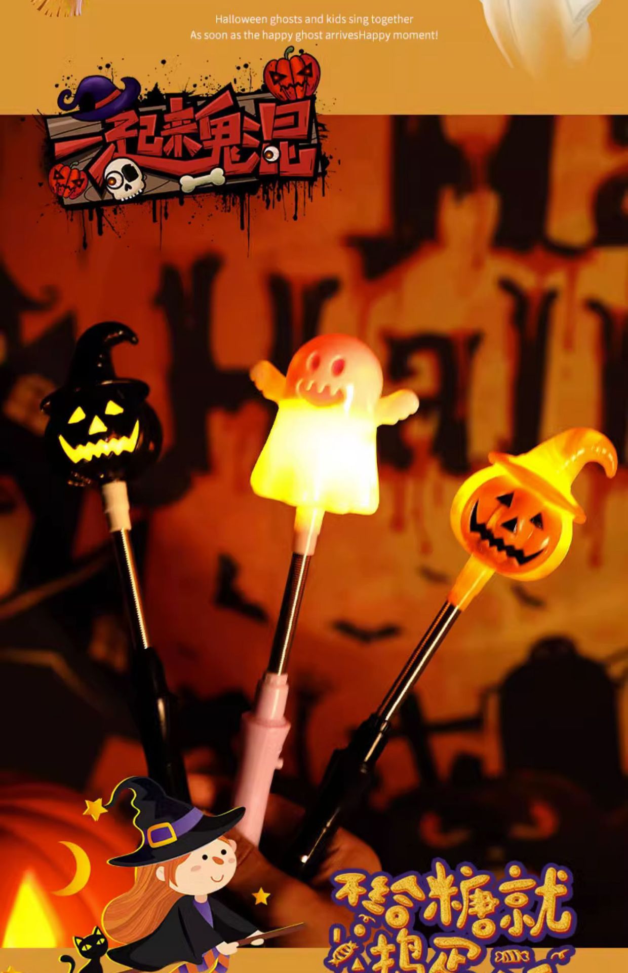 할로윈 장식 호박 랜턴 빛나는 어린이 손 스틱 아기 동축 어린이 모유 수유 야간 조명 어린이 장난감스토어 가기