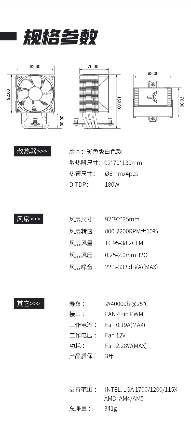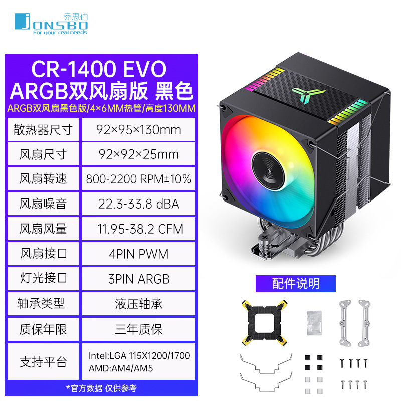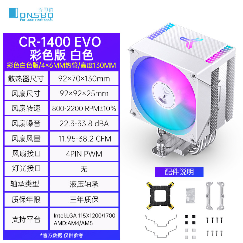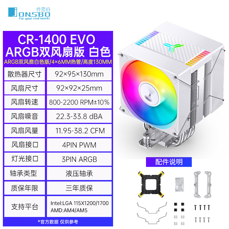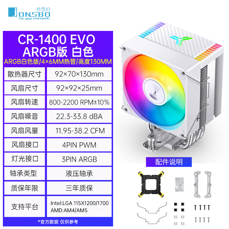 Qiao Sibo CR1400 EVO 컴퓨터 CPU 쿨러 ARGB 팬 흰색 데스크탑 CR1000 타워 공냉식