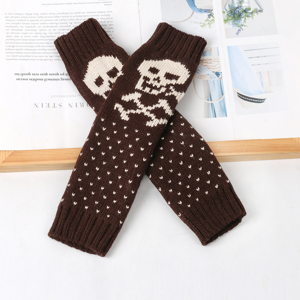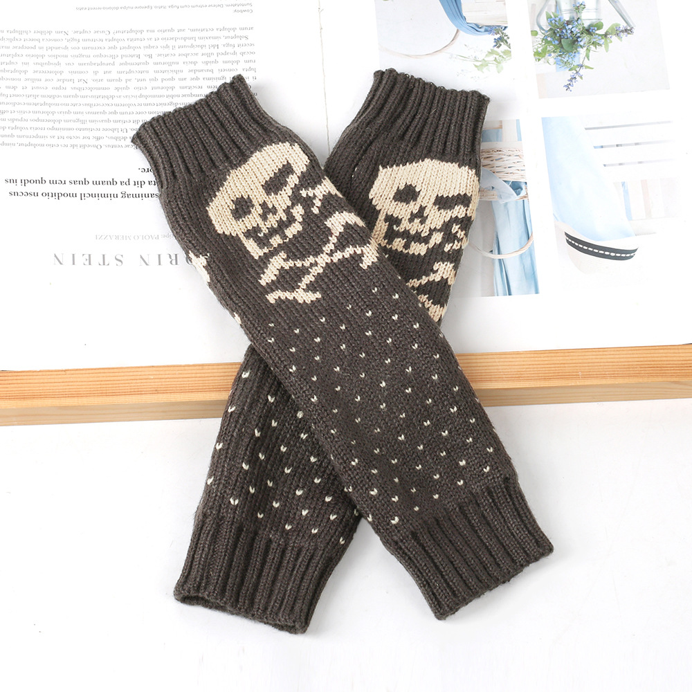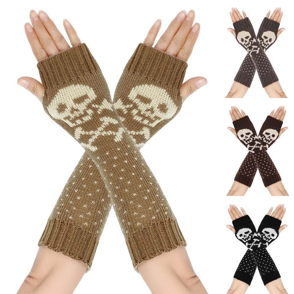 가을과 겨울 할로윈 울 장갑 니트 아크릴 따뜻한 소매 중간 길이 개인화 된 두개골 머리 excrochet 팔 소매스토어 가기