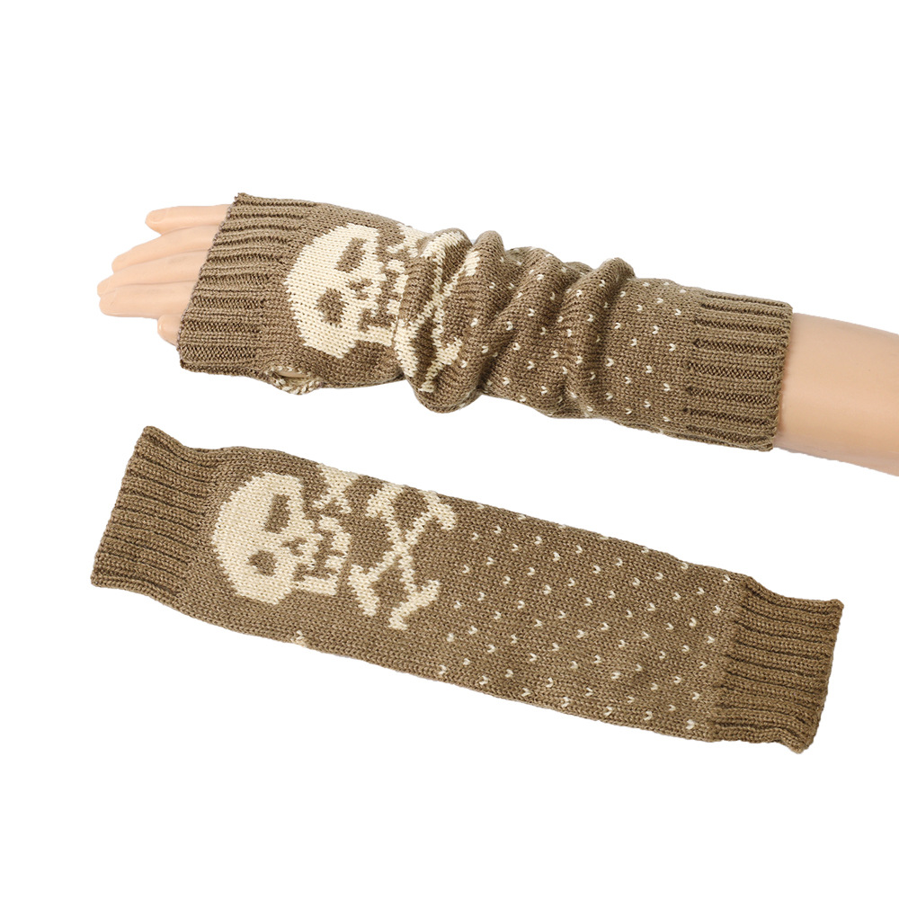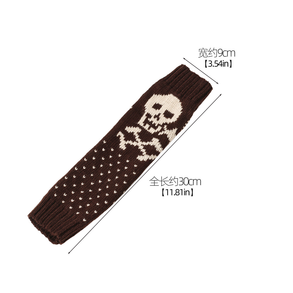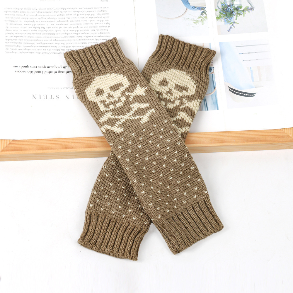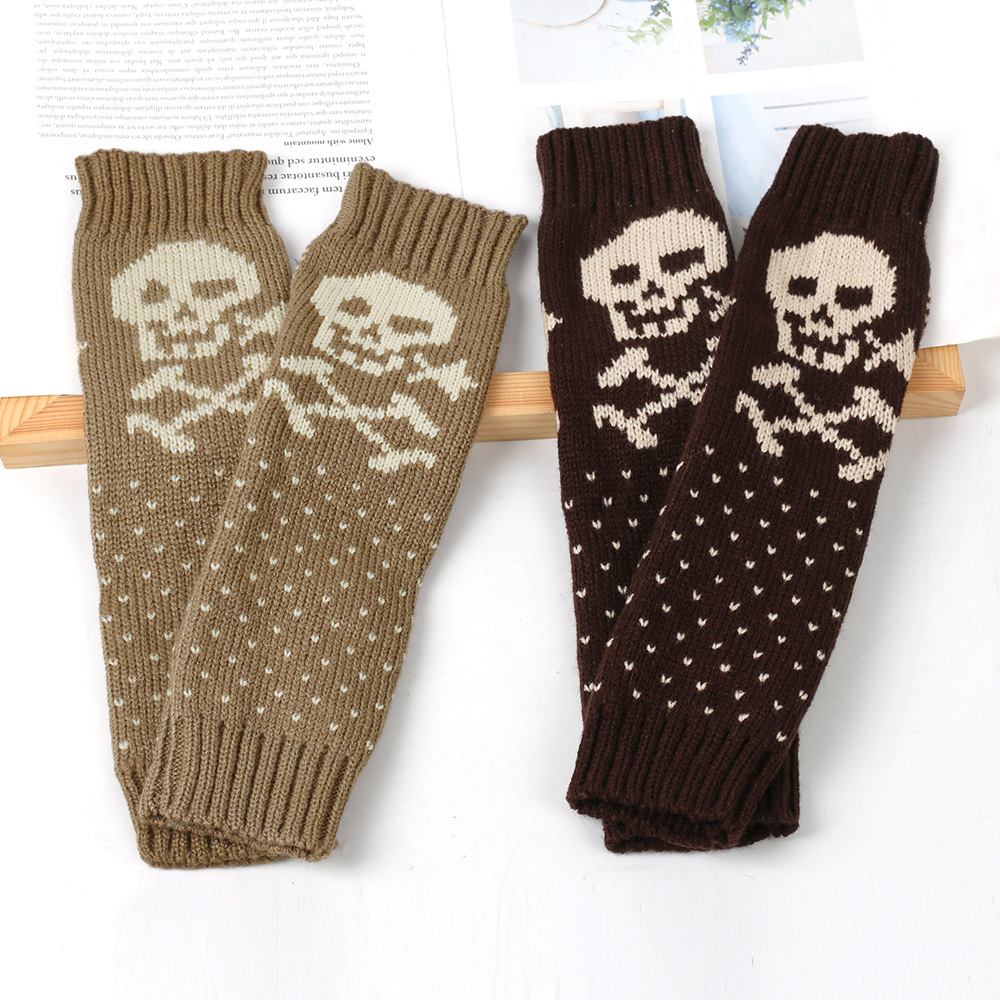 가을과 겨울 할로윈 울 장갑 니트 아크릴 따뜻한 소매 중간 길이 개인화 된 두개골 머리 excrochet 팔 소매스토어 가기
