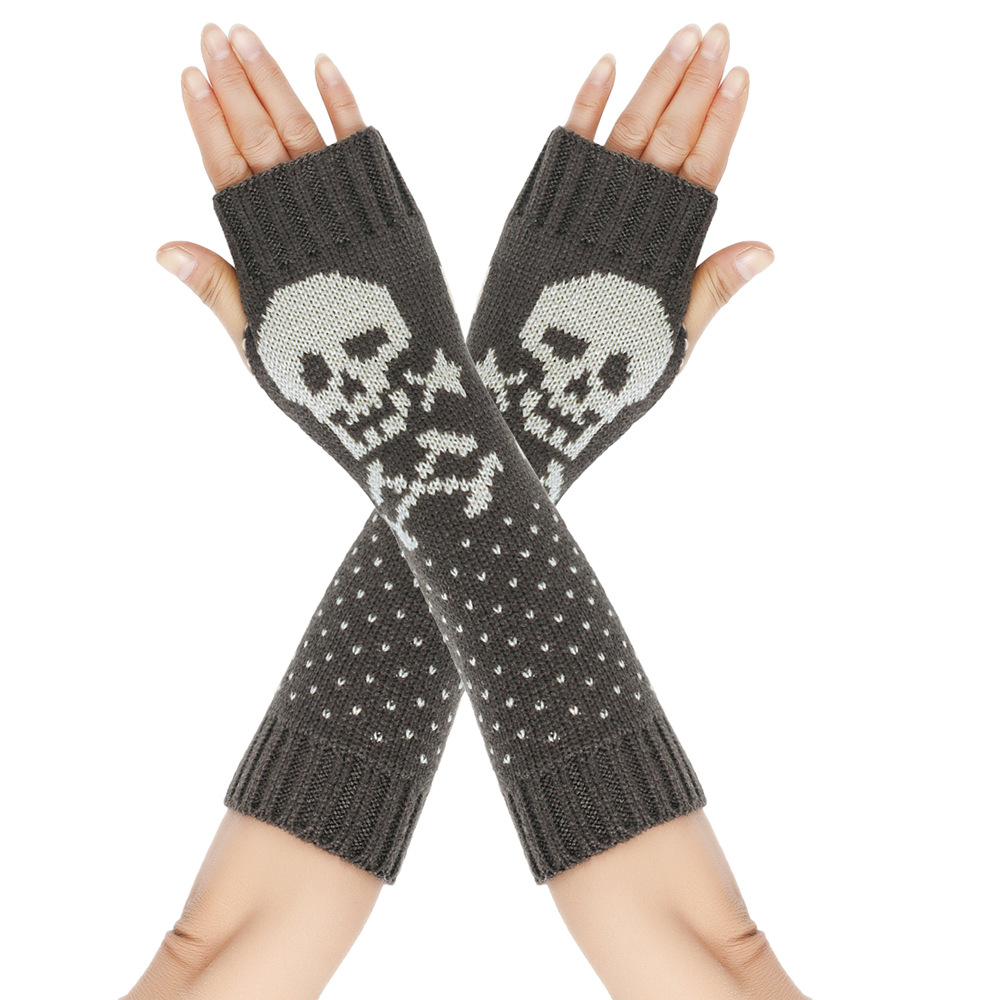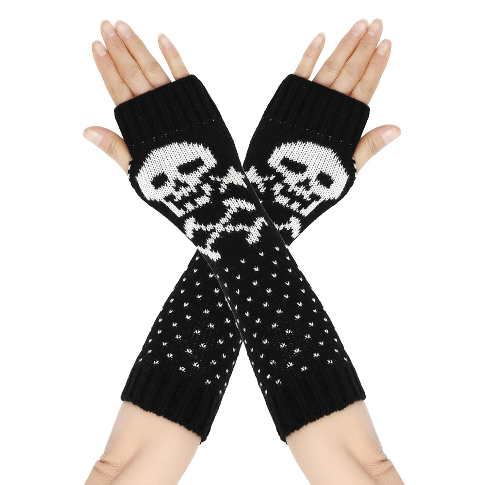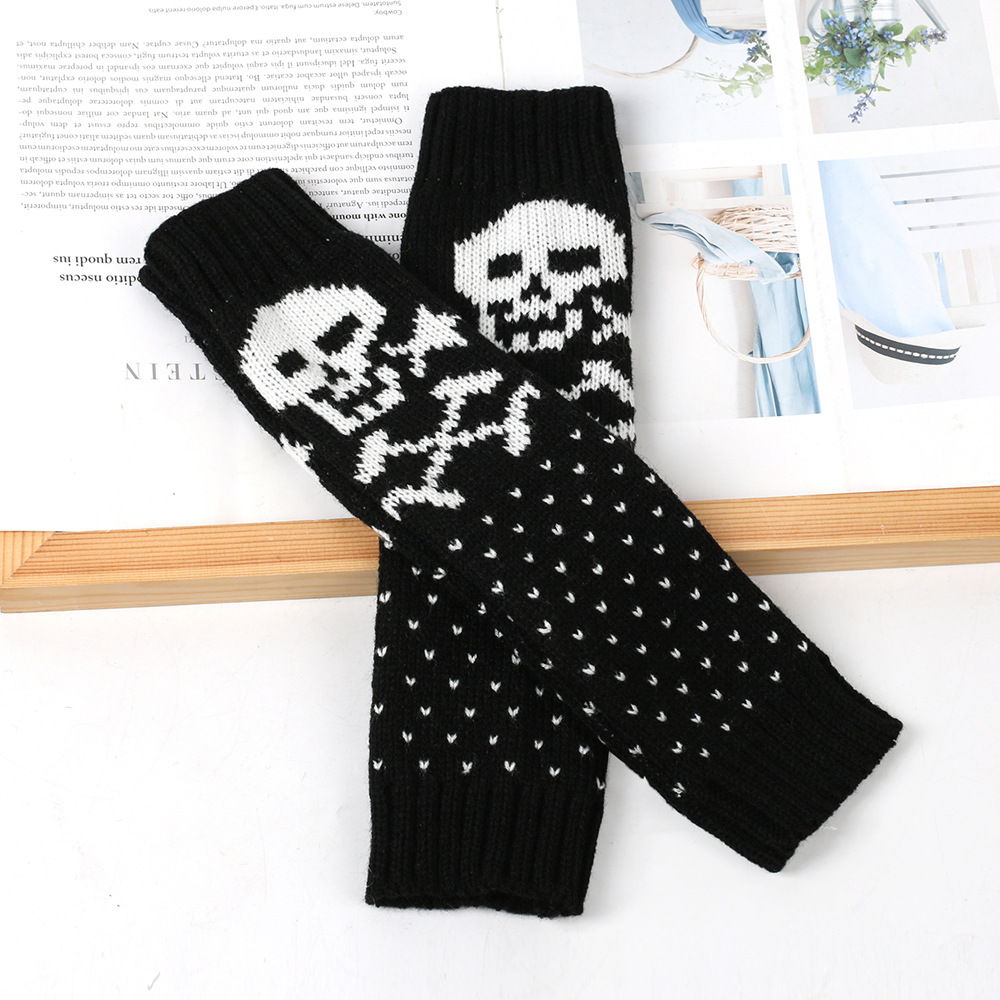 가을과 겨울 할로윈 울 장갑 니트 아크릴 따뜻한 소매 중간 길이 개인화 된 두개골 머리 excrochet 팔 소매