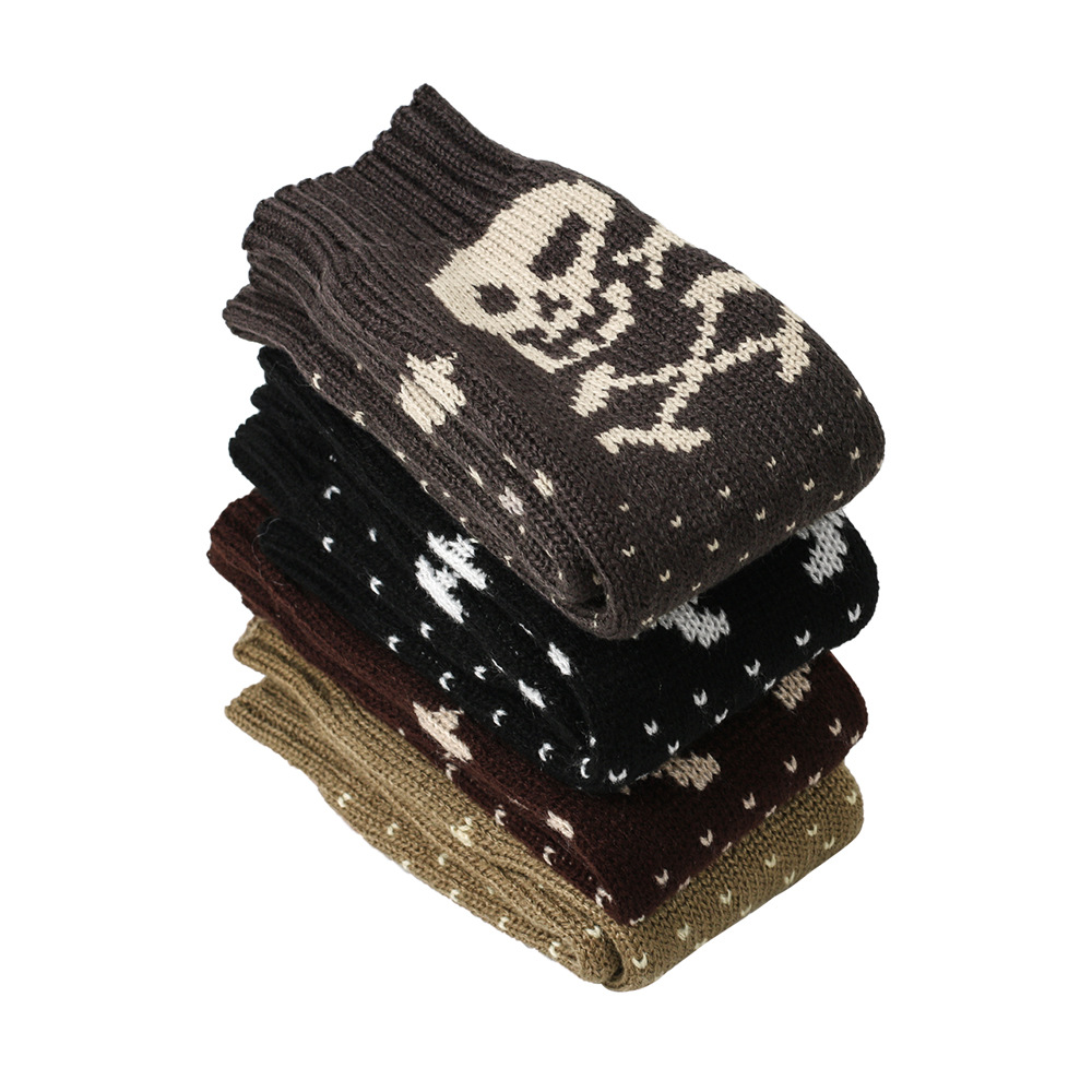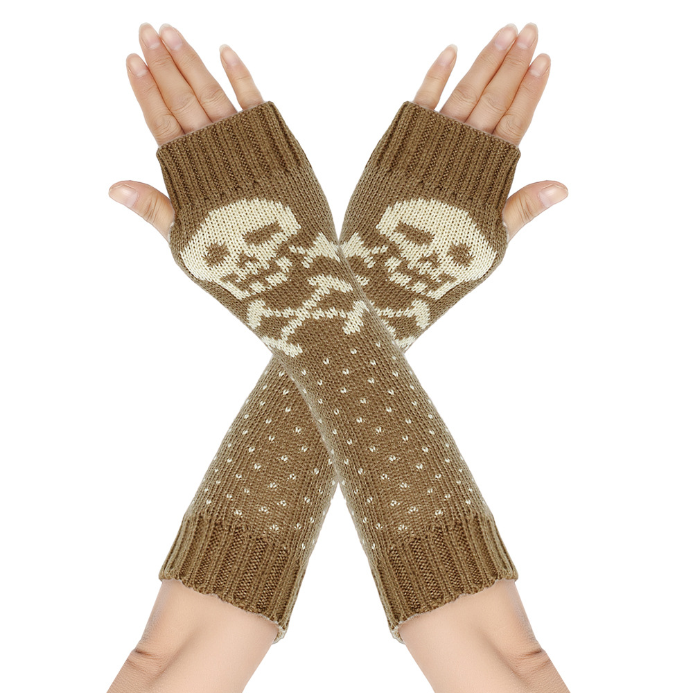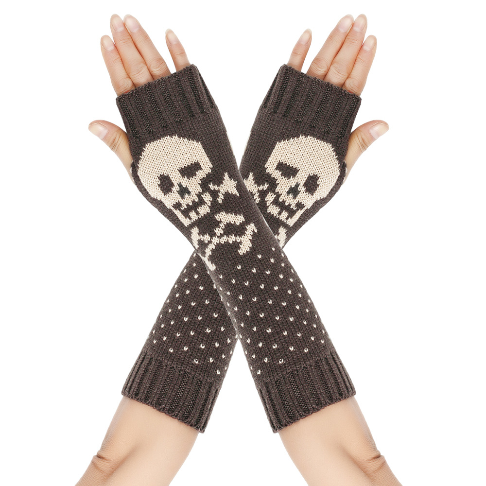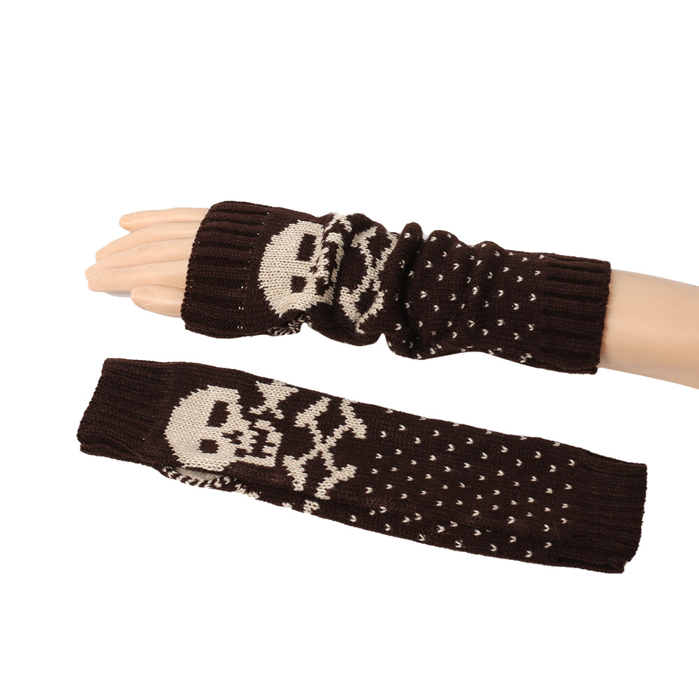 가을과 겨울 할로윈 울 장갑 니트 아크릴 따뜻한 소매 중간 길이 개인화 된 두개골 머리 excrochet 팔 소매