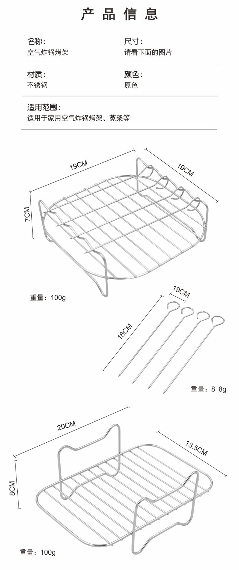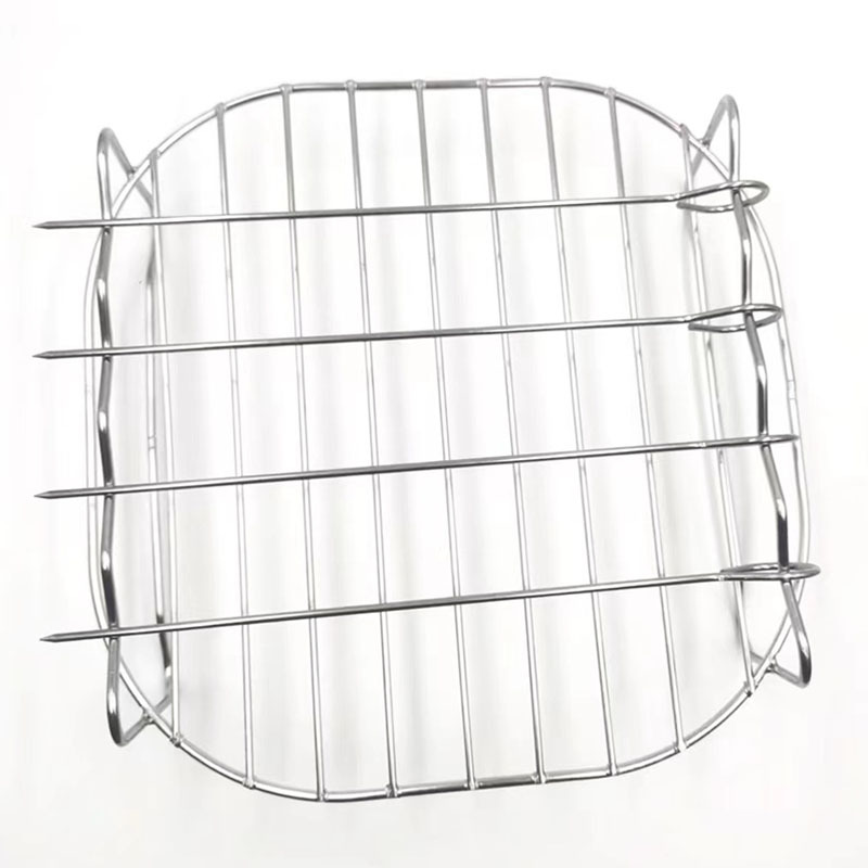 스테인레스 스틸 에어 프라이어 더블 레이어 스팀 그릴 4 핀 전기 프라이어 액세서리 7 인치 8 인치 스퀘어 바베큐 그릴 빵 랙
