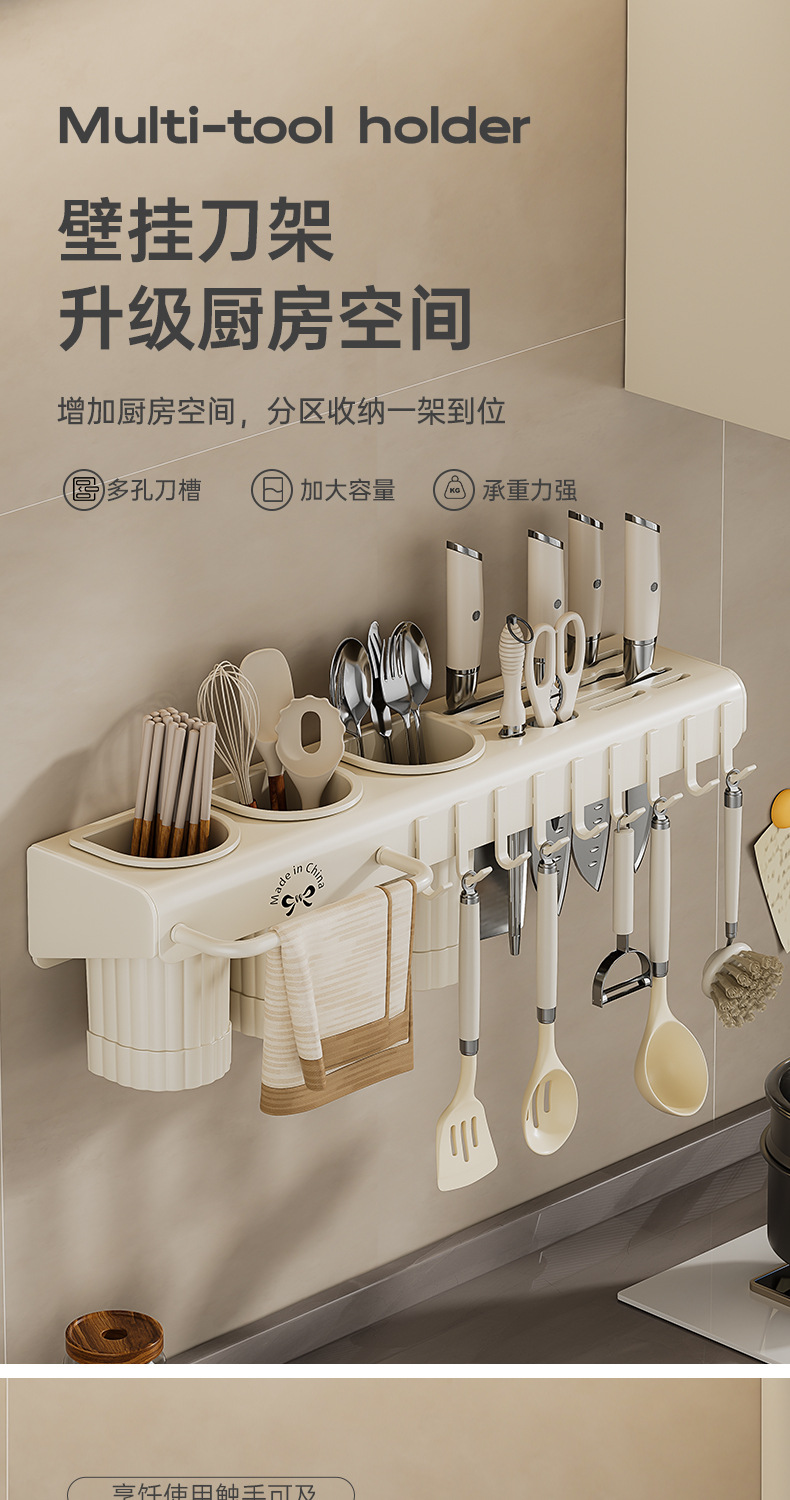 젓가락 보관 상자 벽걸이 형 펀치 프리 주방 칼 보관 랙 가정용 젓가락 케이지 바구니 다기능 통합 젓가락 홀더스토어 가기