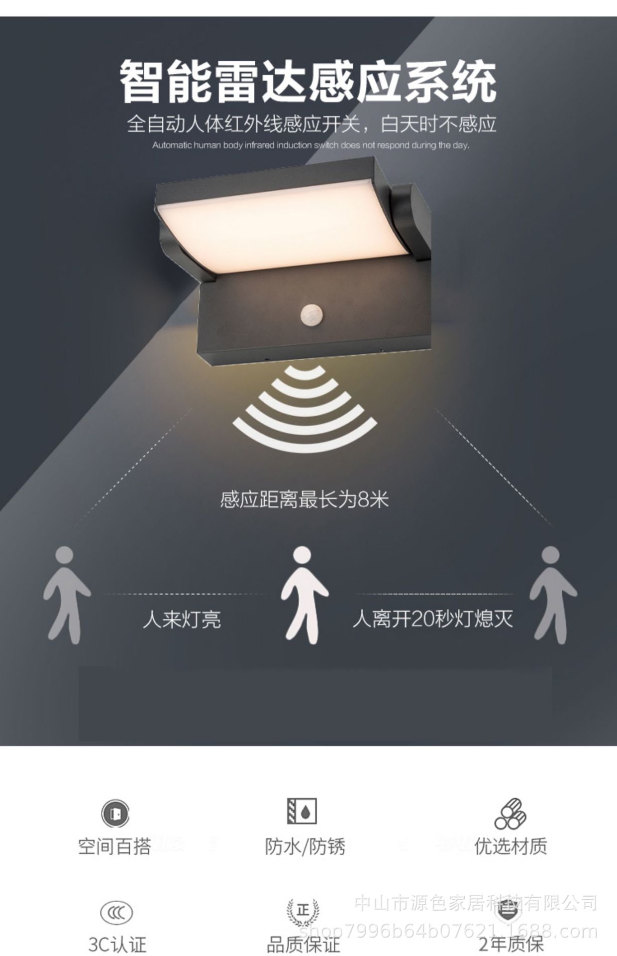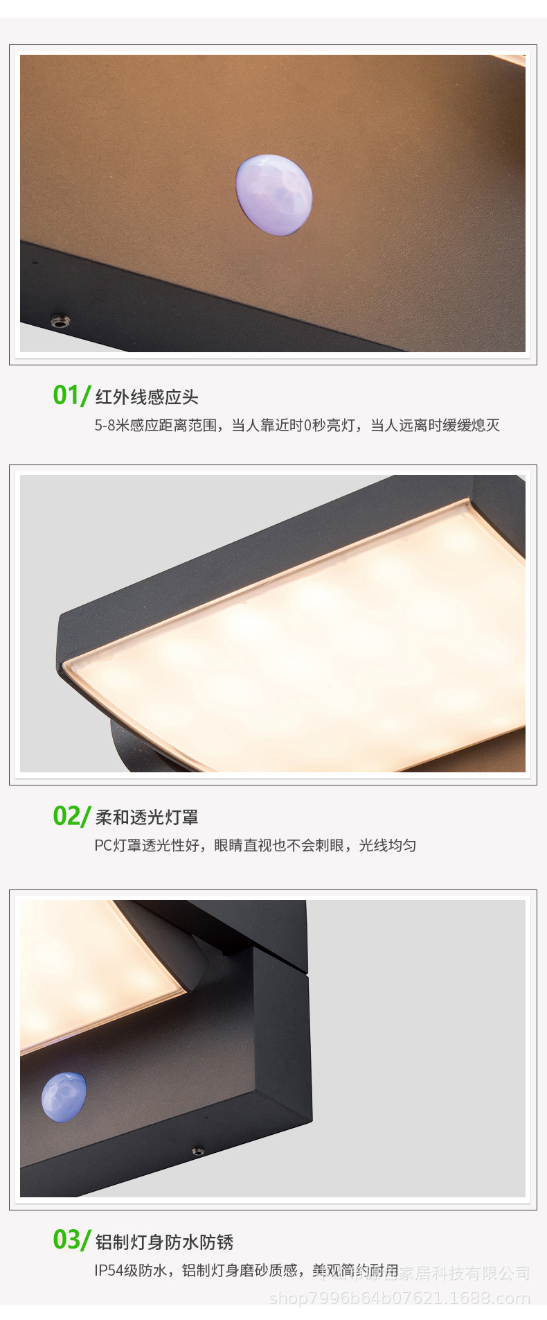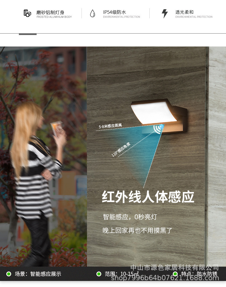 LED 야외 벽 램프 현대 미니멀 공원 호텔 발코니 인체 유도 램프 복도 벽 안뜰 비상 램프