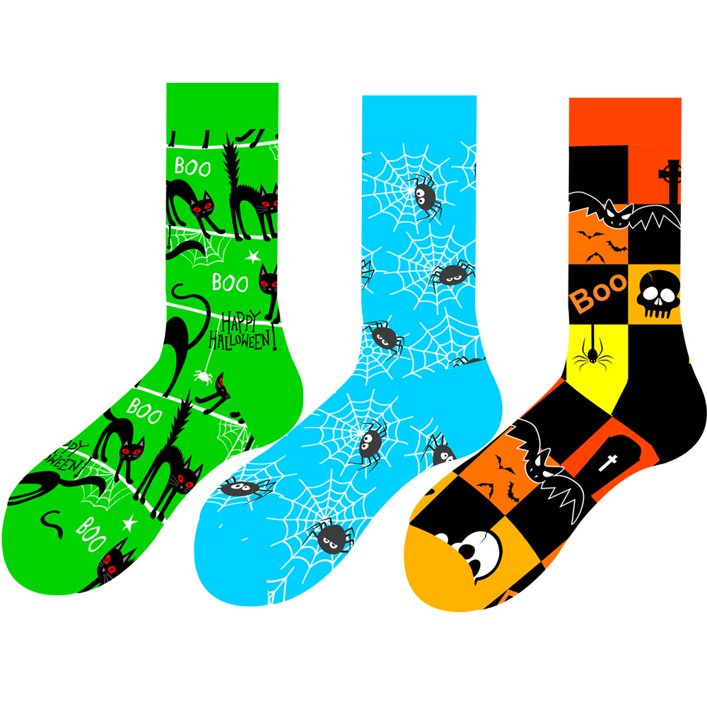 아마존 할로윈 2024 새로운 도착 박쥐 중간 양말 두개골 여성 양말 거미 유행 양말 피 묻은 남자 양말