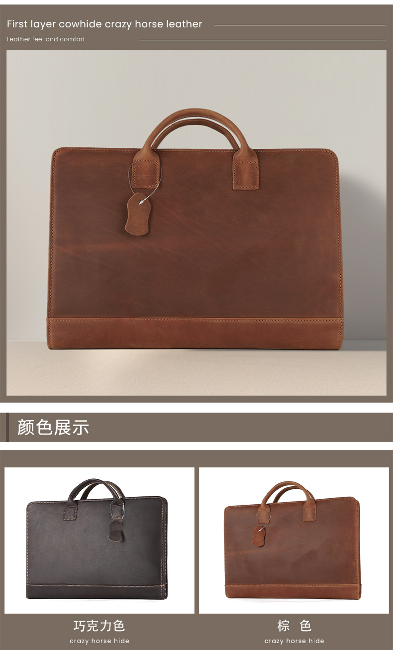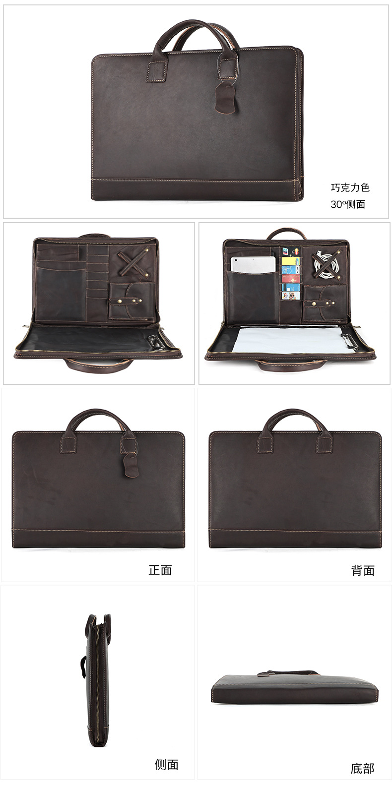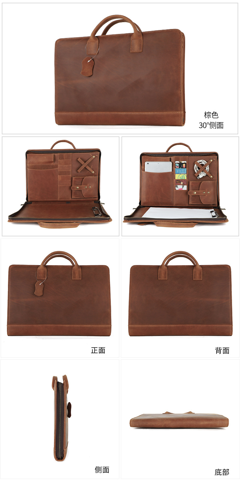 새로운 정품 가죽 컴퓨터 가방 비즈니스 남자 15.6inch 핸드백 미친 말 가죽 다기능 고급 서류 가방 남자 가방스토어 가기
