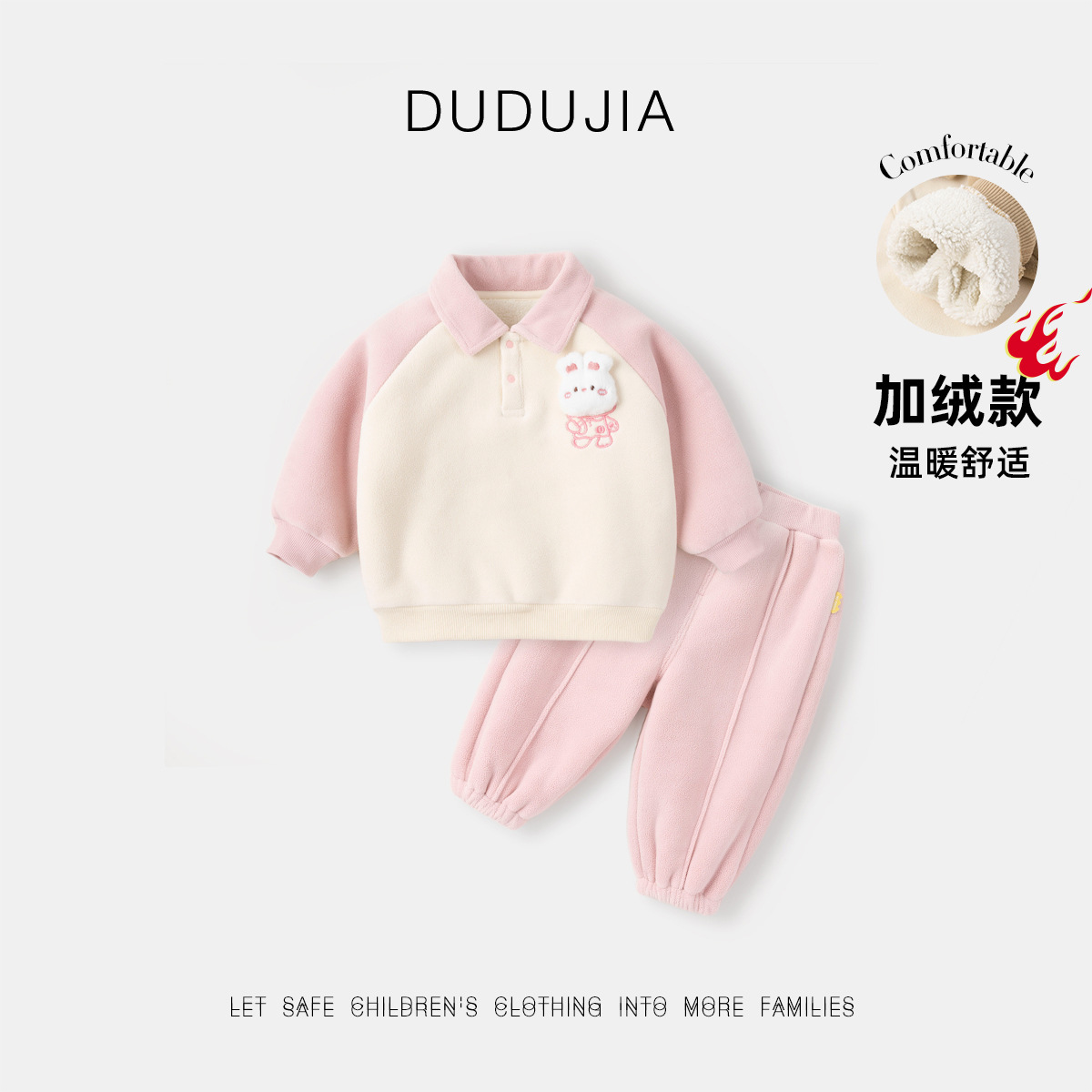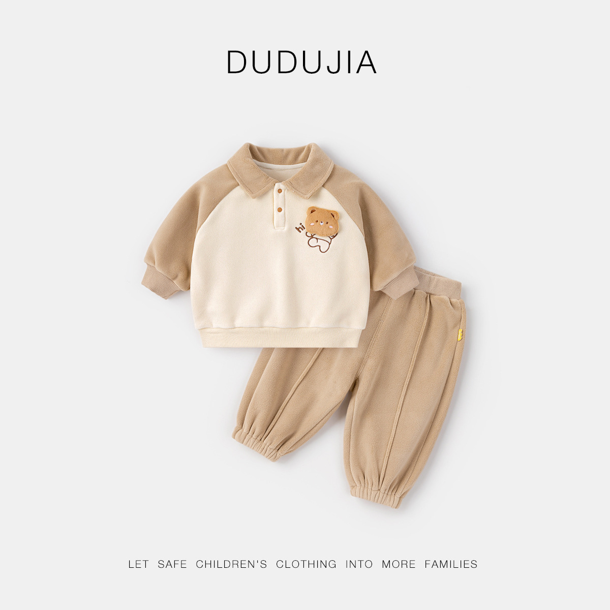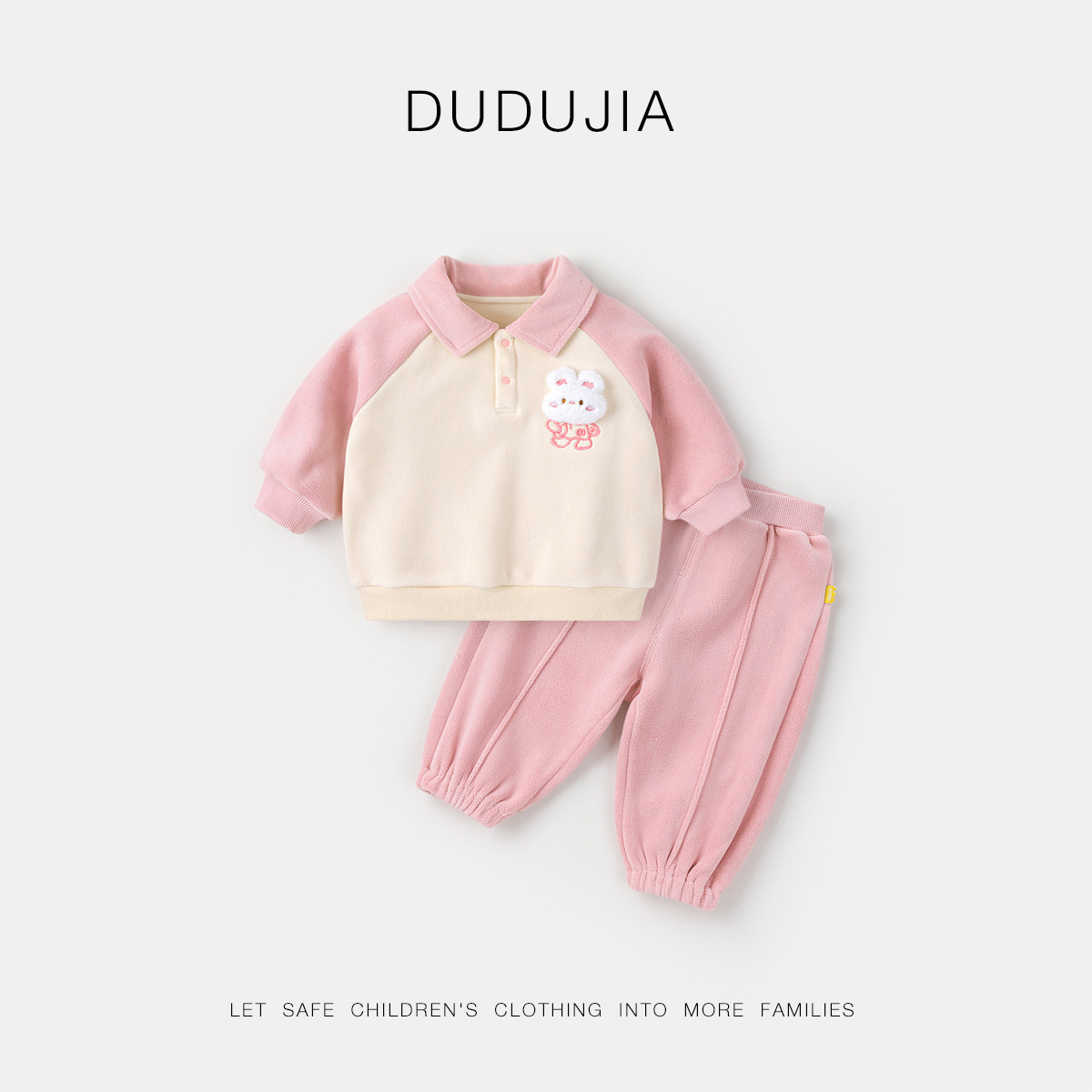 Dudu 어린이 코트 가을과 겨울 아기의 세트 소년 줄무늬 티셔츠 캐주얼 바지 소녀 병목 셔츠