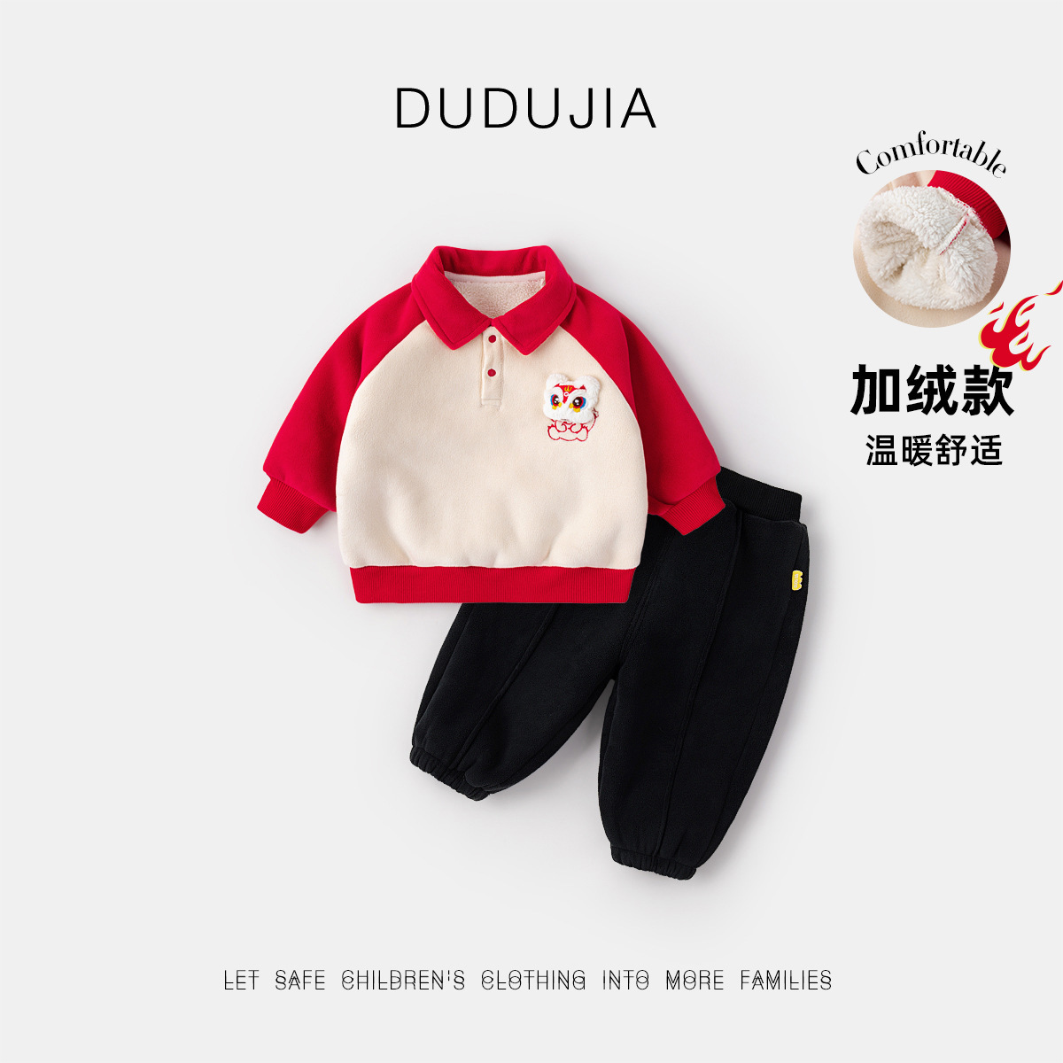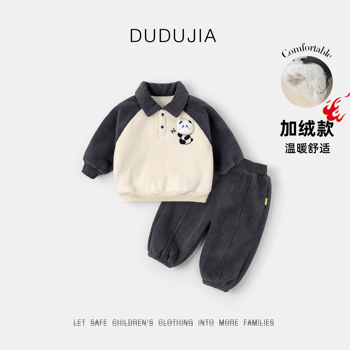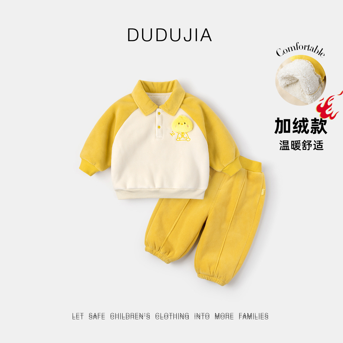Dudu 어린이 코트 가을과 겨울 아기의 세트 소년 줄무늬 티셔츠 캐주얼 바지 소녀 병목 셔츠