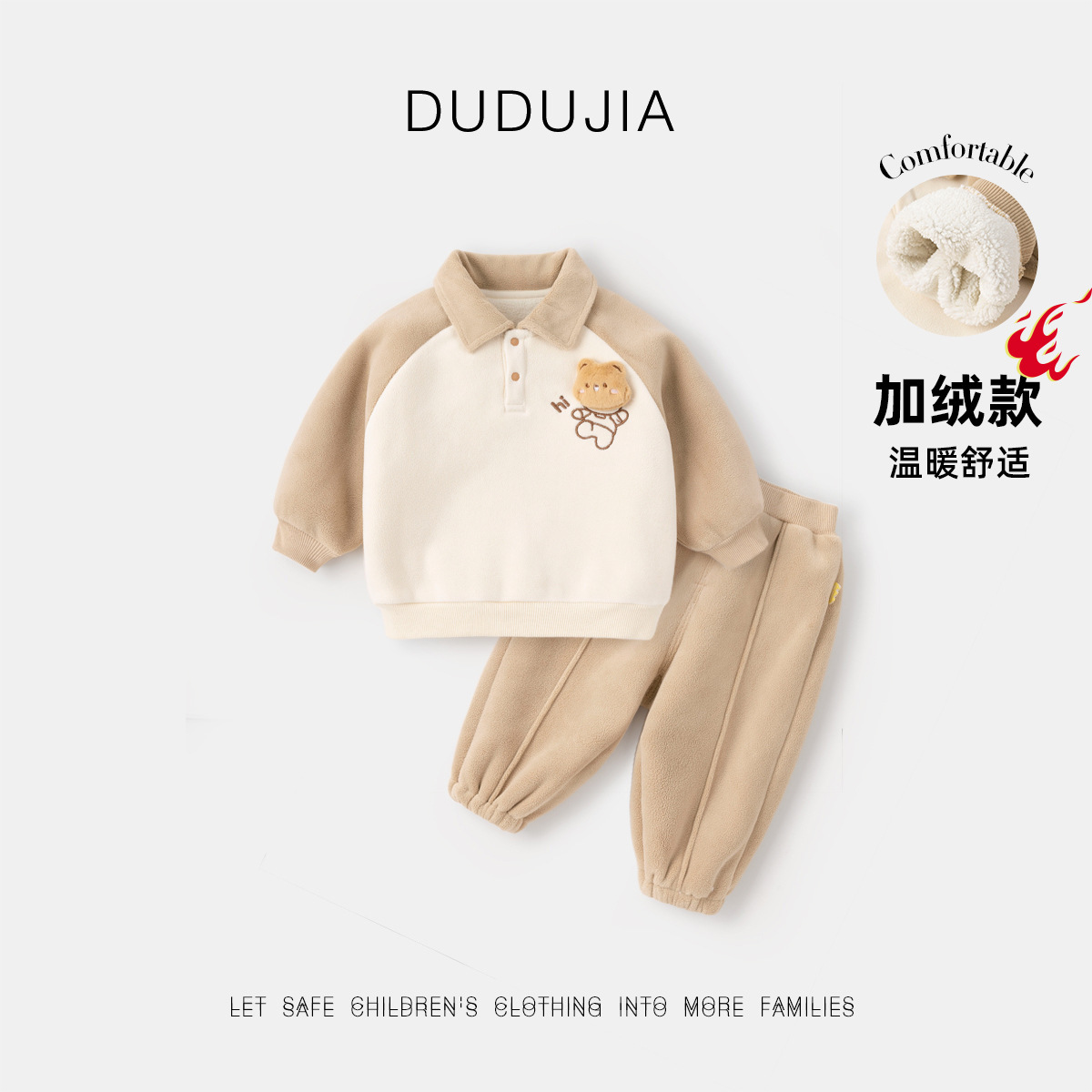 Dudu 어린이 코트 가을과 겨울 아기의 세트 소년 줄무늬 티셔츠 캐주얼 바지 소녀 병목 셔츠스토어 가기