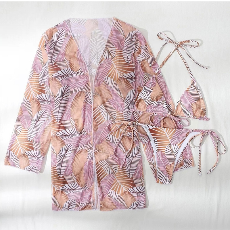2024 유럽과 미국의 새로운 섹시한 비키니 인쇄 분할 수영복 여성 국경 대외 무역 수영복 3 피스 제조 업체