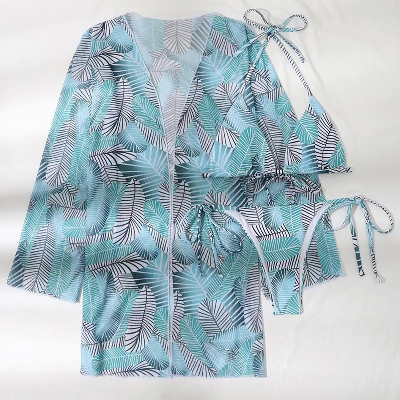 2024 유럽과 미국의 새로운 섹시한 비키니 인쇄 분할 수영복 여성 국경 대외 무역 수영복 3 피스 제조 업체스토어 가기