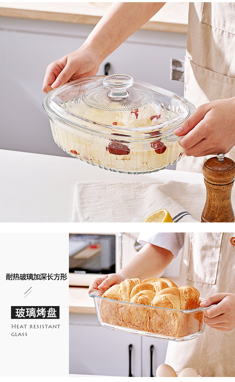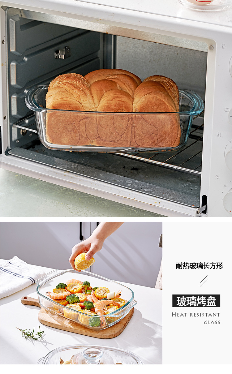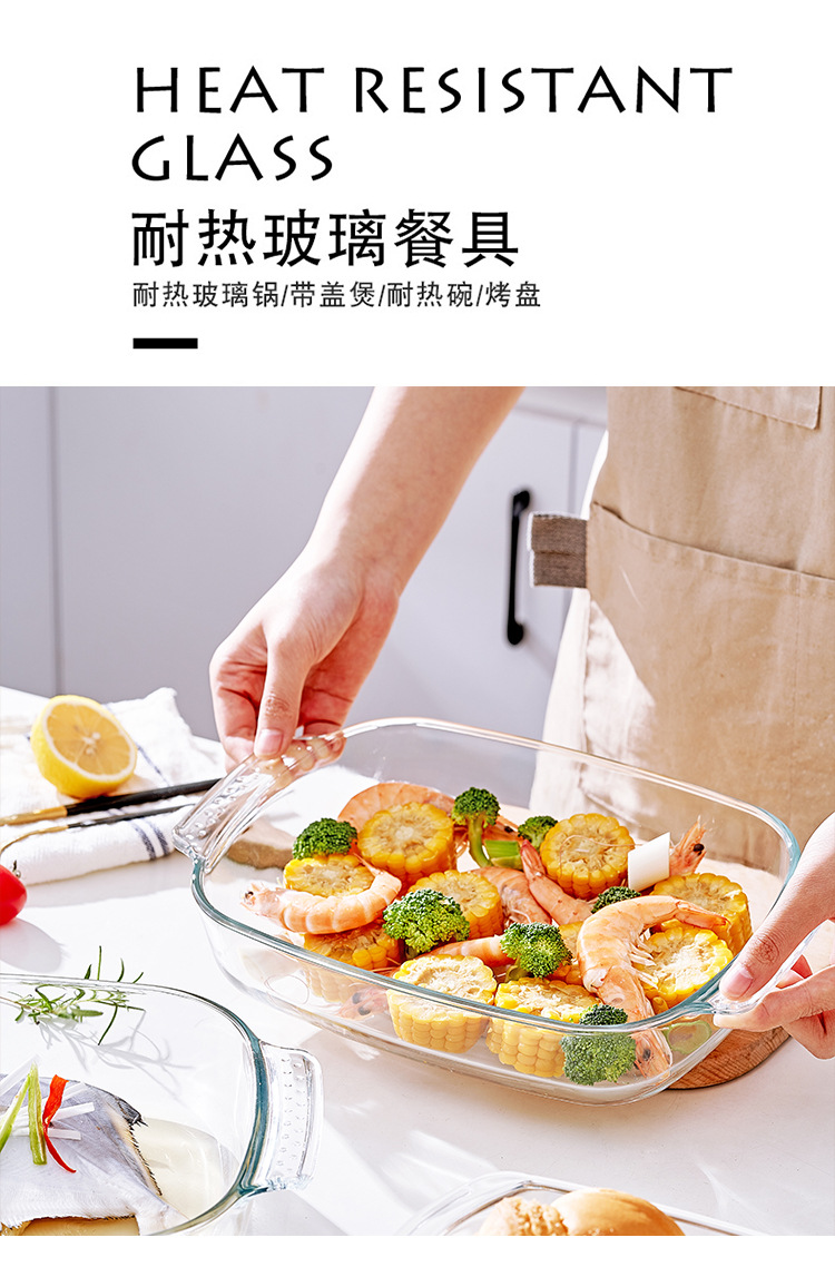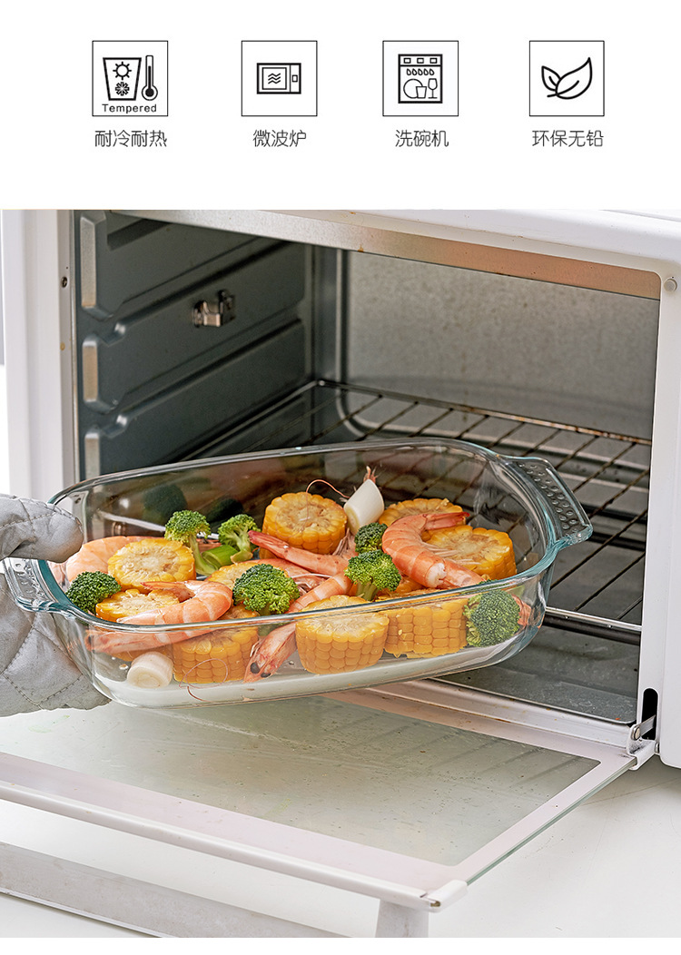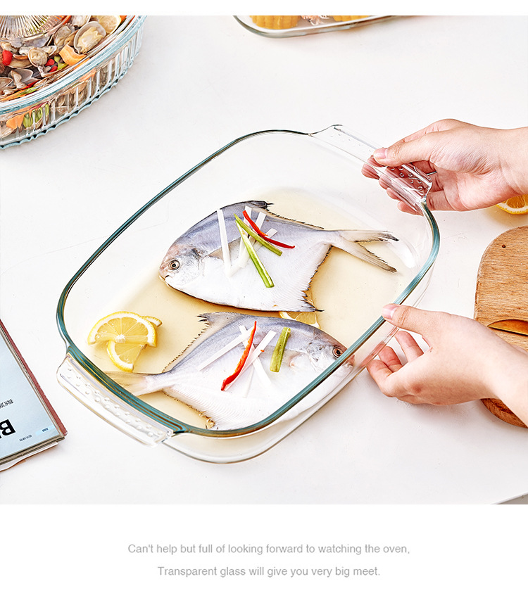 유리 베이킹 팬 가정용 전자레인지 전용 직사각형 용기 접시 생선구이 접시 고온 내성 유리