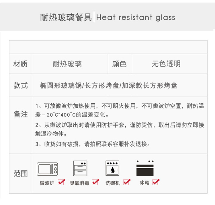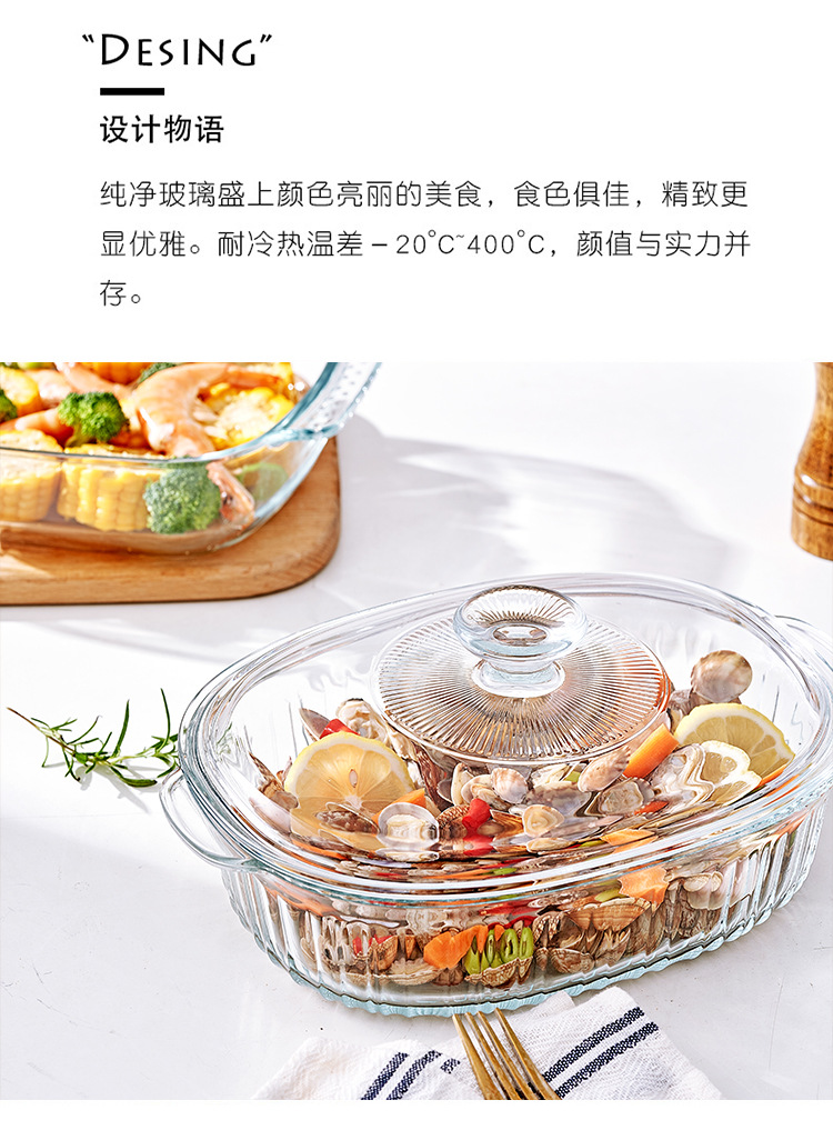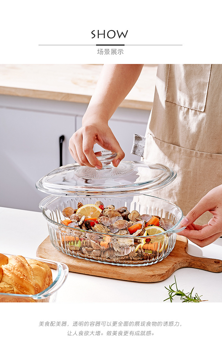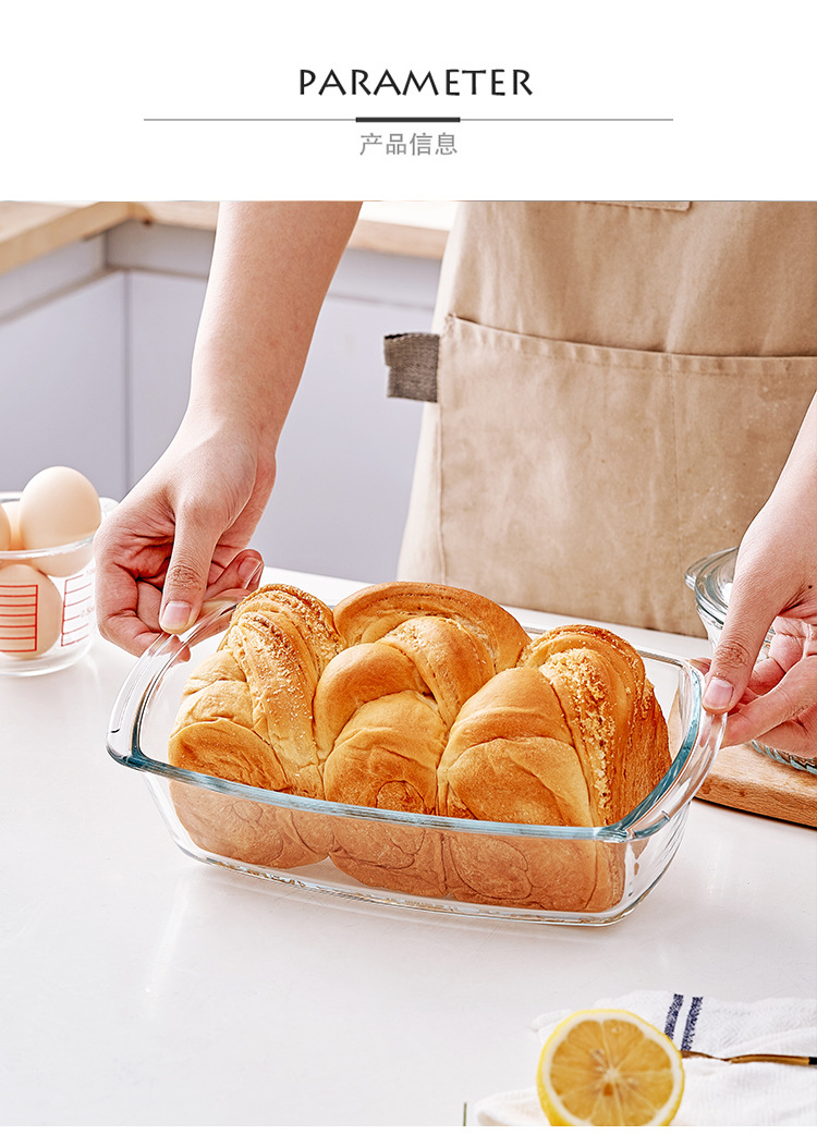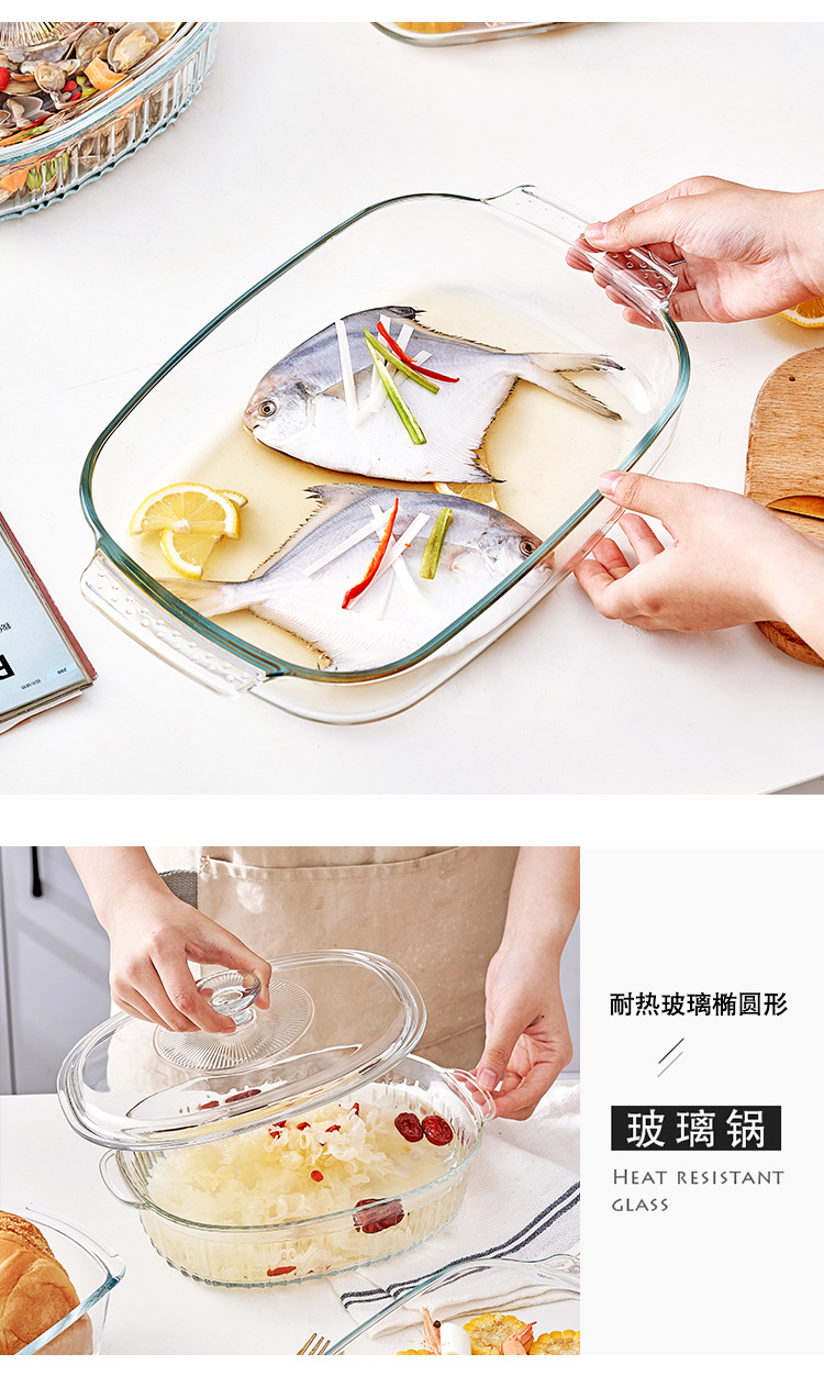 유리 베이킹 팬 가정용 전자레인지 전용 직사각형 용기 접시 생선구이 접시 고온 내성 유리