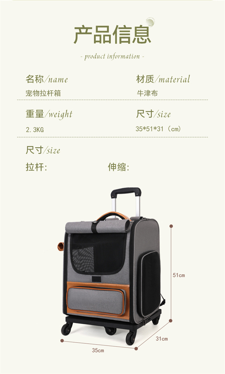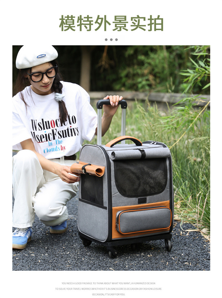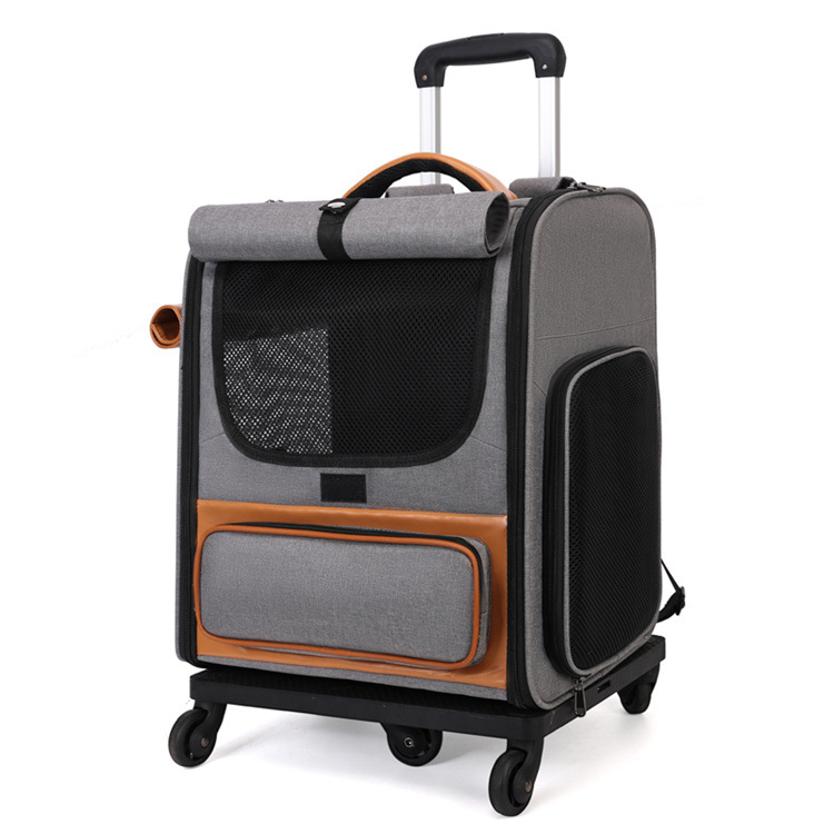 애완 동물 트롤리 케이스 통기성 접이식 고양이 가방 대용량 두 고양이 휴대용 여행 애완 동물 트롤리 가방