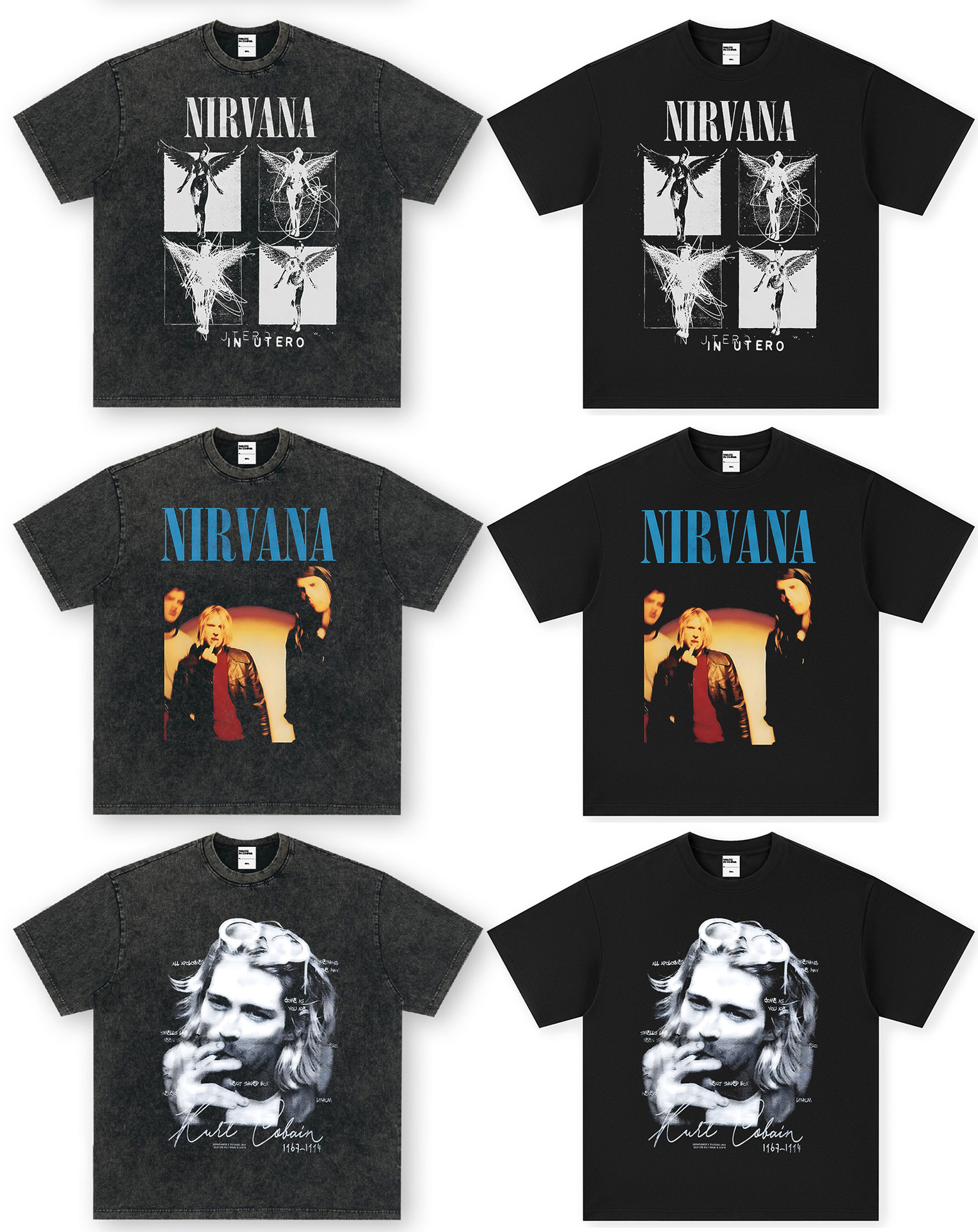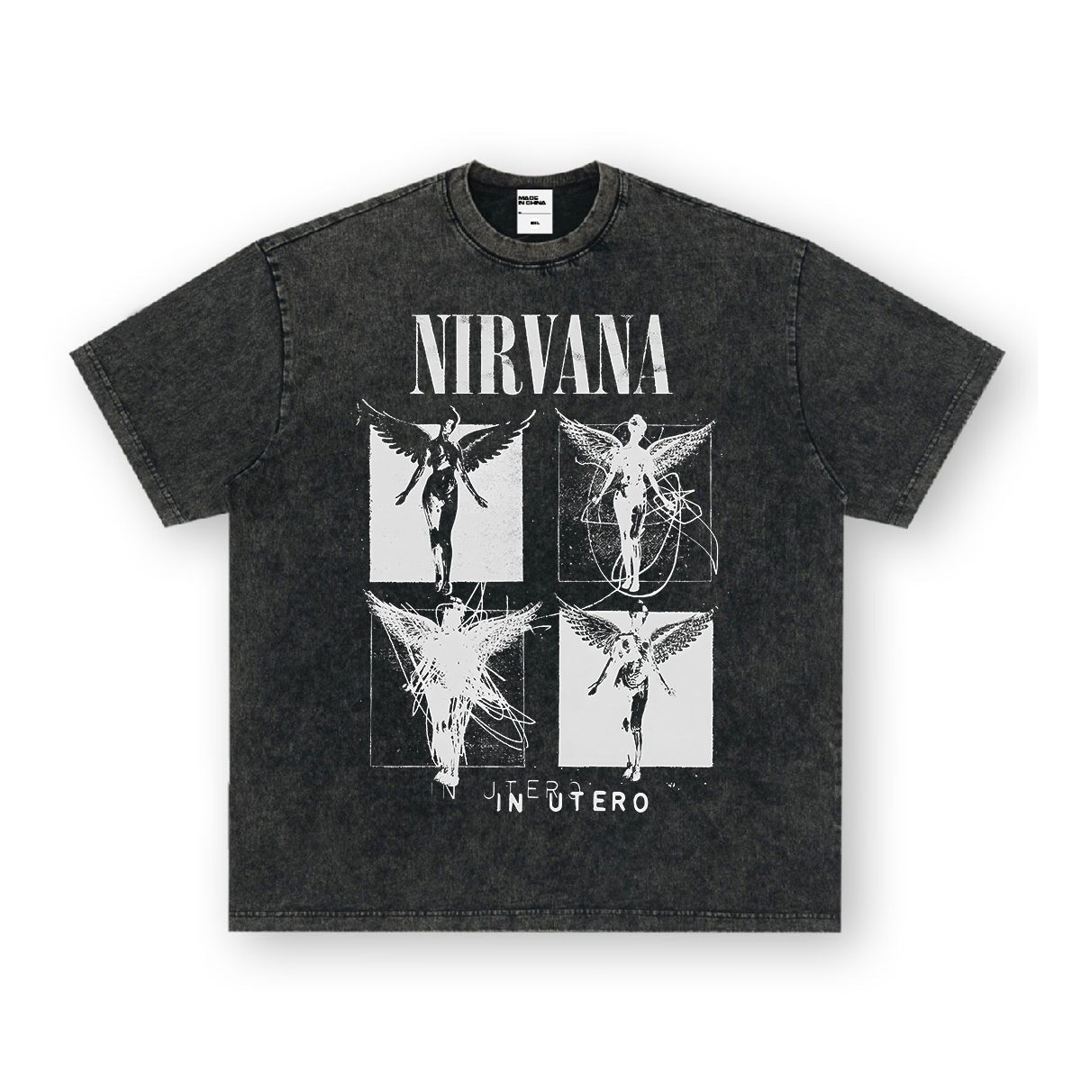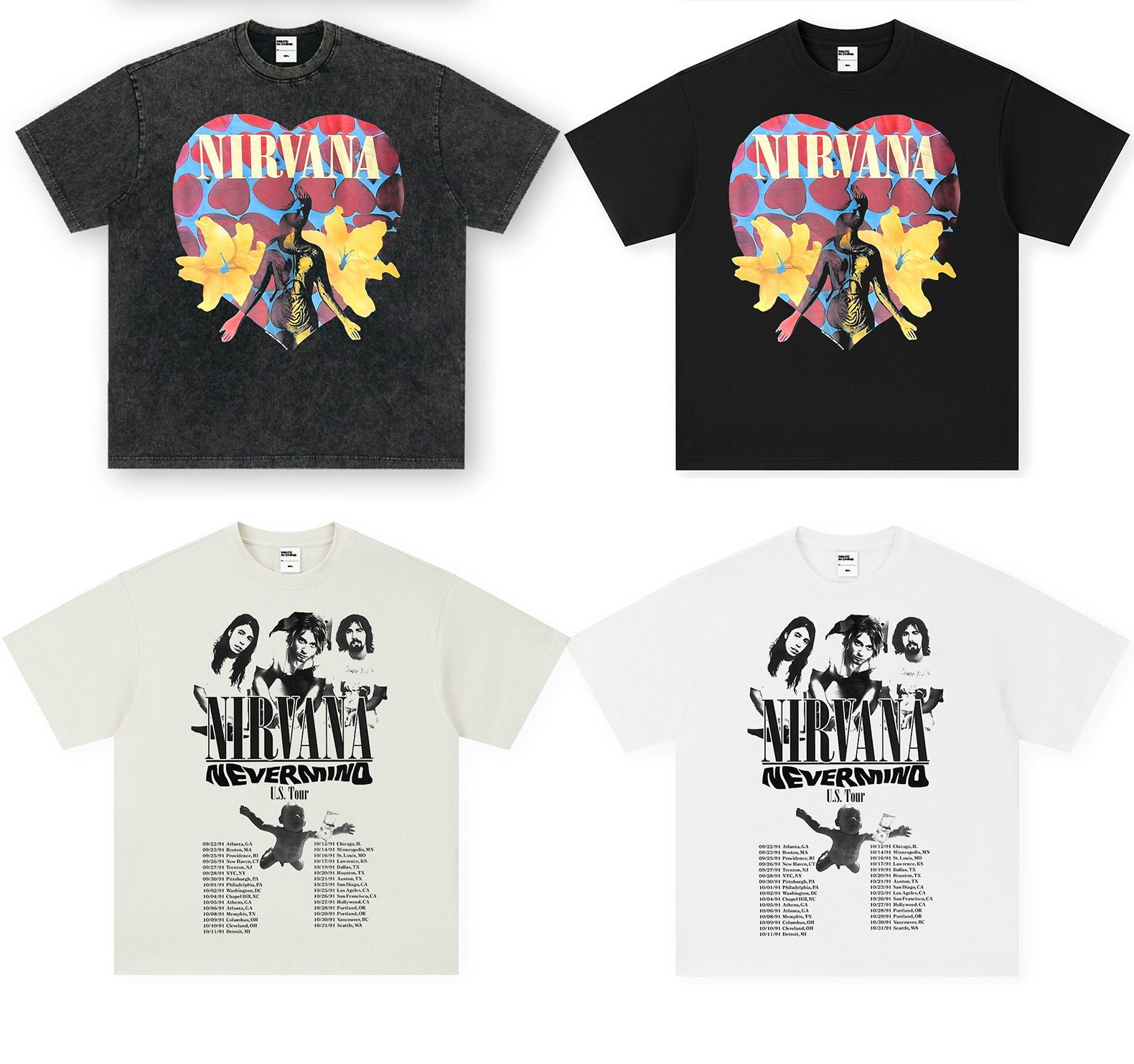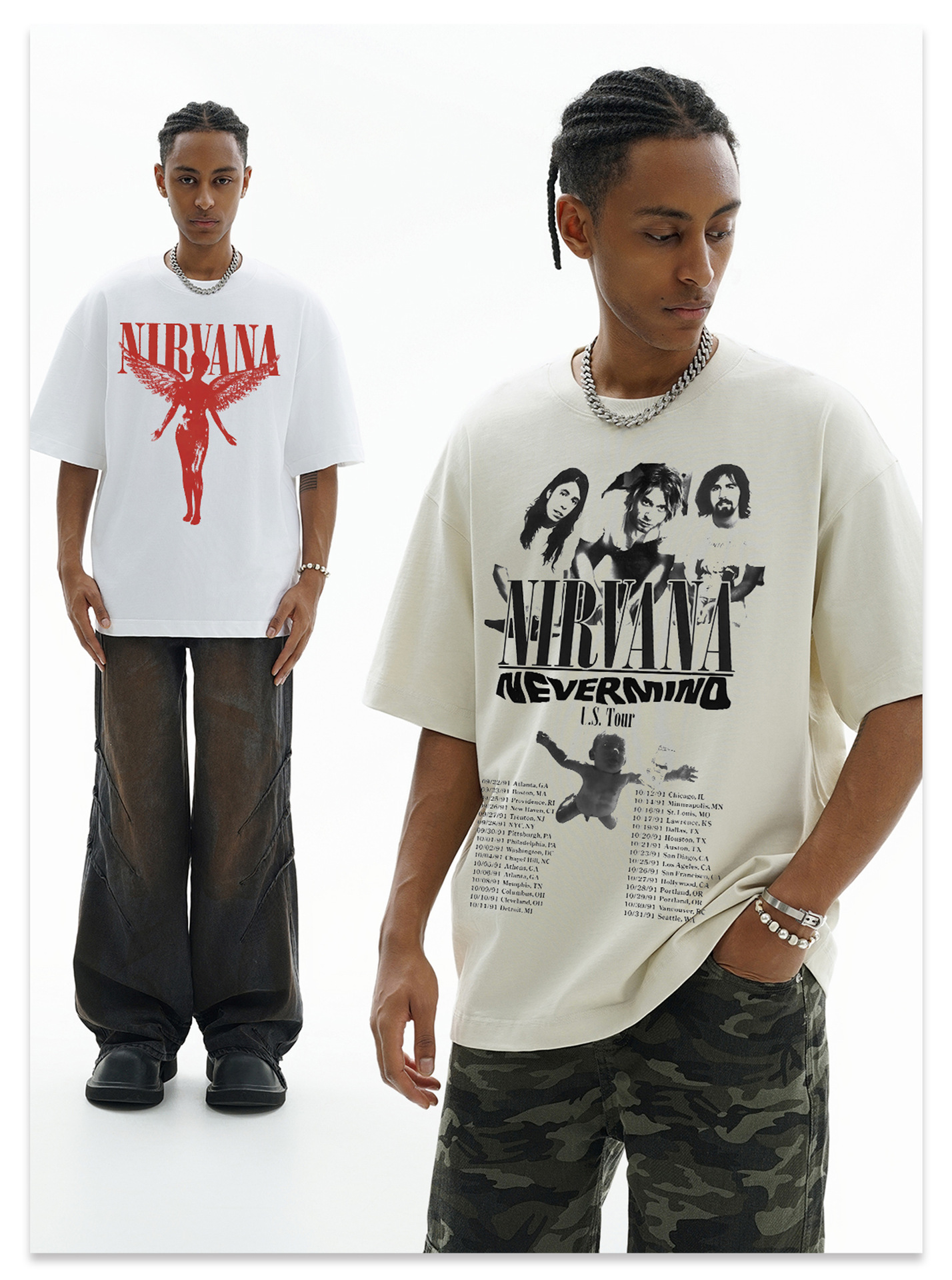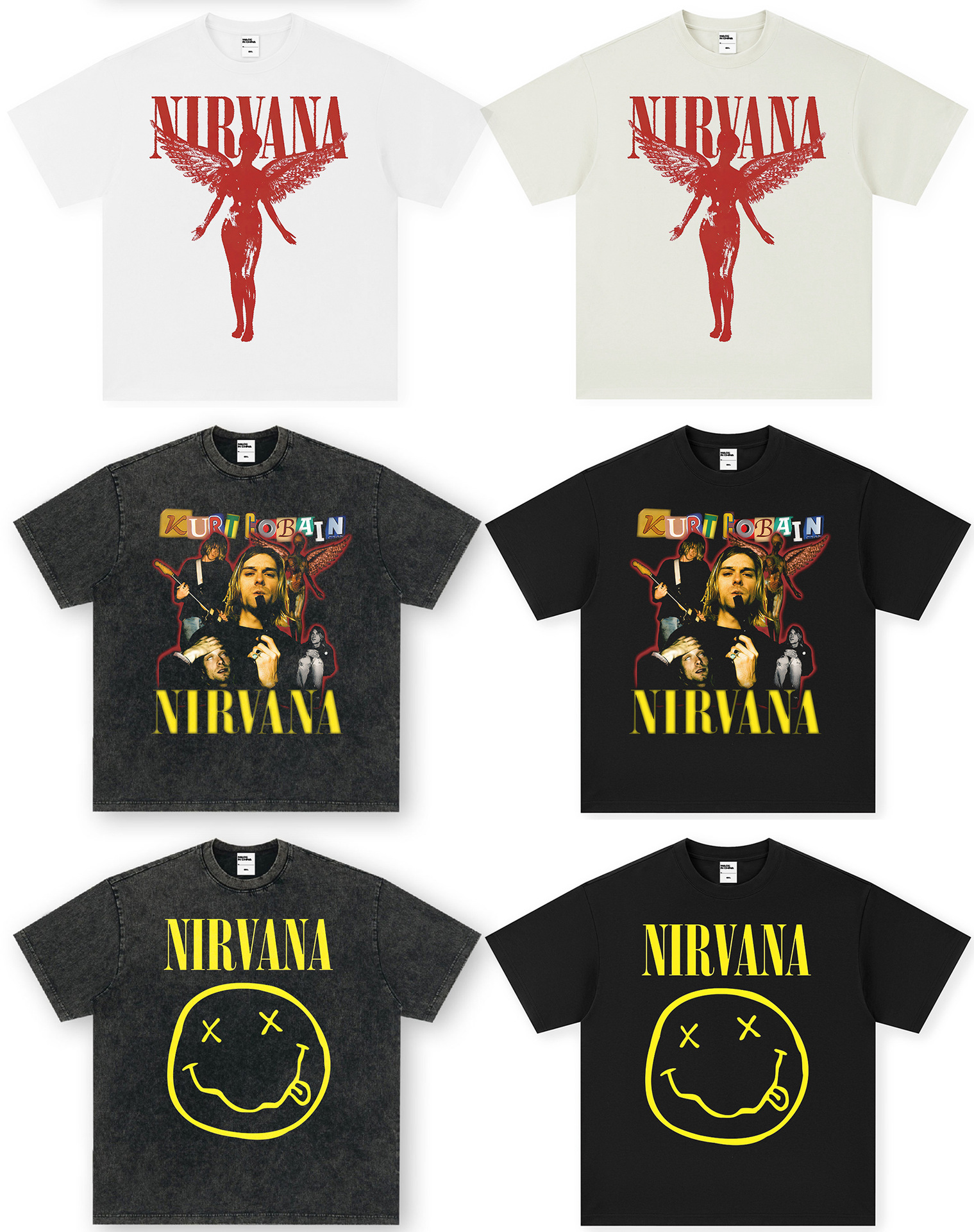 NIRVANA 락 아메리칸 레트로 반팔 티셔츠 워싱 헤비 크로스 보더 프린트 아메리칸 트렌디 퓨어 코튼 빈티지 남성스토어 가기