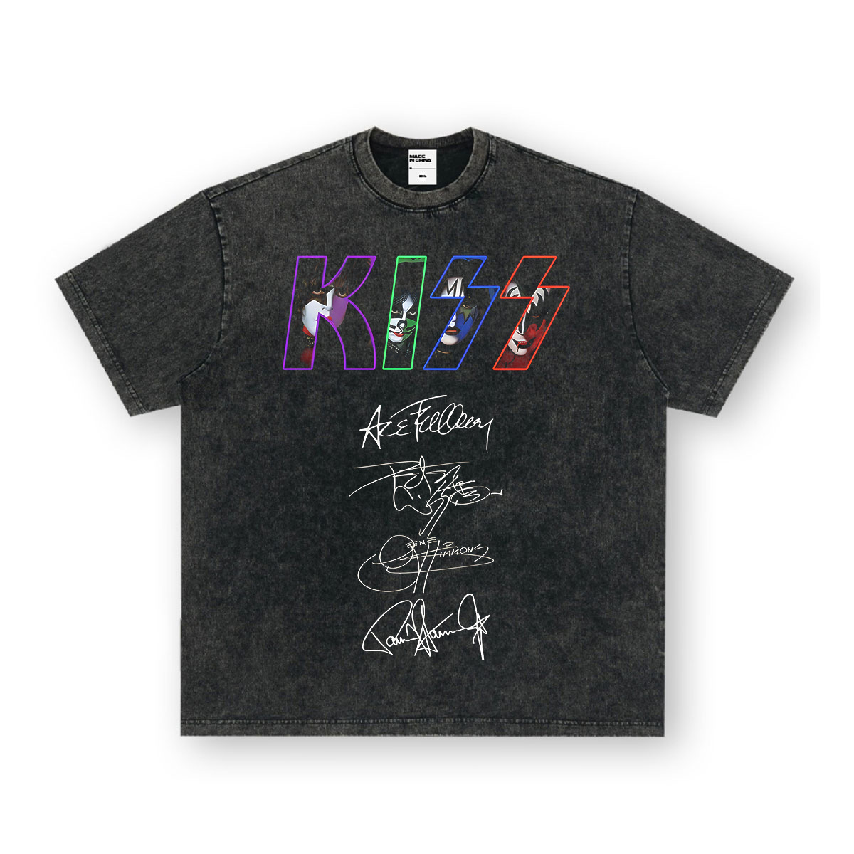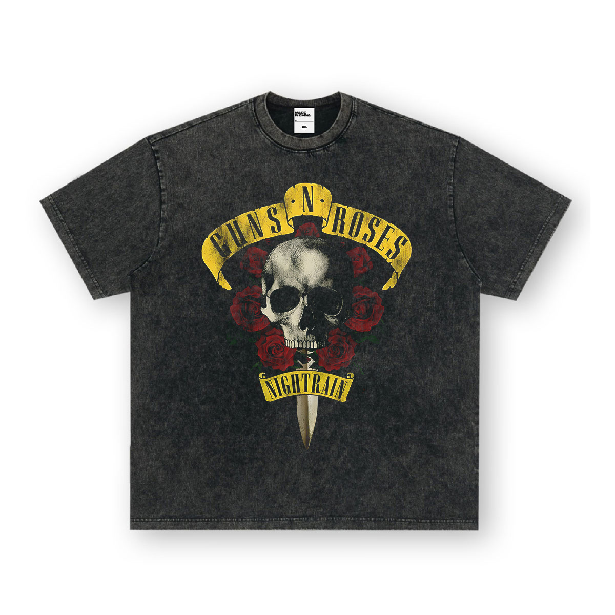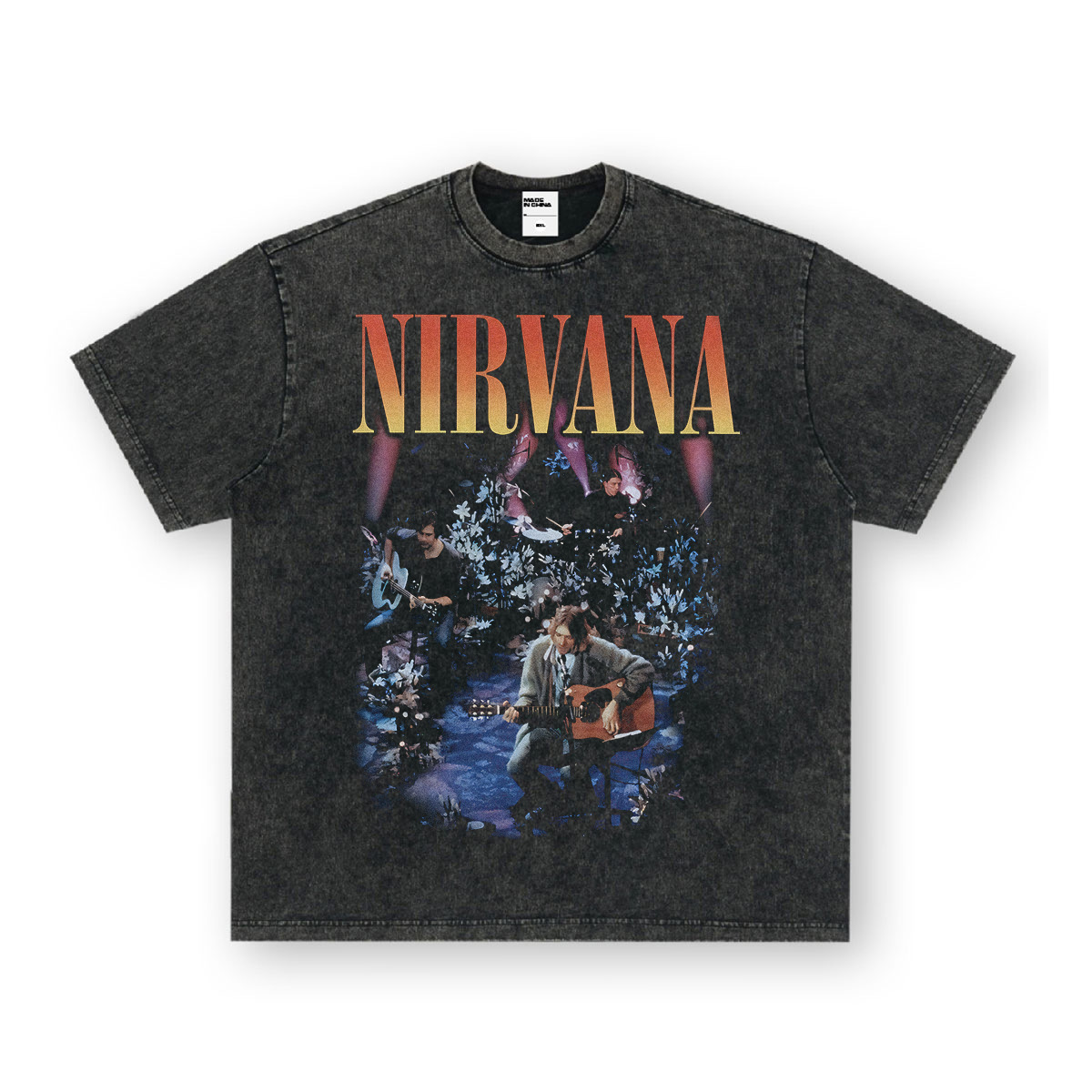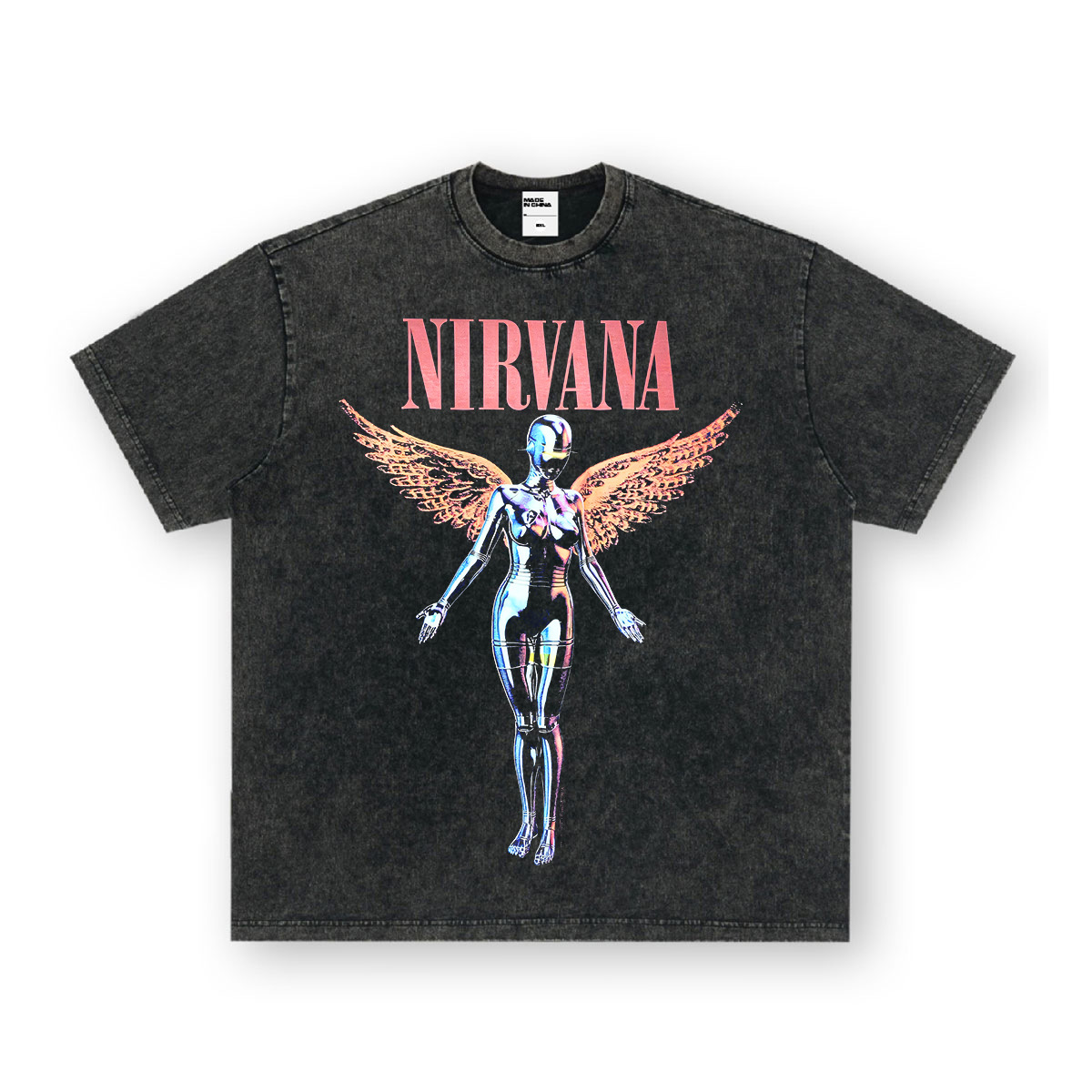 NIRVANA 락 아메리칸 레트로 반팔 티셔츠 워싱 헤비 크로스 보더 프린트 아메리칸 트렌디 퓨어 코튼 빈티지 남성스토어 가기