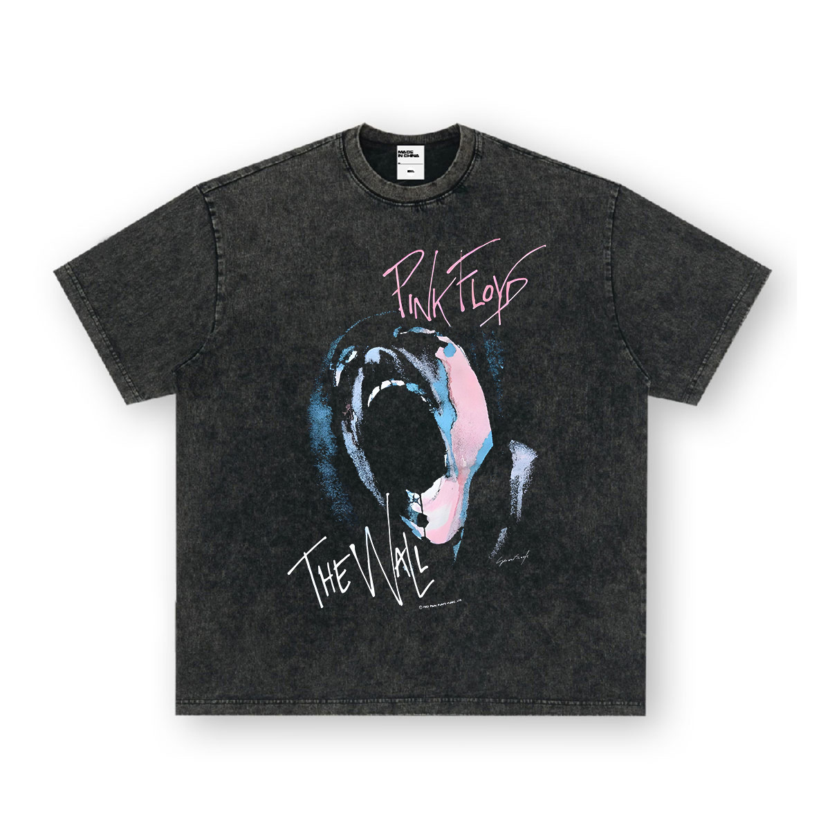 • 핑크 FLOYD 곡선 로고 세척 블랙