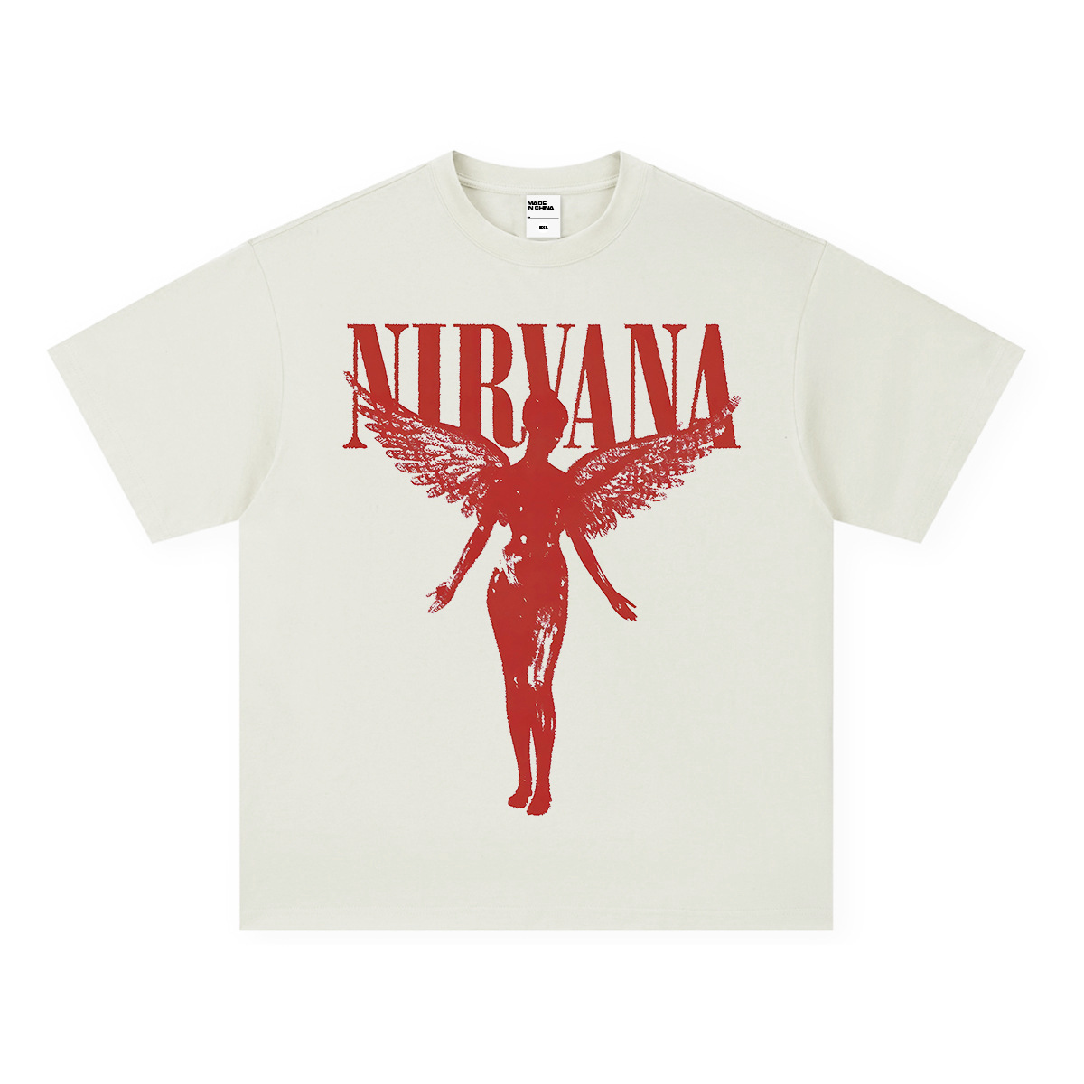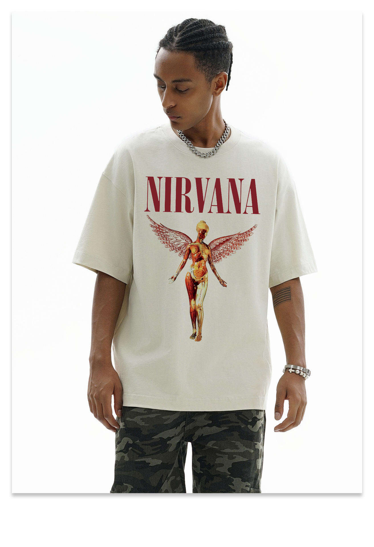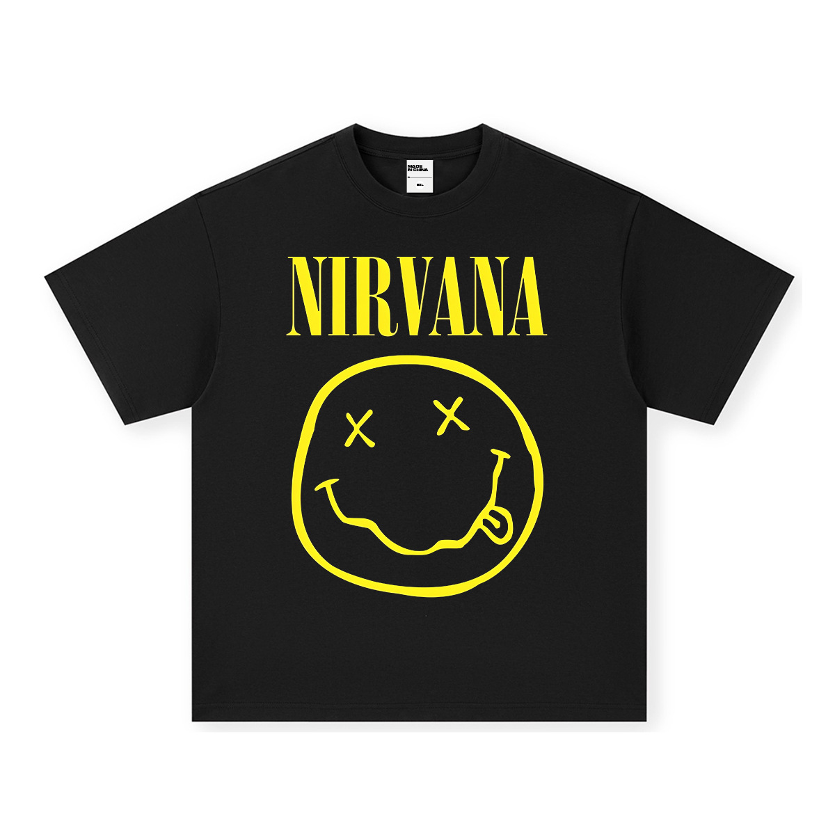 NIRVANA 락 아메리칸 레트로 반팔 티셔츠 워싱 헤비 크로스 보더 프린트 아메리칸 트렌디 퓨어 코튼 빈티지 남성