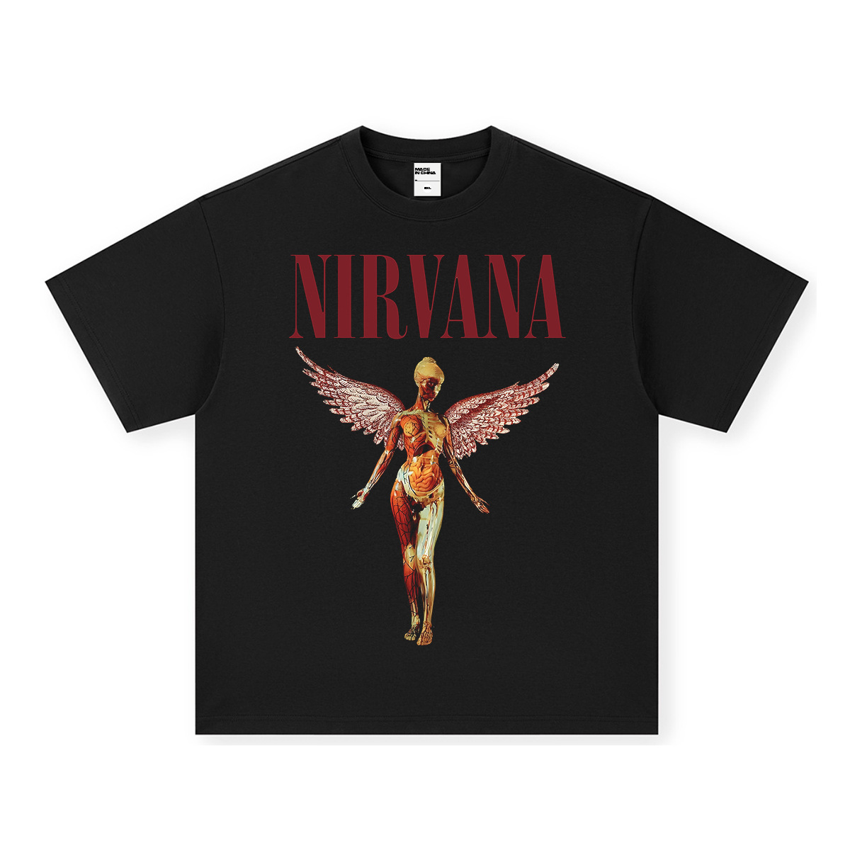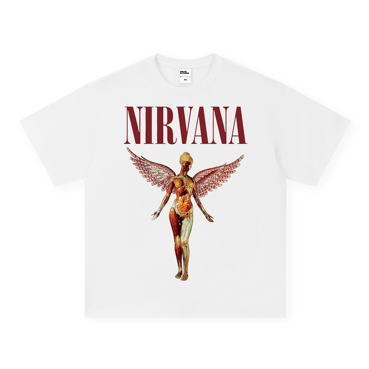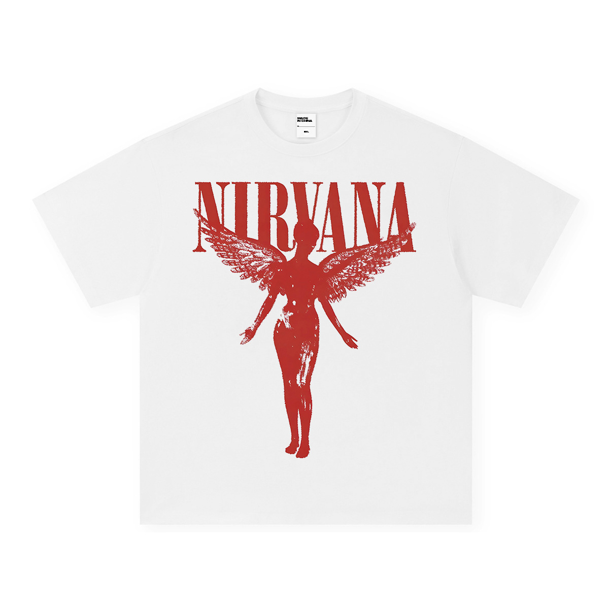 NIRVANA 락 아메리칸 레트로 반팔 티셔츠 워싱 헤비 크로스 보더 프린트 아메리칸 트렌디 퓨어 코튼 빈티지 남성