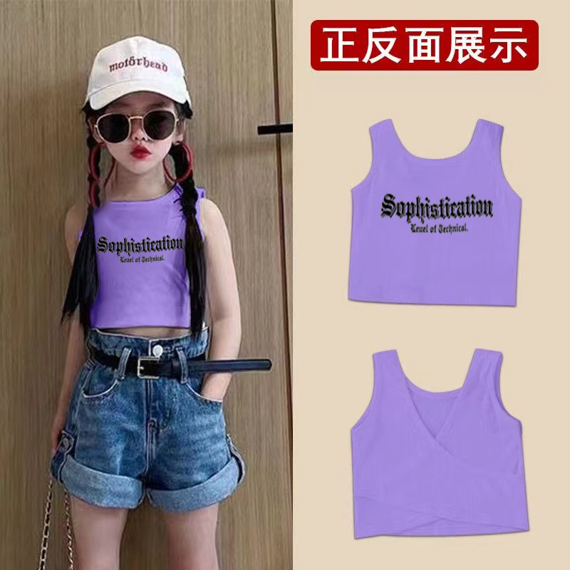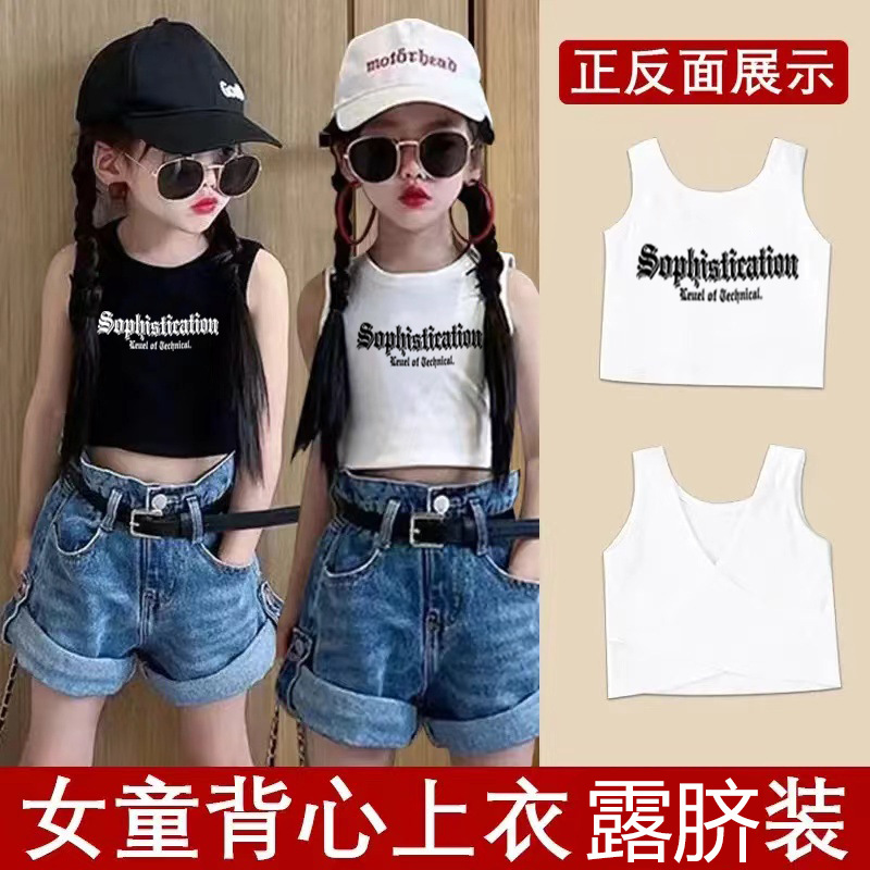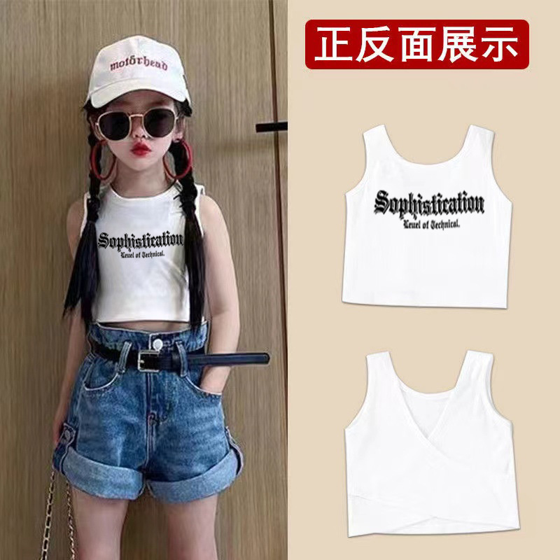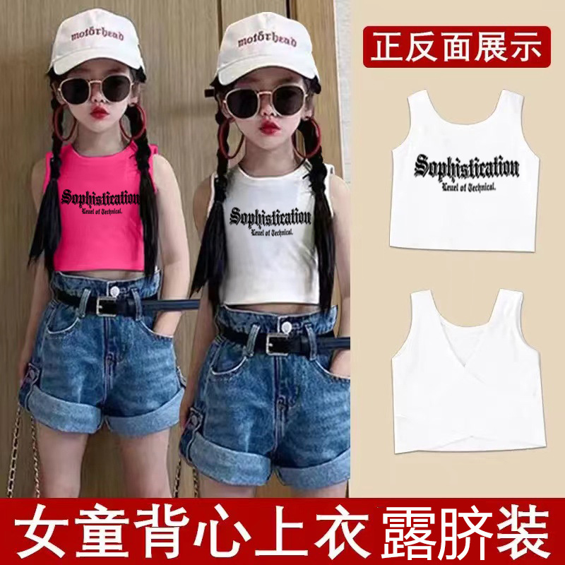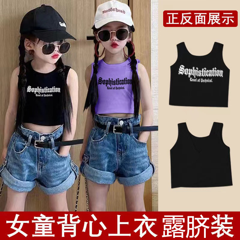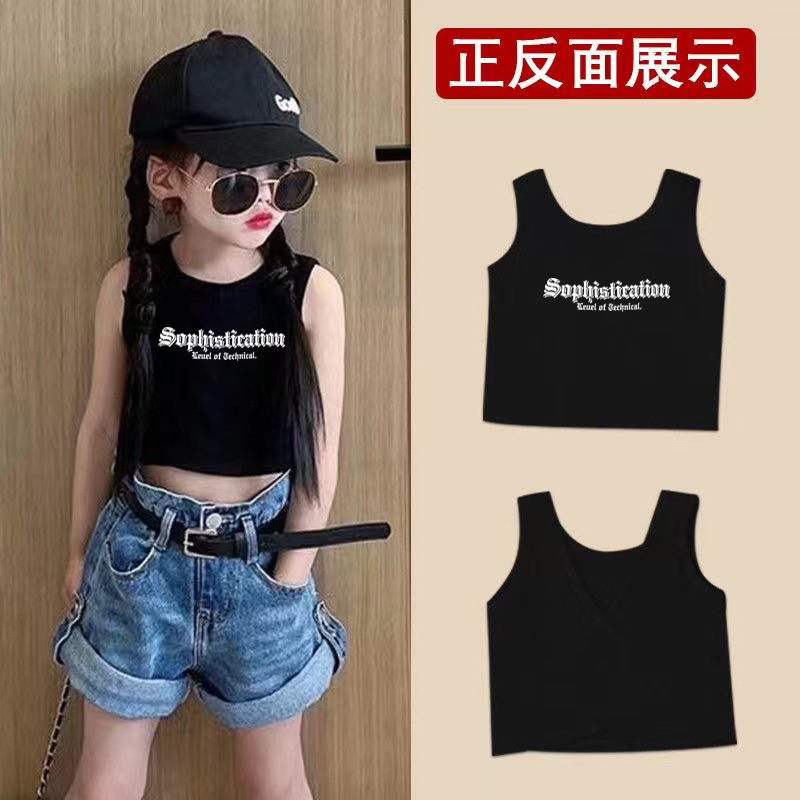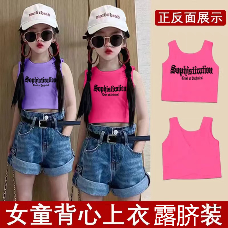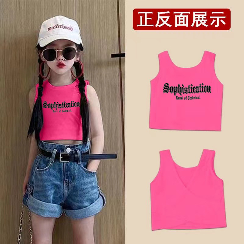 2024 여름 새로운 어린이 슬링 스포츠 댄스 조끼 큰 아동베이스 옷 패션 트렌드 소녀스토어 가기