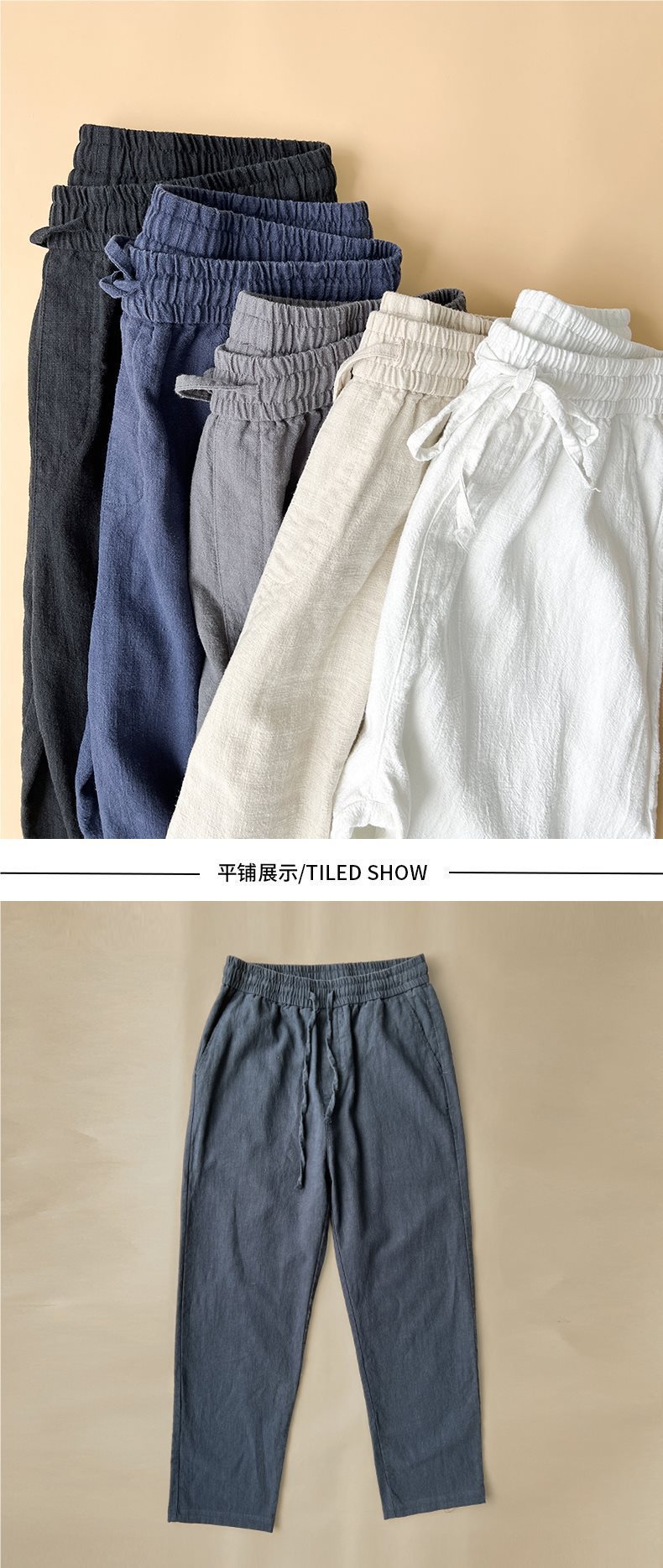 면화 및 리넨 바지 남성용 여름 얇은 느슨한 직선 다리 와이드 레그 아이스 실크 린넨 긴 바지 패션 브랜드 플러스 사이즈스토어 가기