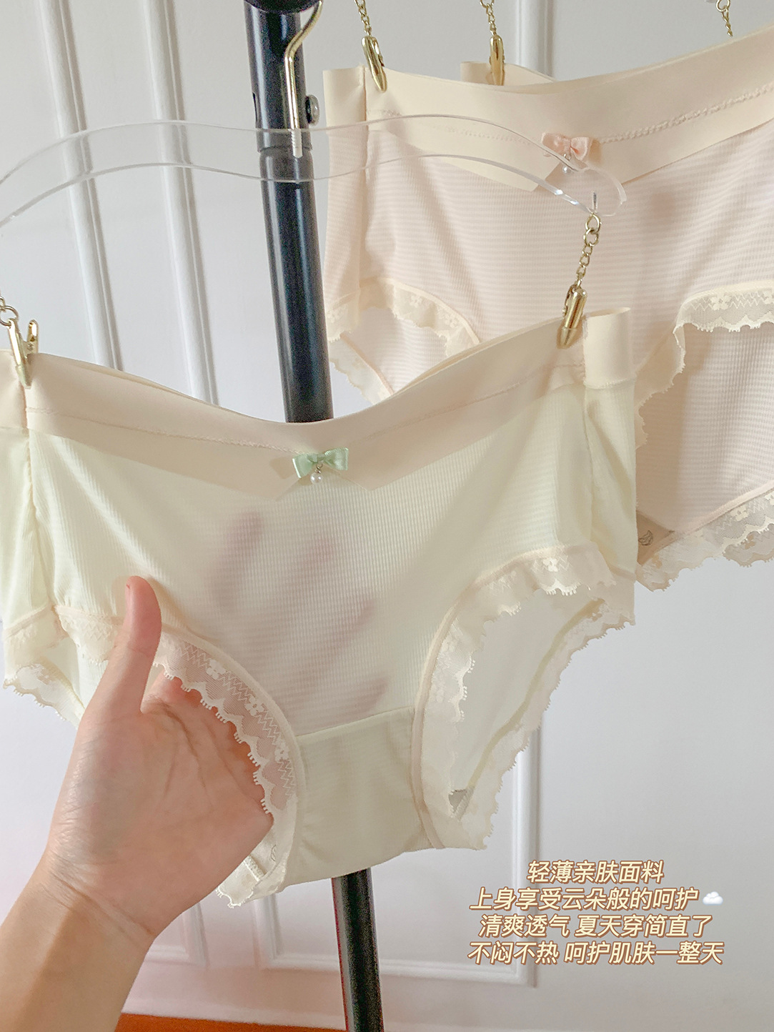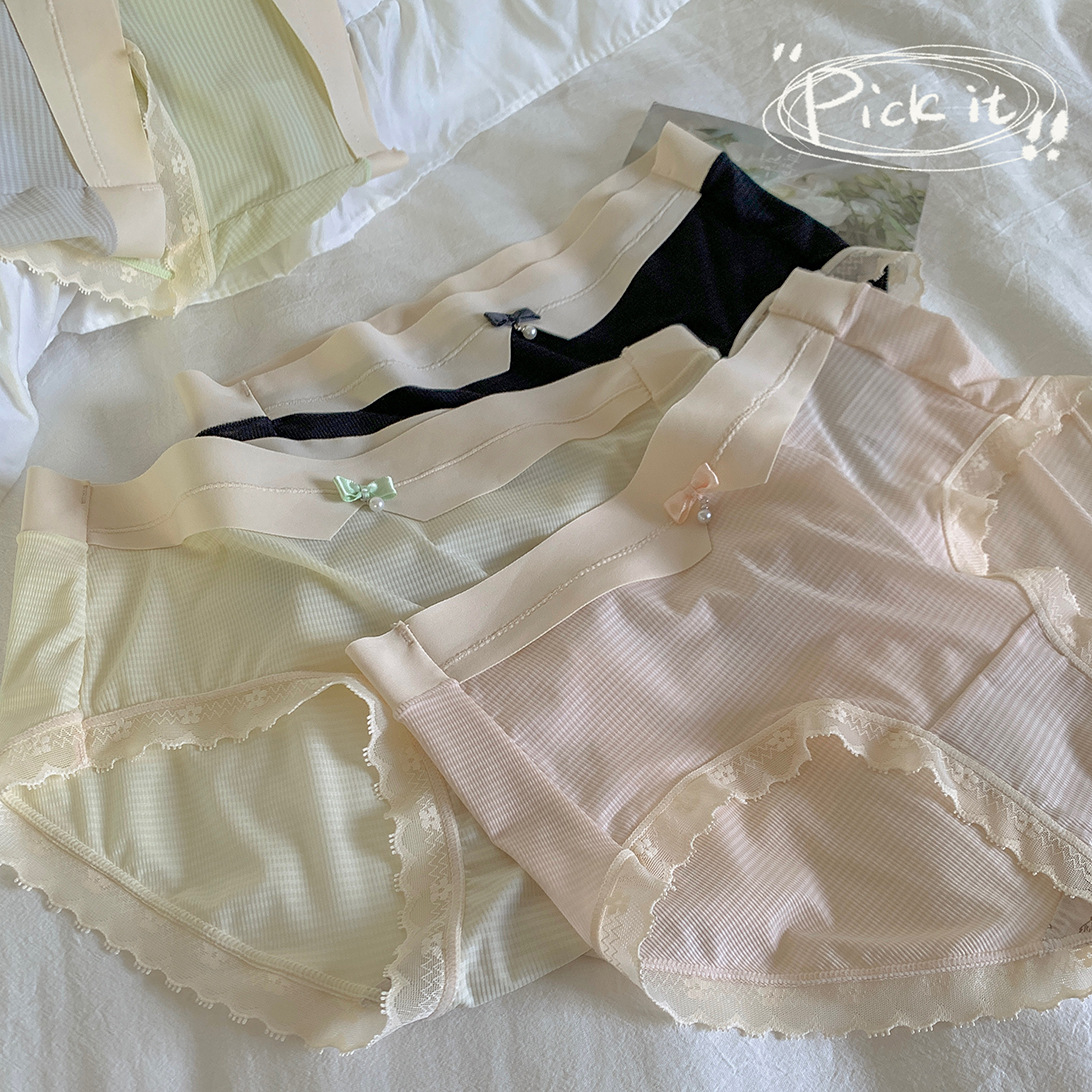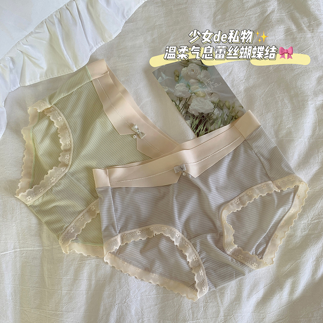일본 스타일 달콤한 레이스 벌거 벗은 팬티 여성 경량 높은 탄성 멀 베리 실크 바닥 크로트