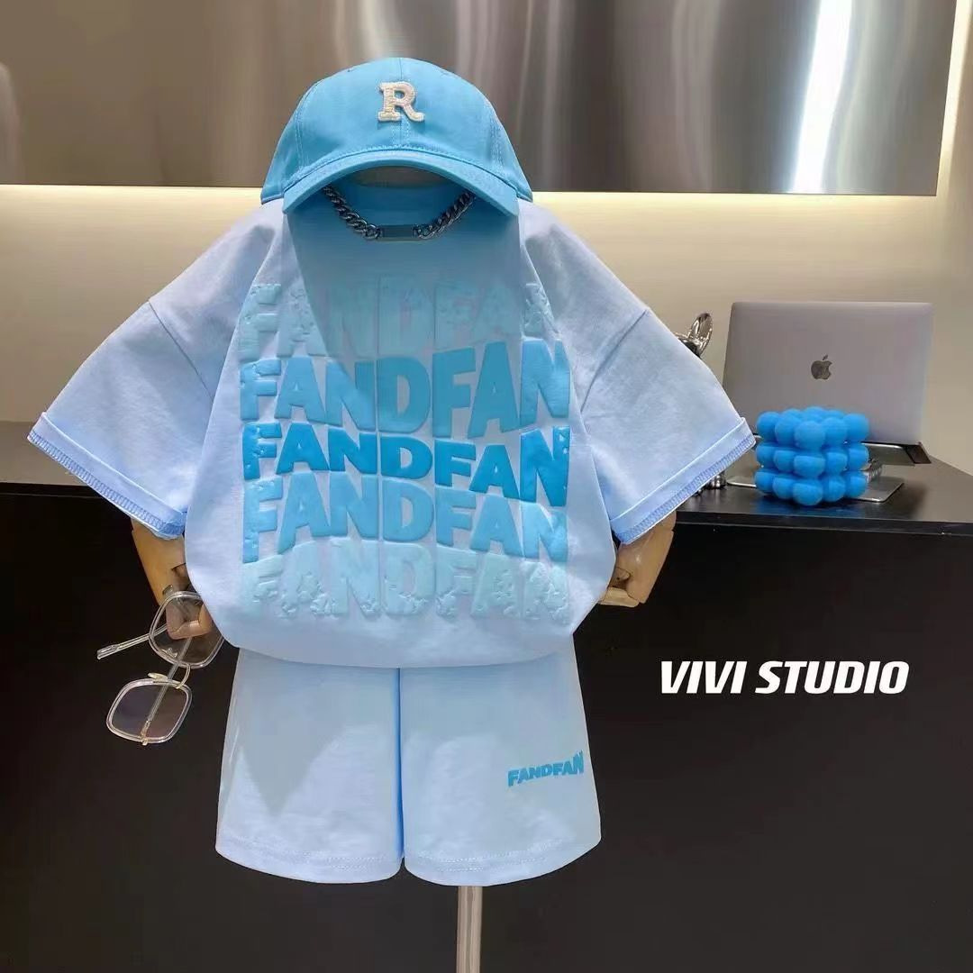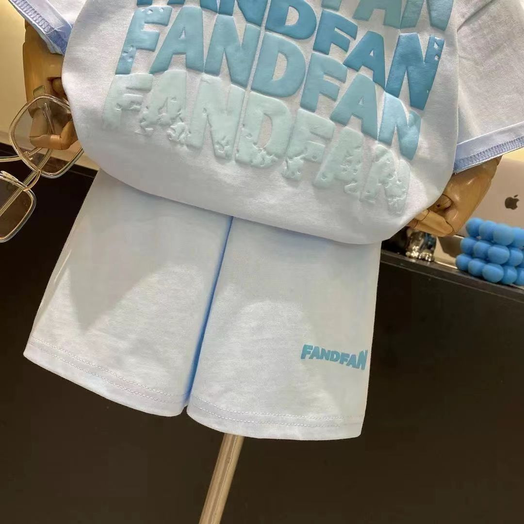 아동복 여름 반팔 투피스 세트 2025 새로운 스타일 남성과 여성의 중소형 아동복 여름 순면 티셔츠 반바지스토어 가기