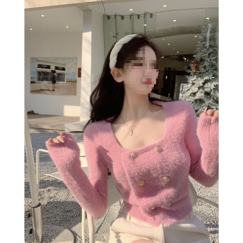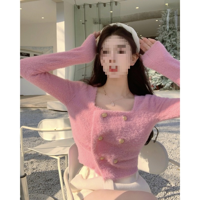 작은 여성을위한 모조 밍크 벨벳 부드러운 왁스 니트베이스 셔츠 가을과 겨울 느슨한 두꺼운 마헤어 탑 짧은 스웨터스토어 가기